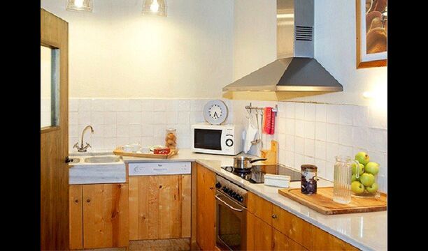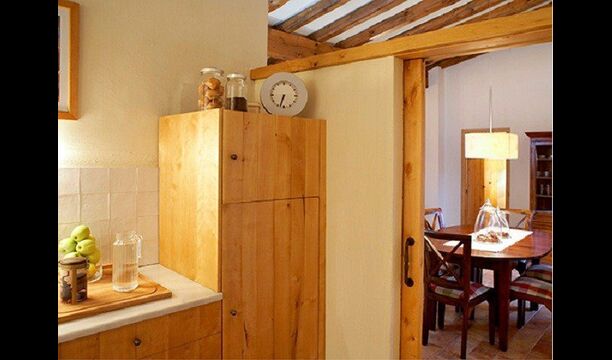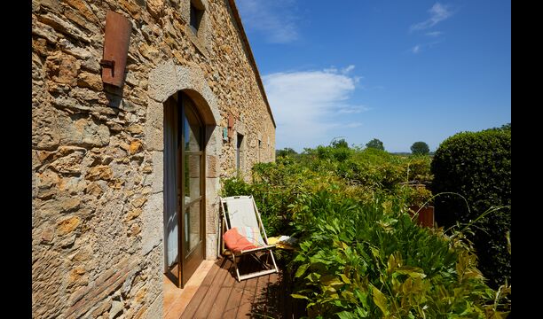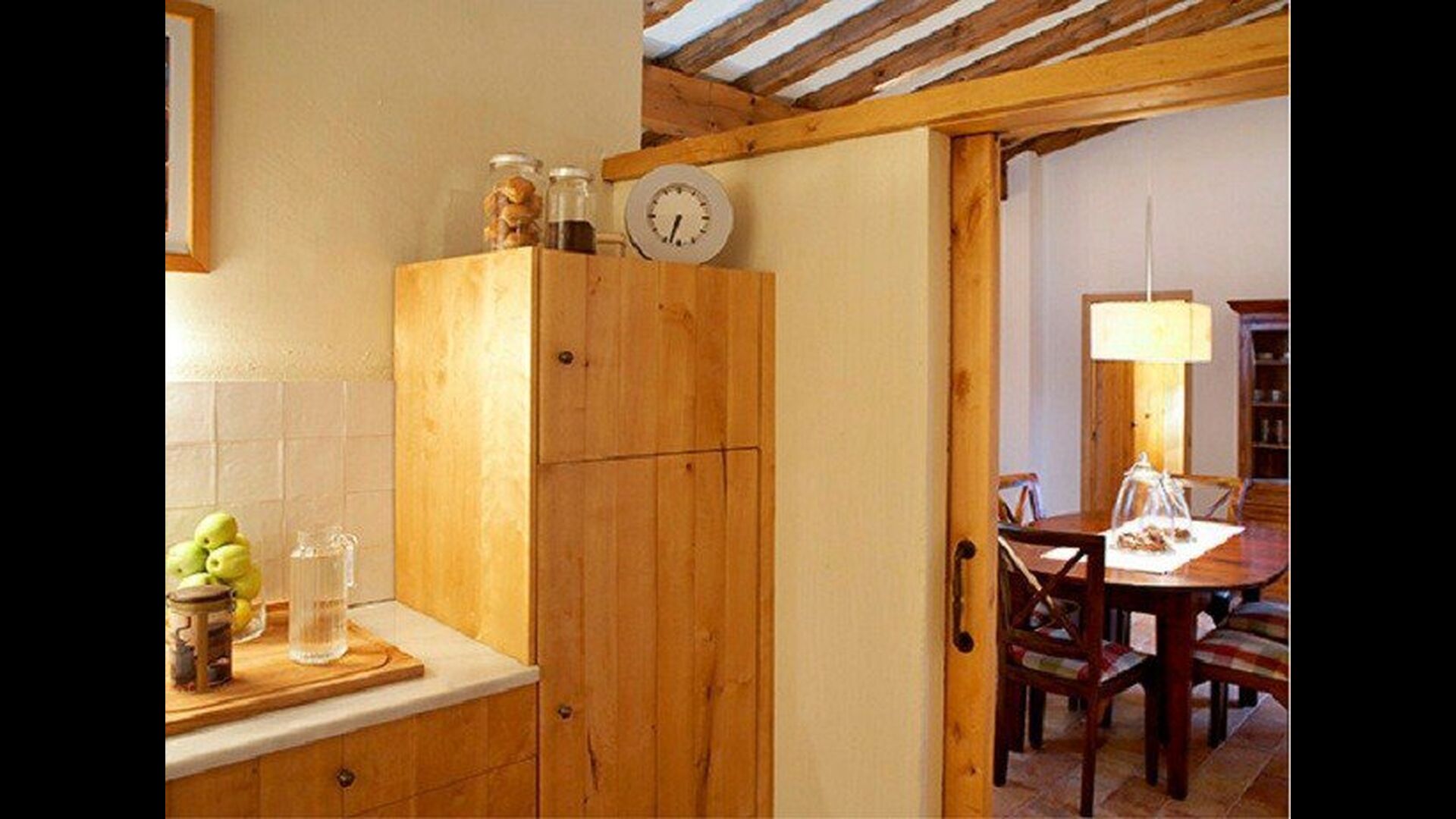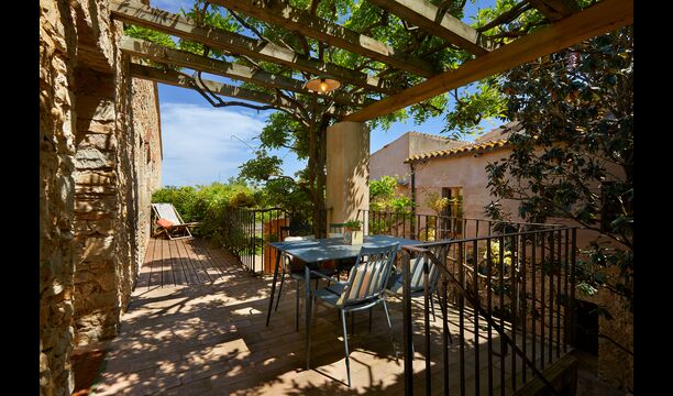 Die Wohnung ist in der oberen rechten Seite des großen Hofes mit seinem großen hölzernen Tor gelegen. Das Haus undHof ist Steinbau, das eine rustikale und authetische Atmosphäre beibringt. Diese Wohnung hat einen gemütlichen und überdeckte Patio imHof, wo das Genießen von hausgemachten Mahlzeiten in den warmen Katalanischen Abenden aufgelegt ist. Am Tag ist es auch die perfekte Stelle im kühlen Schatten sich zu entspannen.