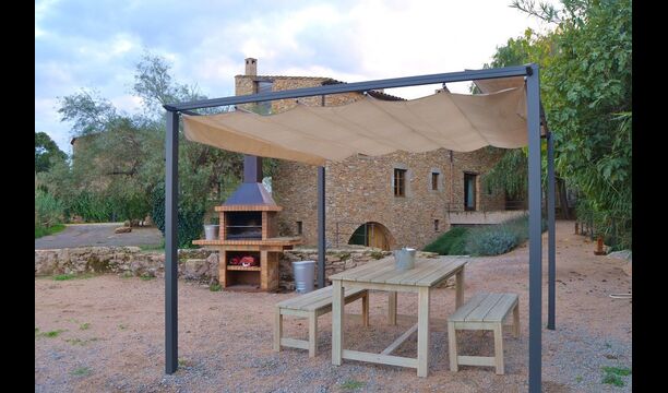 Draußen gibt es einen relativ großen Garten. Es gibt einen gemeinsamen 50m2 Pool den ein sicherer Hit bei den Kindern ist, die sicherlich viel Zeit in ihm verbringen werden. Besonders in den Sommermonaten, wenn es sehr heiß in Katalonien ist, ist es wesentlich dass man nach einer sehr kurzen Zeit gekühlt werden kann. Darüber hinaus gibt es einen großen Grill im Garten mit einem gehörigen abgedeckten Esstisch, wo Sie die frisch zubereiteten Speisen in den warmen katalanischen Abenden genießen können. Darüber hinaus gibt es mehrere Sitzgelegenheiten rund um den Garten. Für die kleinere Gruppe ist ein kleiner Spielplatz mit Spielhaus und Schaukel.