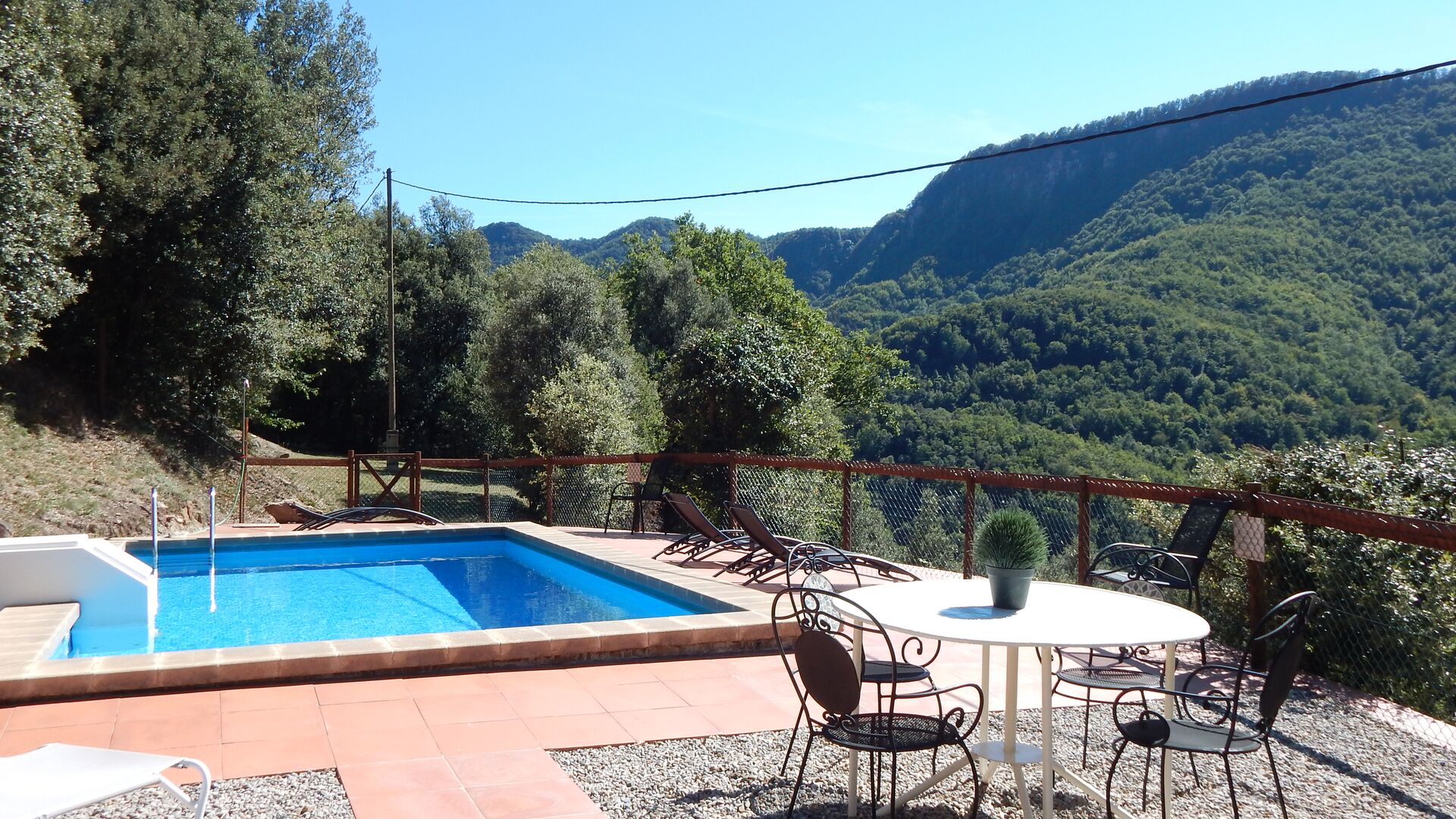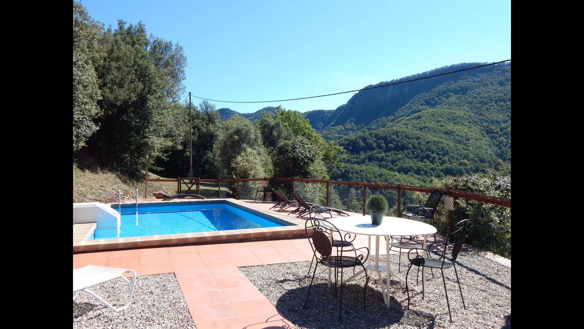 Casa del Pigue ist in absolut traumhafte Umgebung mit Bergblick nach allen Seiten gelegen. Die frische Bergluft und die warme Katalanische Sommer ist eine hervorragende Kombination.