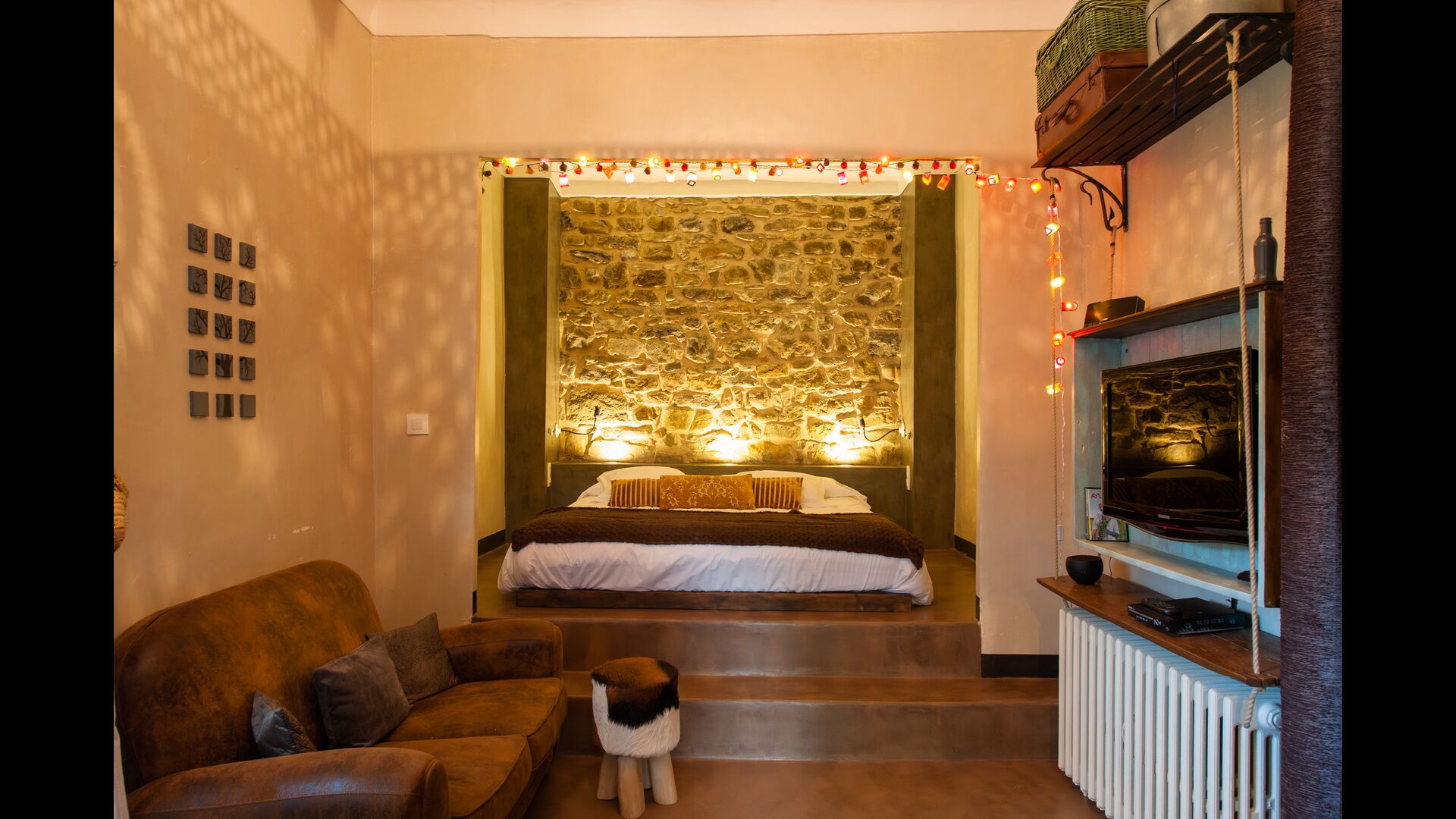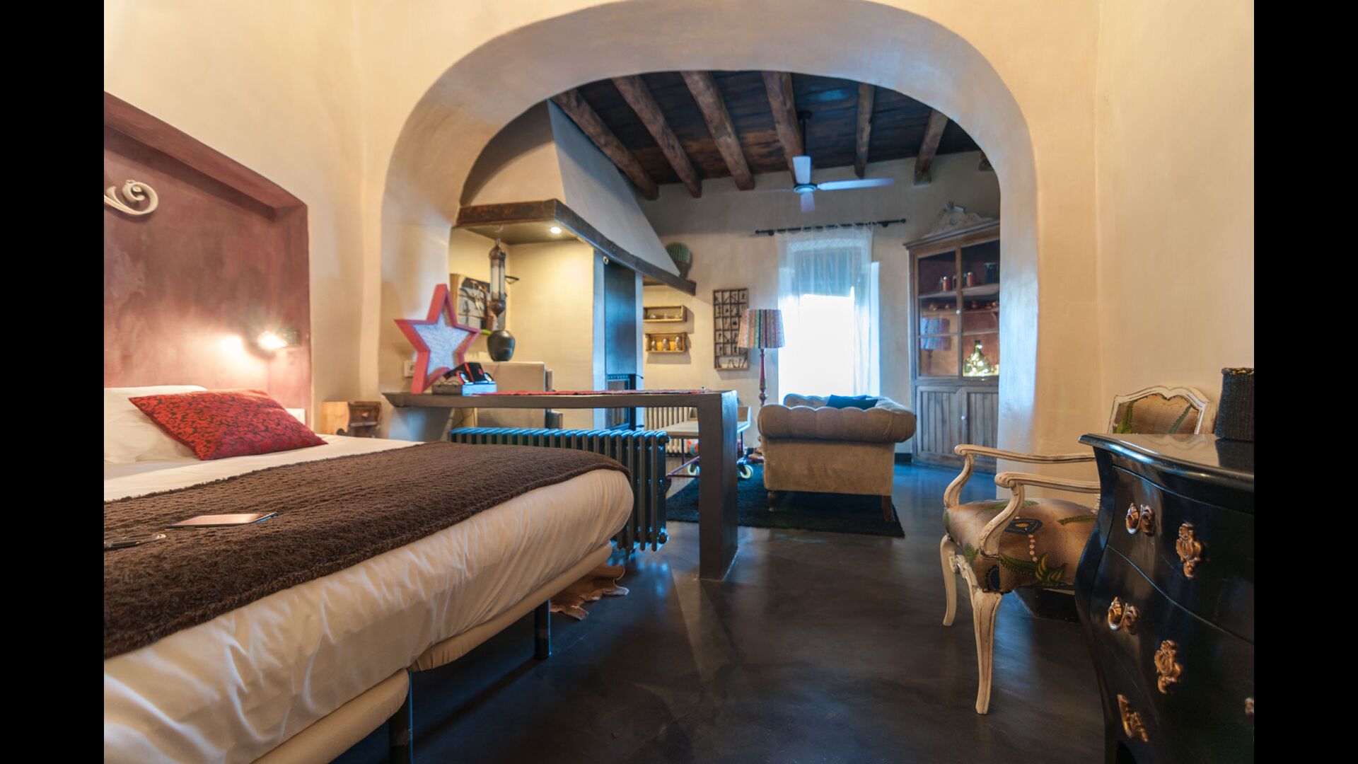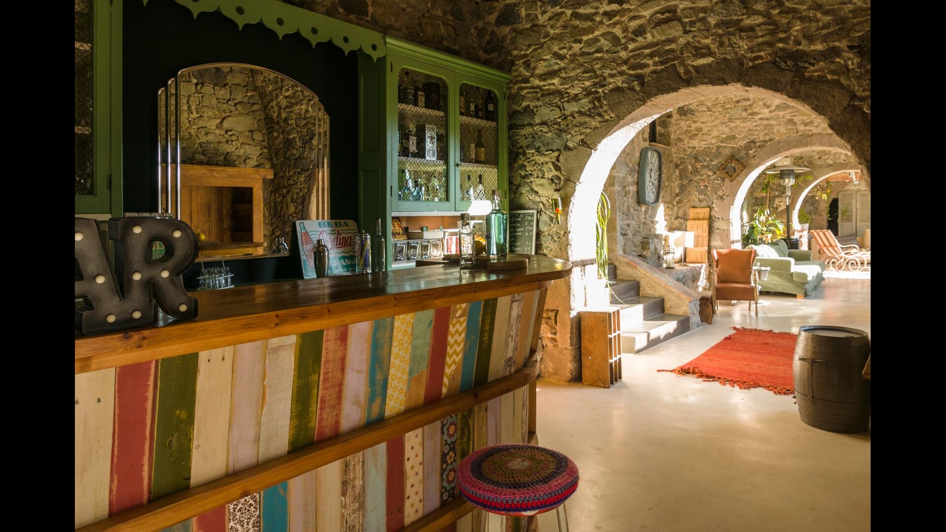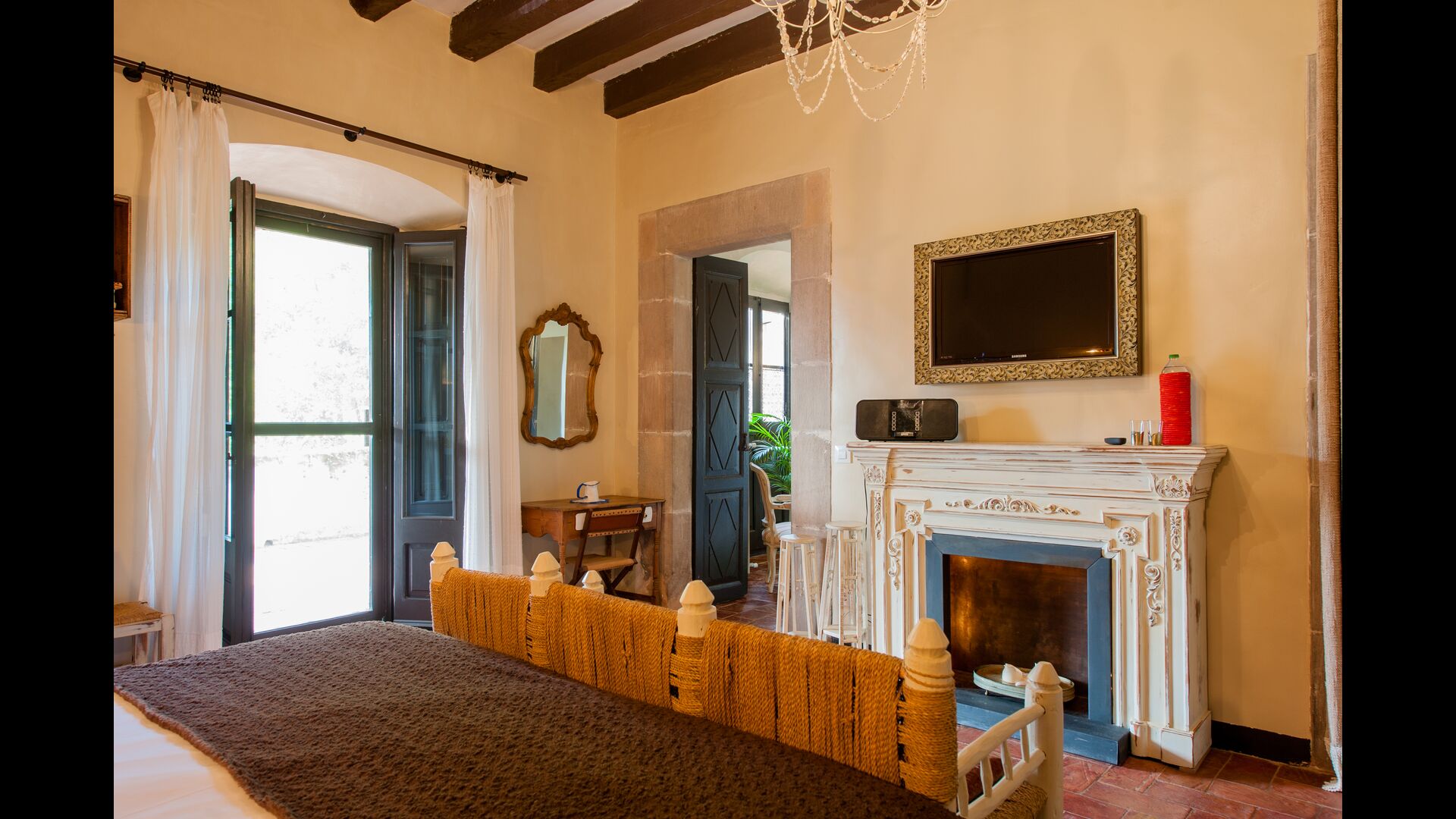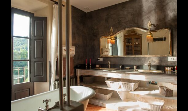 Das ursprünglich aus dem 10. Jahrhundert stammende Ferienhaus verfügt über 5 Hauptschlafzimmer und ein kleines Schlafzimmer mit 2 Etagenbetten. Die Suiten verfügen über ein eigenes Bad, eine eigene Terrasse oder einen Balkon und eine über eine eigene Terrasse. Die Betten haben ein Kingsize-Bett mit weißer Baumwollbettwäsche. Es gibt mehrere Gemeinschaftsräume rund um das Haus, darunter ein Chill-Out-Raum mit Kamin, eine Bibliothek, ein schönes Esszimmer, eine große Küche und sogar eine Bar, wenn Sie Lust auf ein paar Drinks und ein bisschen Musik haben. Das Haus verfügt über alle notwendigen Annehmlichkeiten für einen kompletten Urlaub.