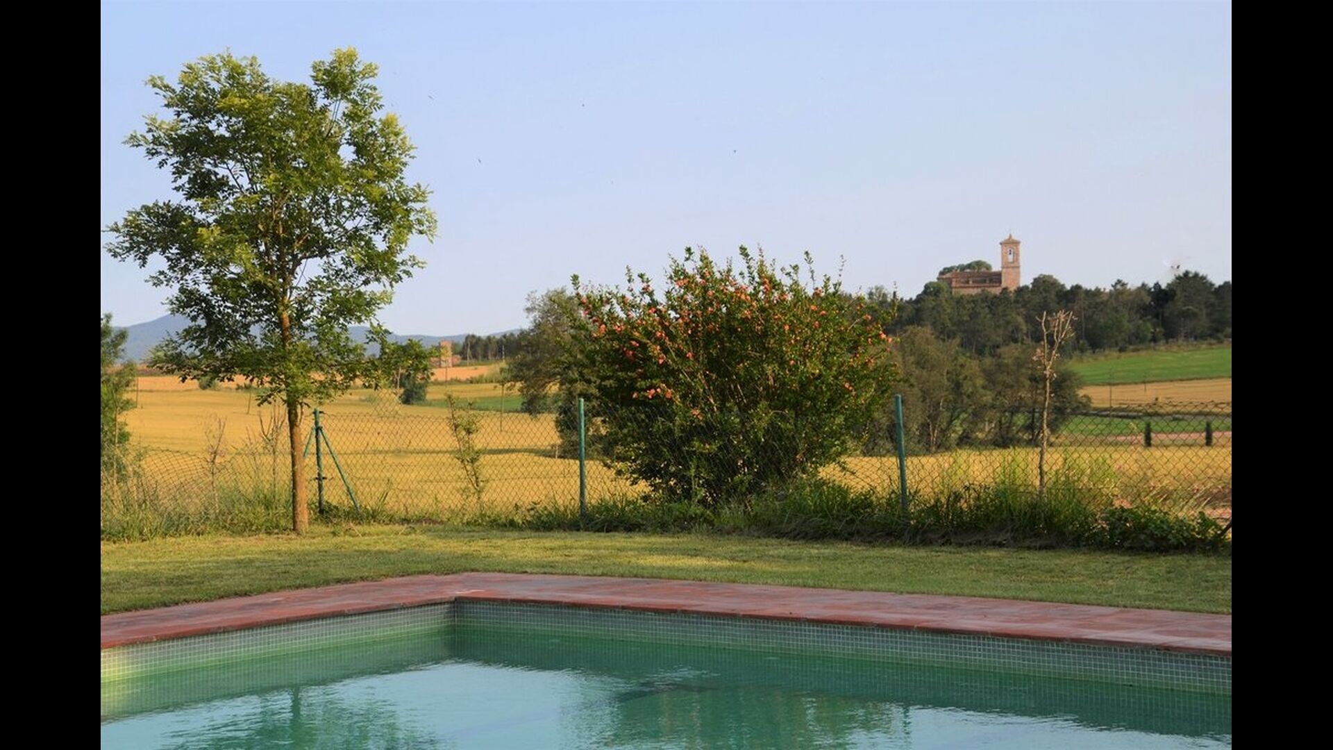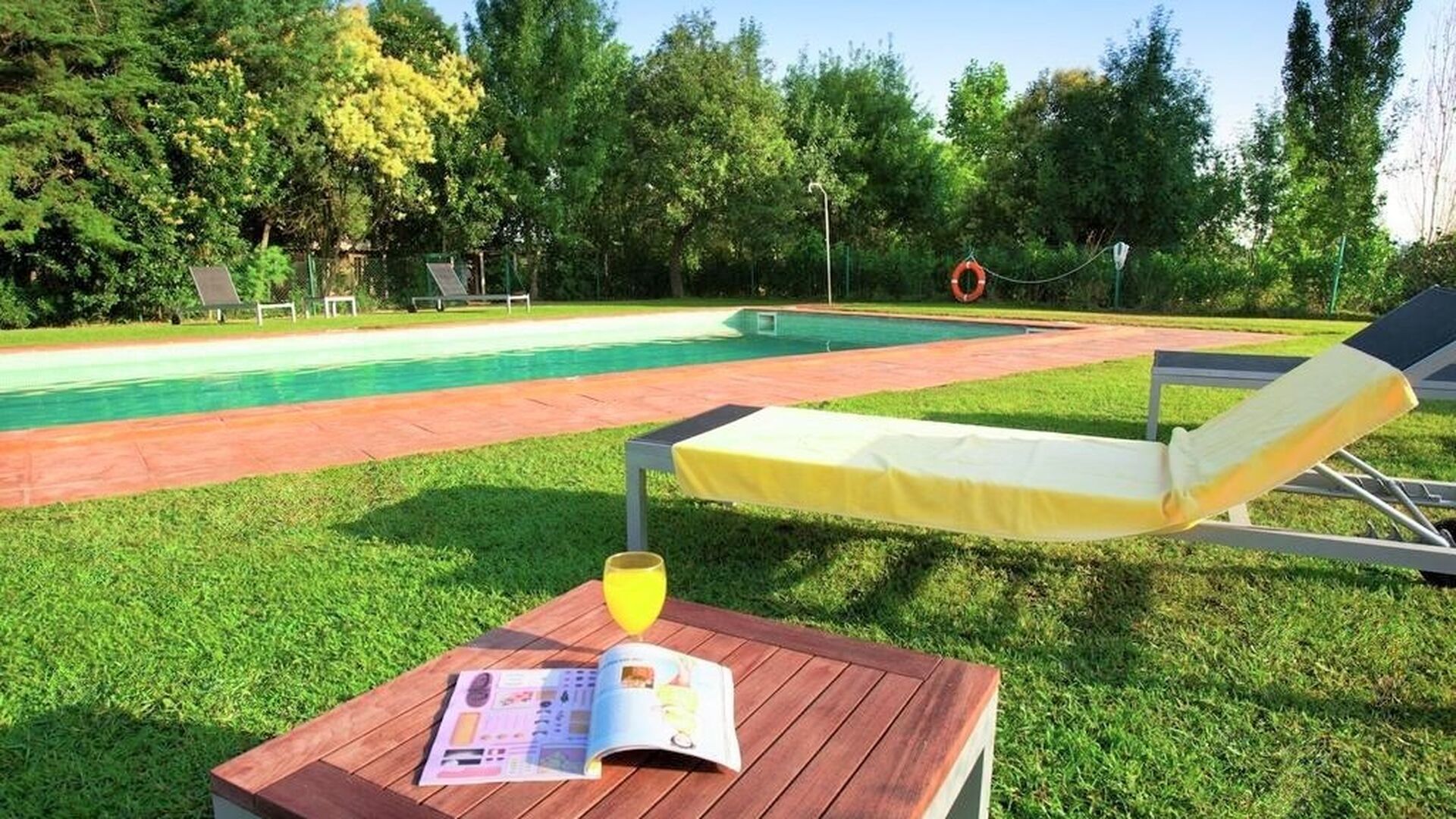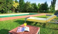As you walk through the huge garden, you will find the fenced, luxurious pool area. Besides the large 12x6 pool with varying depths that is shared with the other two apartments, there are various lounge chairs, tables, shade areas etc., so the stage is set for optimal relaxation in the lovely Catalan sun with the option of taking a dip in the refreshing pool at any given time. The garden also offers several shaded areas with seating areas, where you are always able to find a place in the beautiful, natural surroundings to read a book or whatever. There is furthermore a playground in the garden for the smaller ones in the holiday group, so they also can have fun and entertain themselves.