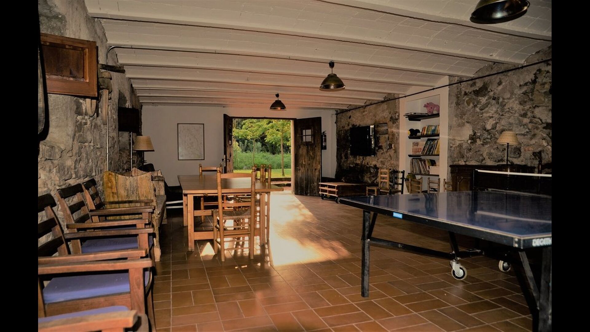 Each of the apartments also have their own private terrace, where you for instance can enjoy the evening meals in the light of the enchanting Catalan sunset. Other mentionable facilities in the holiday home could be the large multipurpose room, which has Table tennis, toys, flat screen TV, other games, etc., so there is always something to do in Can Garilla.