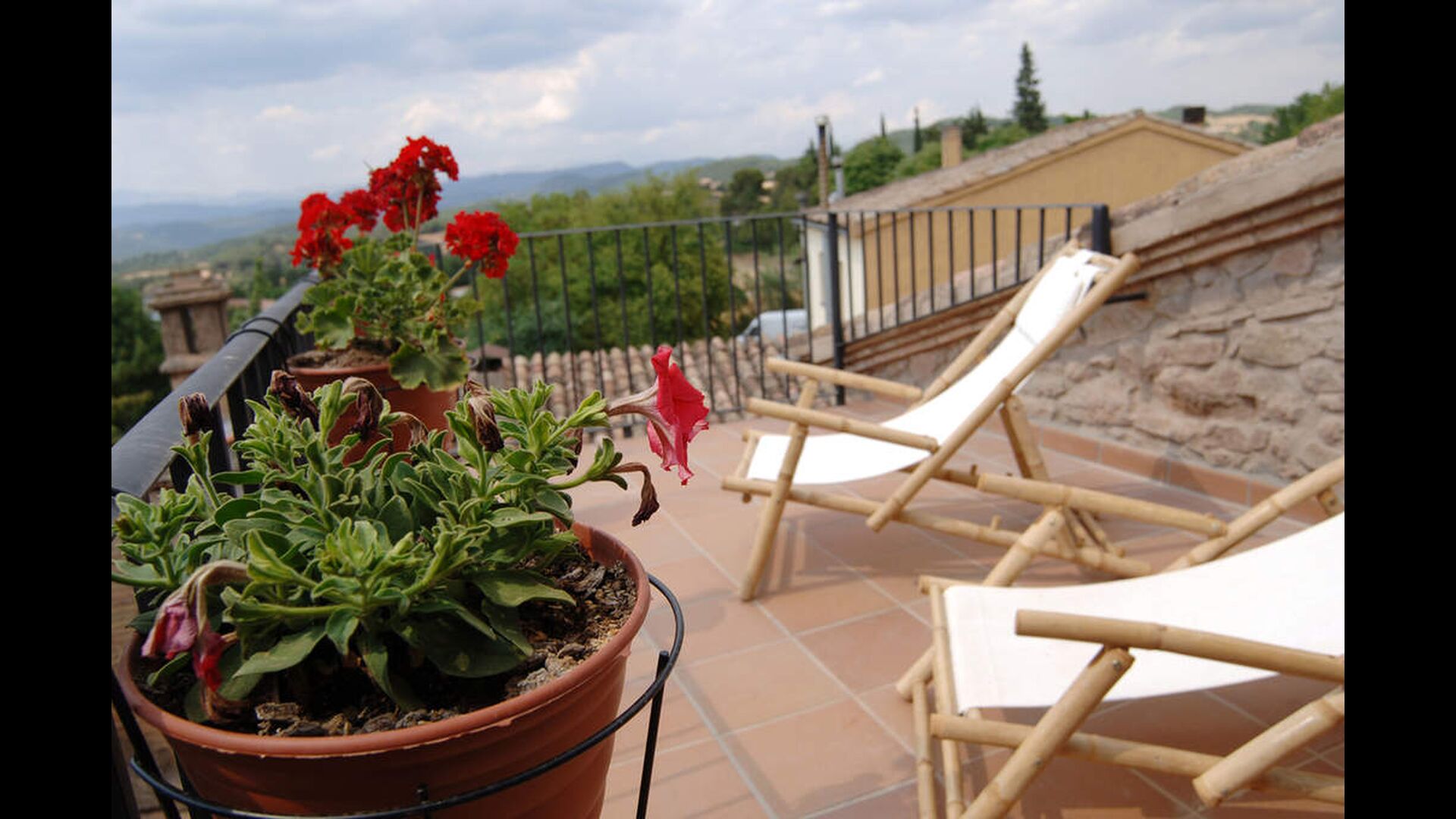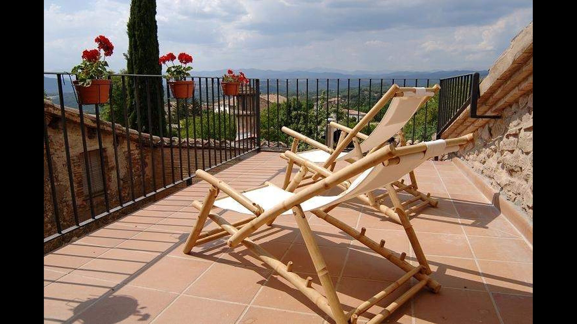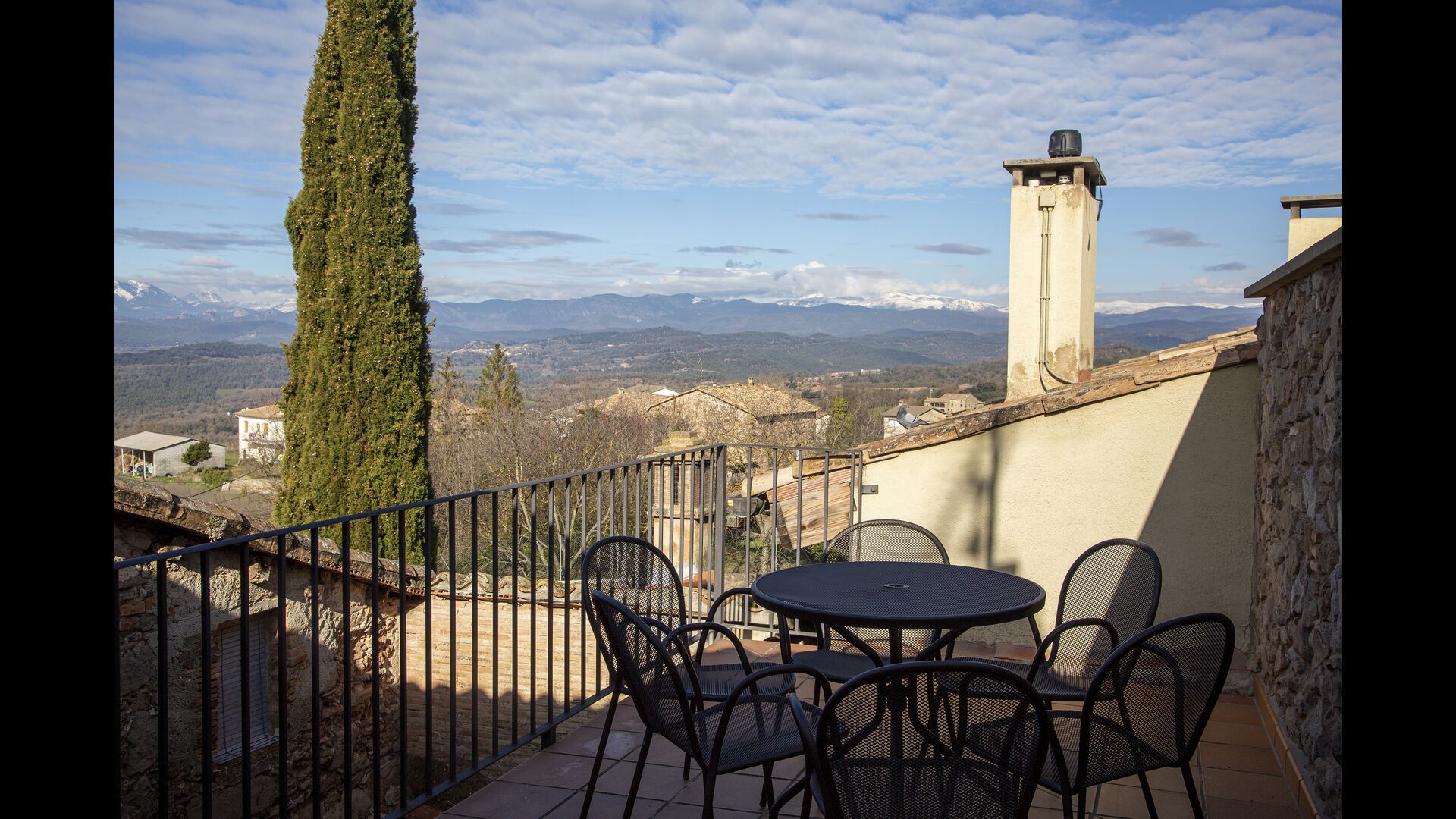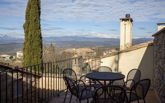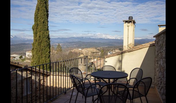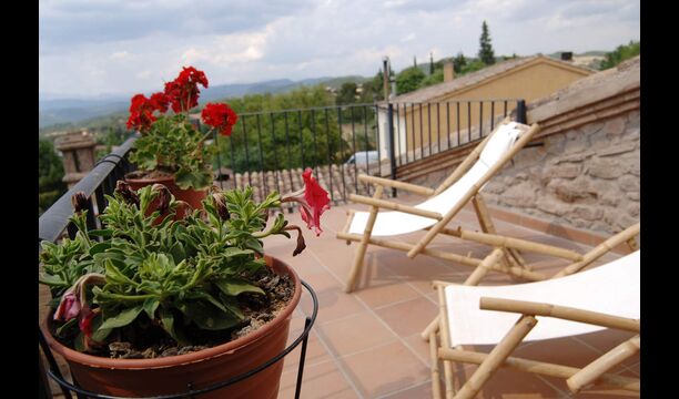 Im 2. Stock befinden sich zwei Doppelzimmer und ein Zimmer für vier Personen (Einzelbetten). Von einem Doppelzimmer aus hat man Zugang zu einer bezaubernden Dachterrasse mit herrlichem Blick auf die katalanische Landschaft . Darüber hinaus gibt es ein zweites Badezimmer mit Dusche.