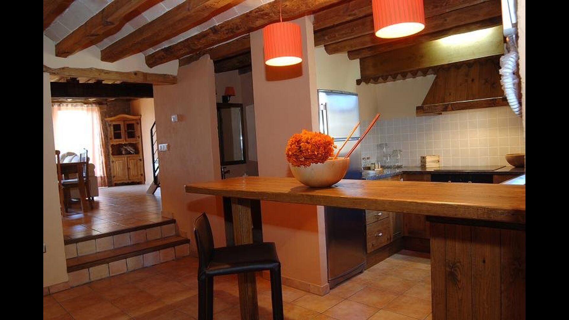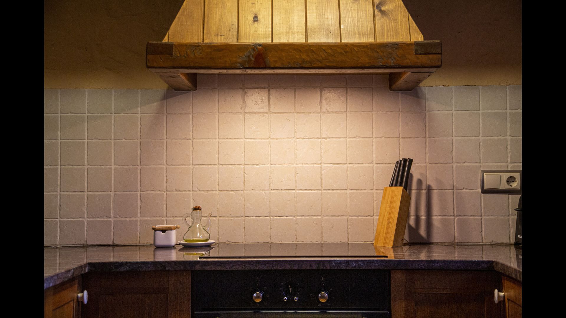 Im 1. Stock befindet sich eine offene Küche mit allen modernen Einrichtungen, darunter eine Waschmaschine, ein Geschirrspüler, eine Mikrowelle und eine Kaffeemaschine. Außerdem gibt es ein Badezimmer und ein großes, geschmackvolles Wohnzimmer. Vom Wohnzimmer aus gibt es einen Balkon mit Blick auf das Dorfzentrum.