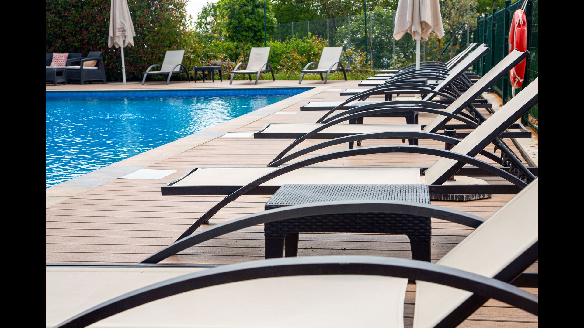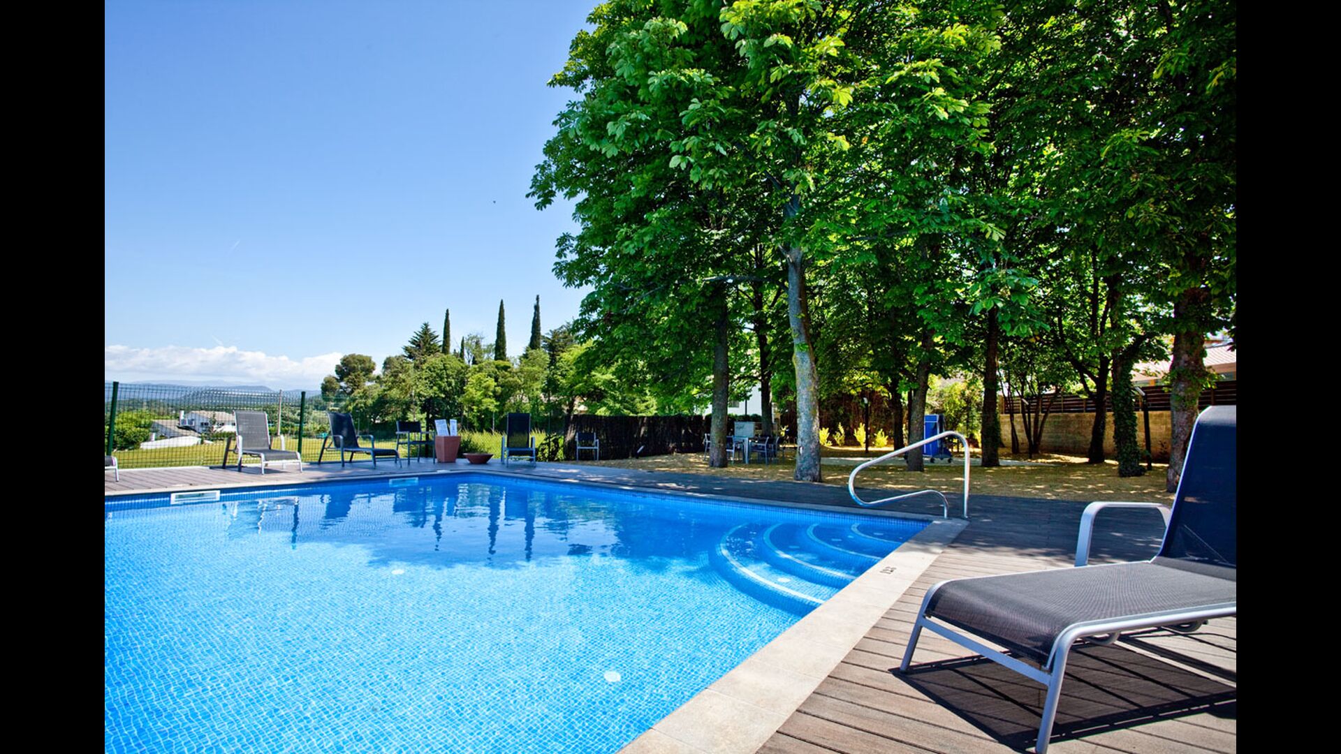 • Schöner Garten mit Grill, Café; Tische, Terrassen, Toiletten und der Pool