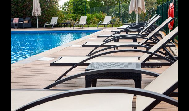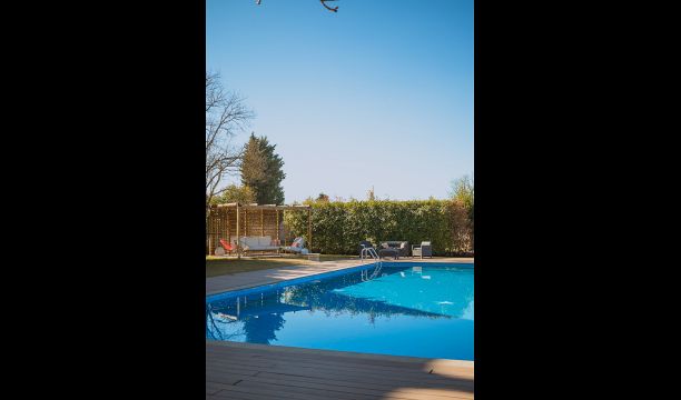 Darüber hinaus wurde die Rückseite des Hauses in den fantastischen Swimmingpoolbereich mit dem großen Swimmingpool (17 x 5 Meter), Café Tische, Toiletten und Umkleidekabinen sowie schattige Ecken und sonnige Plätze. Die Aussicht ist atemberaubend, direkt auf die Pyrenäen.
