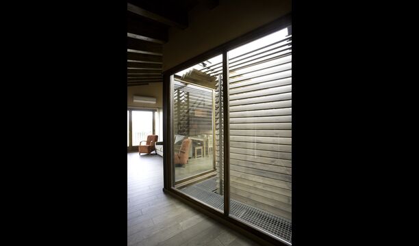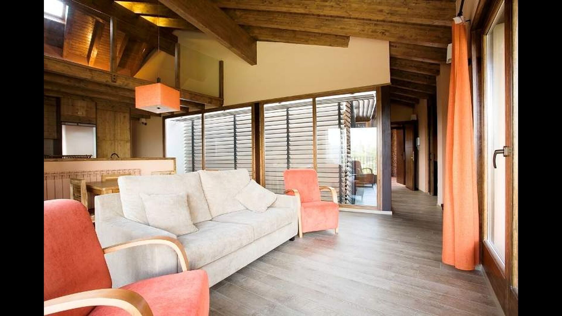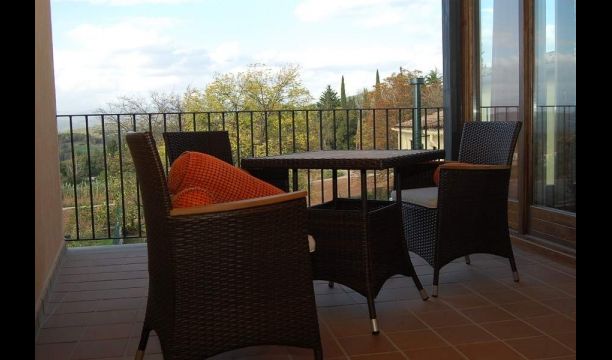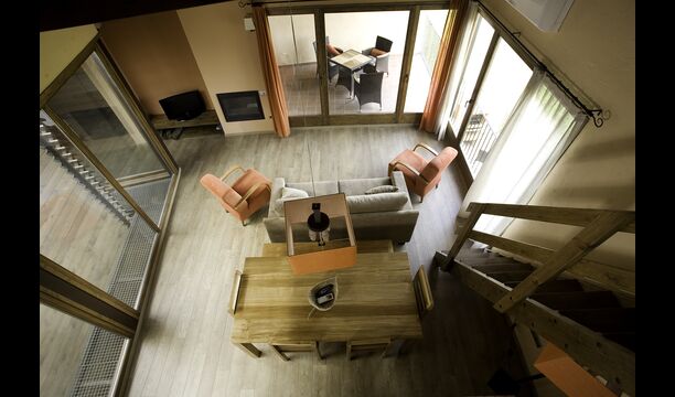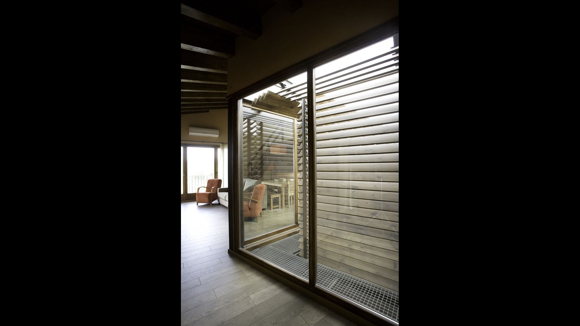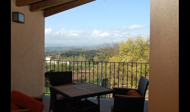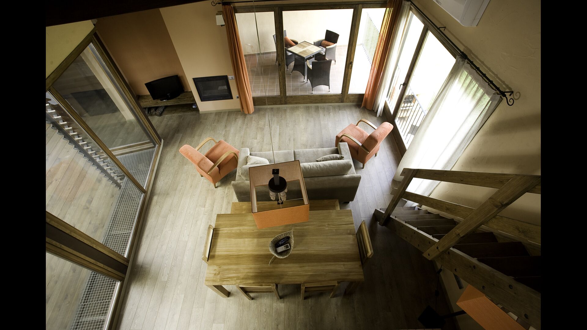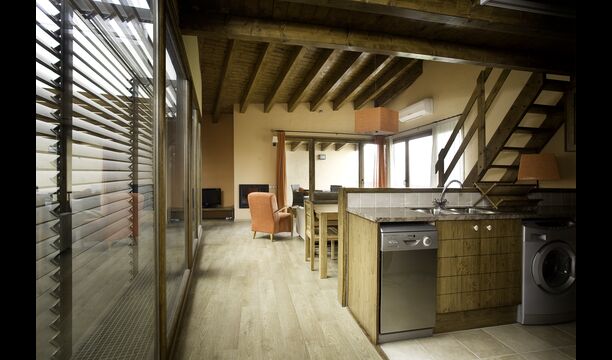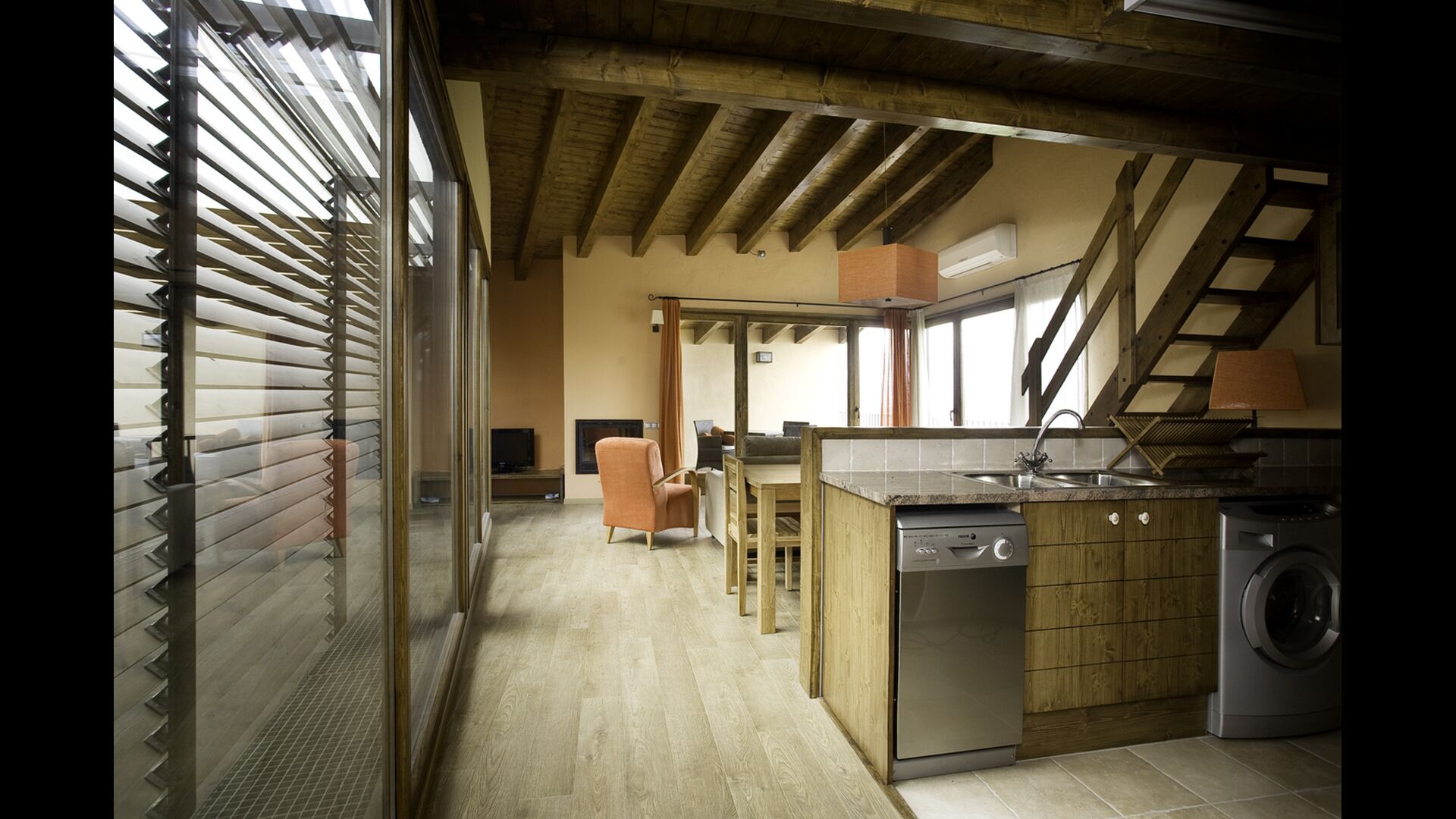 Els Munts ist eines der Apartments im Hauptgebäude. Dieses Apartment im zweiten Stock verfügt über eine eigene Terrasse mit Grill und dem schönsten Bergblick.