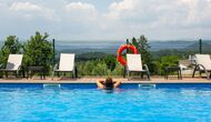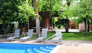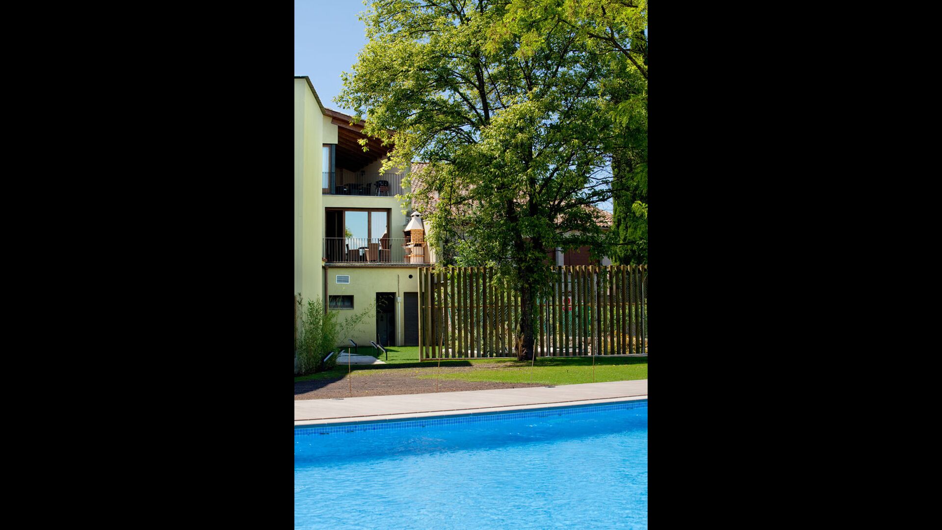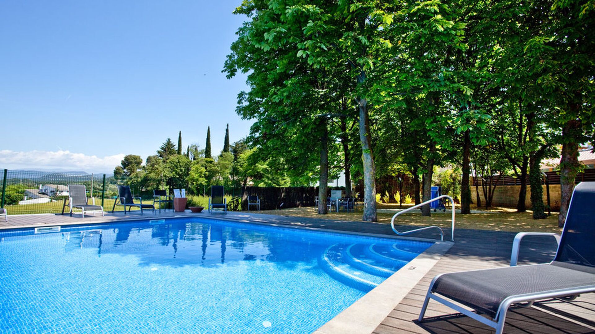Darüber hinaus wurde die Rückseite des Hauses in den fantastischen Swimmingpoolbereich mit dem großen Swimmingpool (17 x 5 Meter), Café Tische, Toiletten und Umkleidekabinen sowie schattige Ecken und sonnige Plätze. Die Aussicht ist atemberaubend, direkt auf die Pyrenäen.