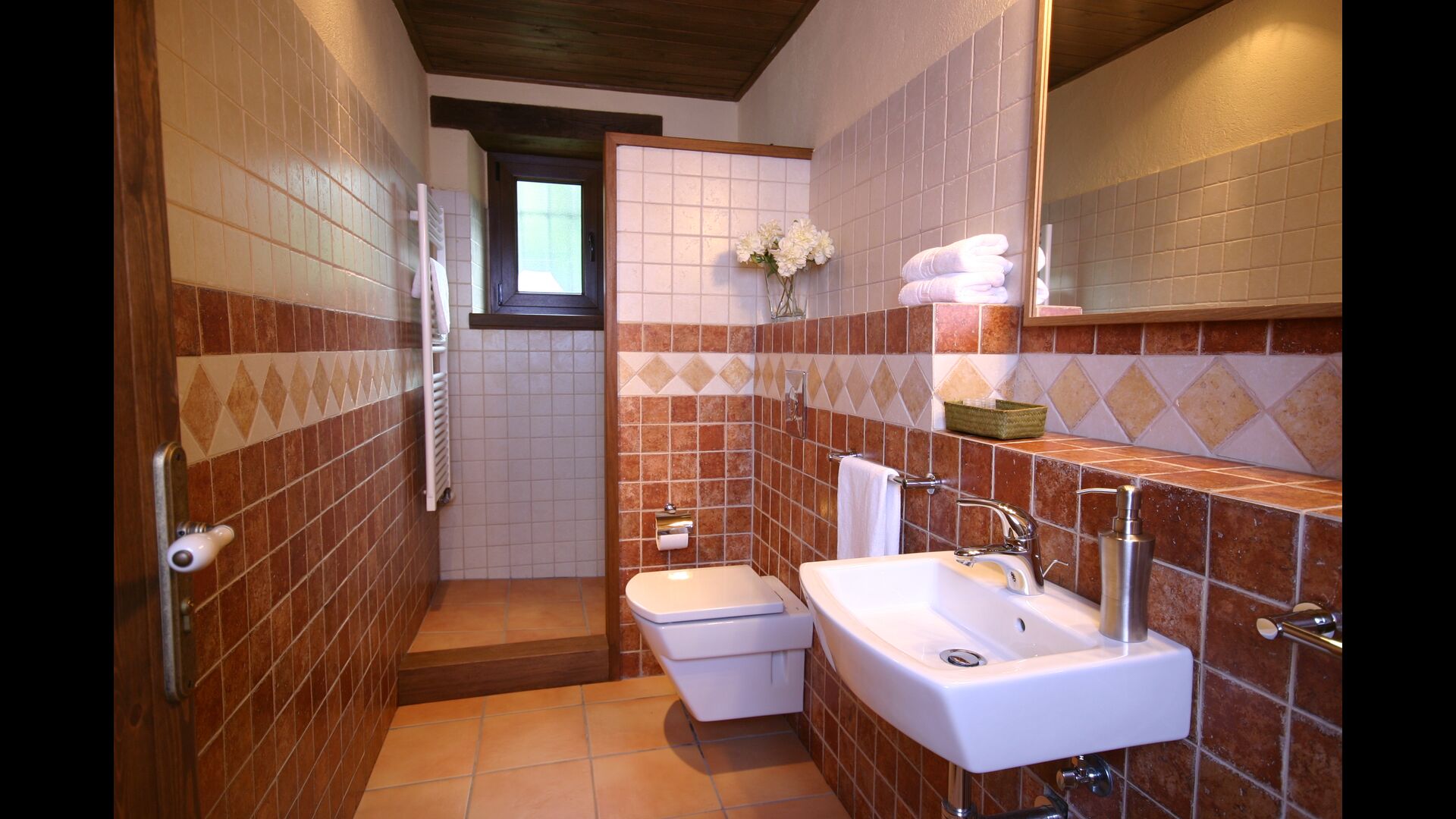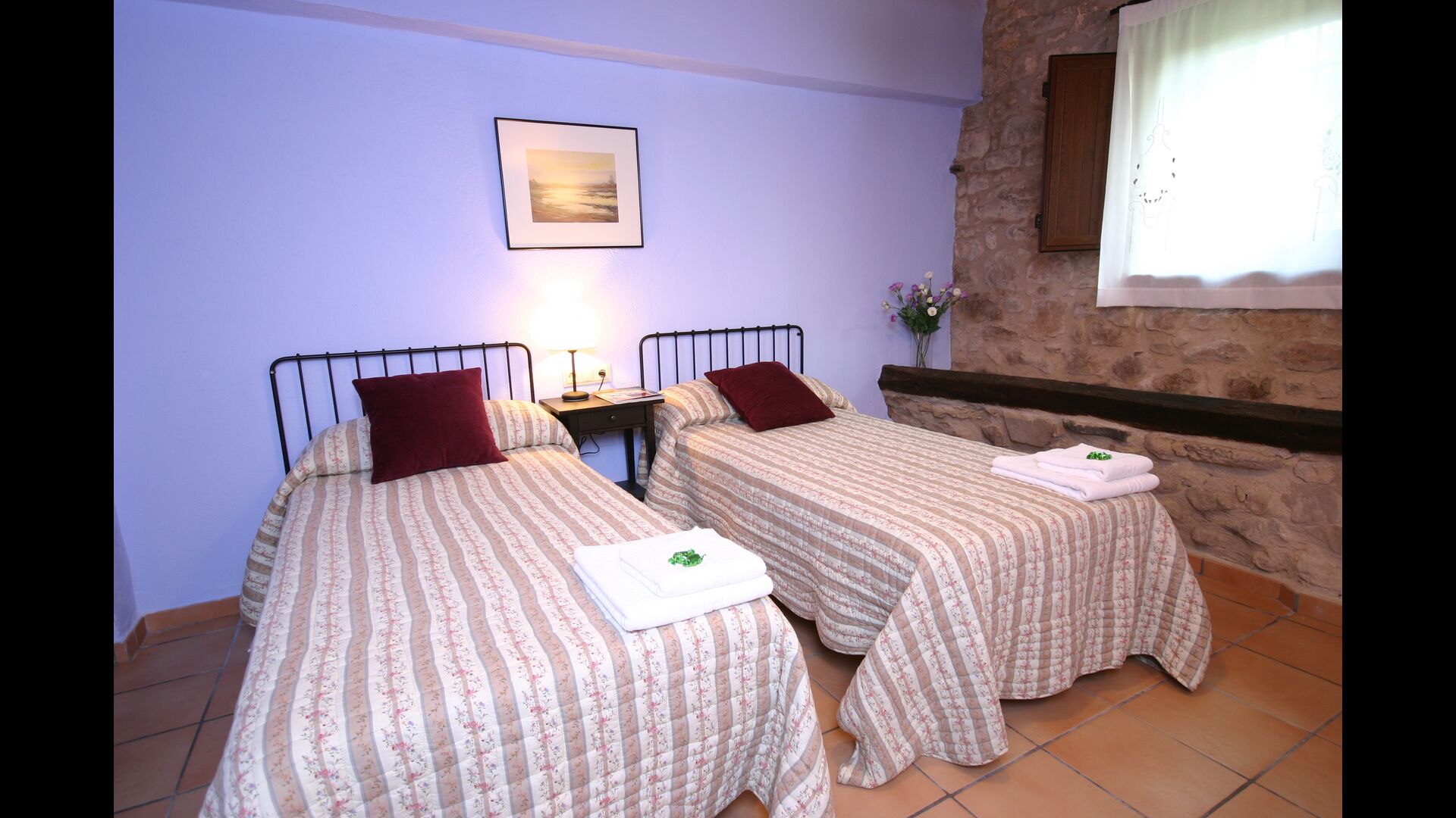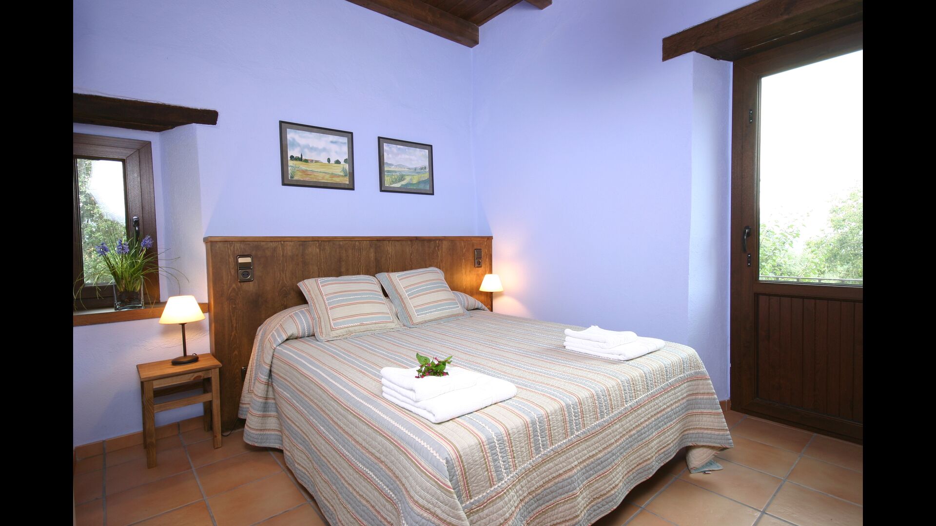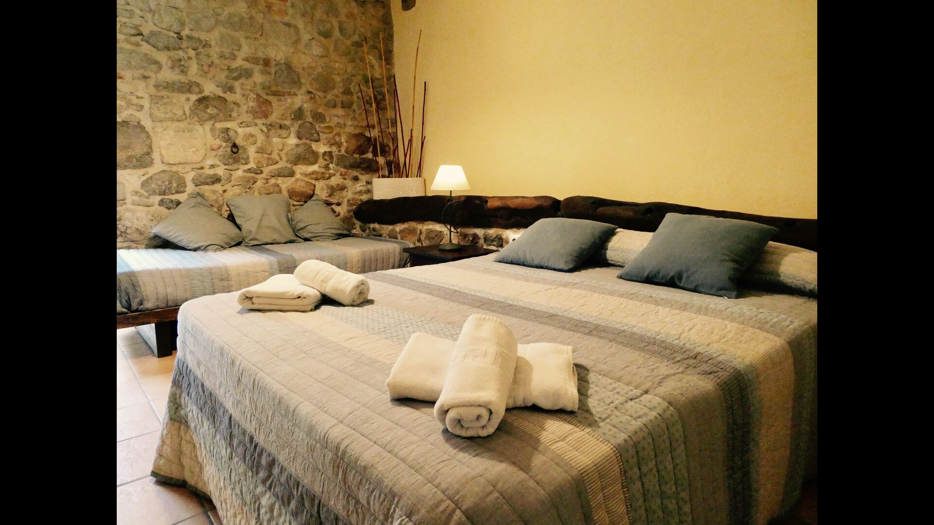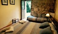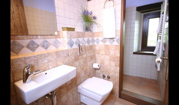 In Can Bosquita - Gran gibt es insgesamt 6 Schlafzimmer, davon 2 Dreibettzimmer und 4 Doppelzimmer, sowie 4 Badezimmer. Das Haus hat eine Eingangsebene mit dem Parkplatz. Da das Haus am Hang liegt, hat das Haus mehrere Ebenen, was sehr reizvoll ist. Ein paar Stufen höher liegen die ersten drei Schlafzimmer, die alle sehr geräumig sind. Sie sind mit Einzelbetten ausgestattet, die auf Wunsch auch als Doppelbetten aufgestellt werden können. Eines der Zimmer hat einen eigenen Ausgang zum Garten. Diese drei Schlafzimmer teilen sich zwei Badezimmer, die alle komplett ausgestattet und auch mit Duschen ausgestattet sind. Weiter oben befinden sich 3 zusätzliche Schlafzimmer, von denen eines kleiner als die anderen im "Loft-Stil" ist.