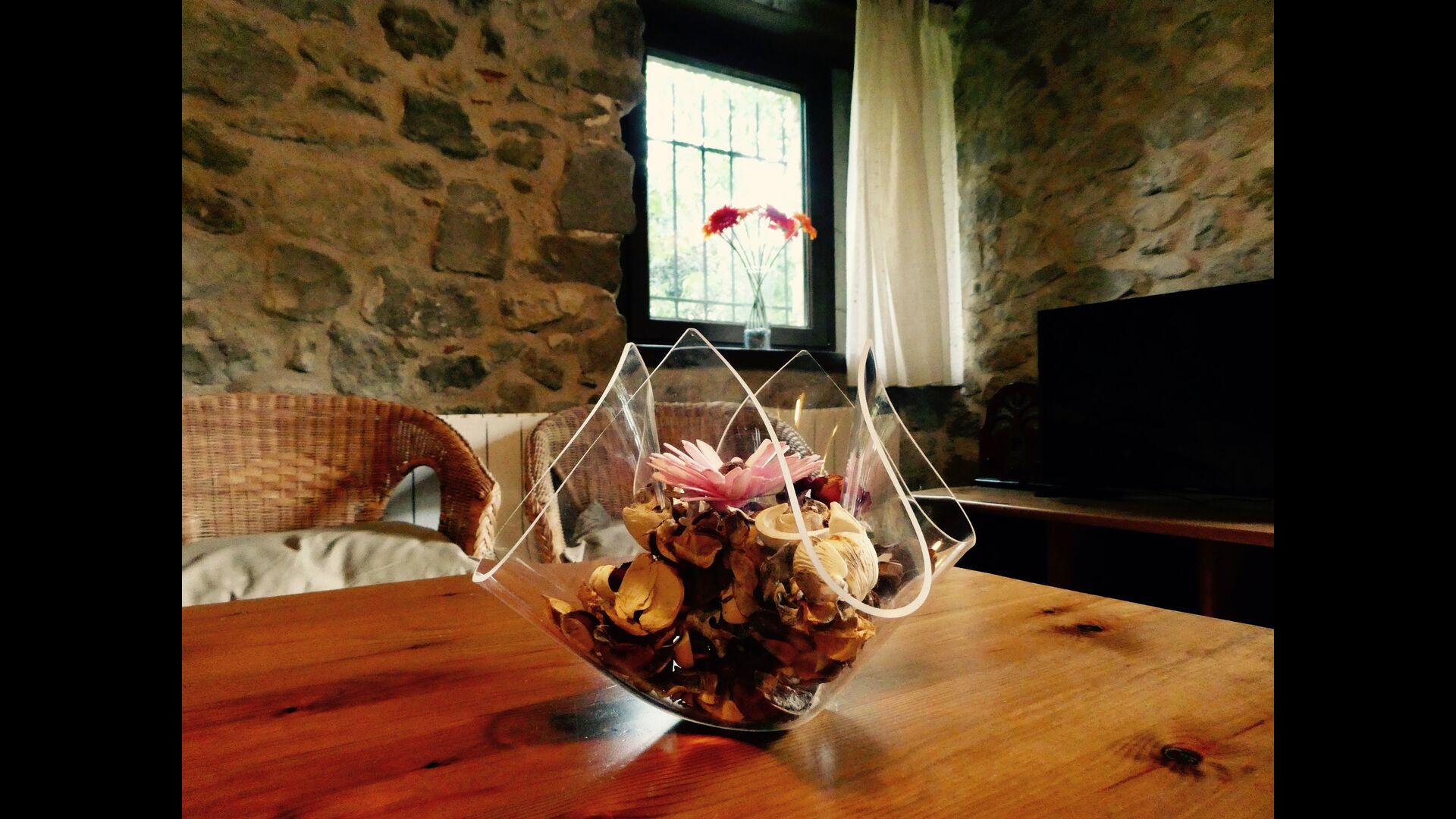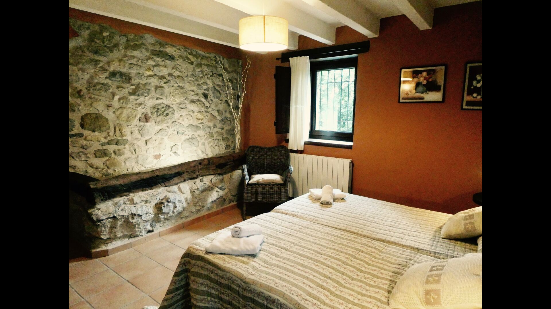 Can Bosquita - Gran ist das größte der beiden Gebäude, aus denen Can Bosquita besteht. Die beiden Gebäude befinden sich auf dem Hanggrundstück, das sich über mehr als 4.000 m2 erstreckt. Zuerst das Hauptgebäude Can Bosquita - Gran und gleich gegenüber, durch die Terrasse getrennt, liegt El Mirador. Von beiden Häusern haben Sie einen fantastischen Blick auf das darunter liegende Tal, wo sich der Fluss Brugent seinen Weg nach Girona bahnt und über dem Haus das wunderschöne Guilleries-Massiv erhebt.