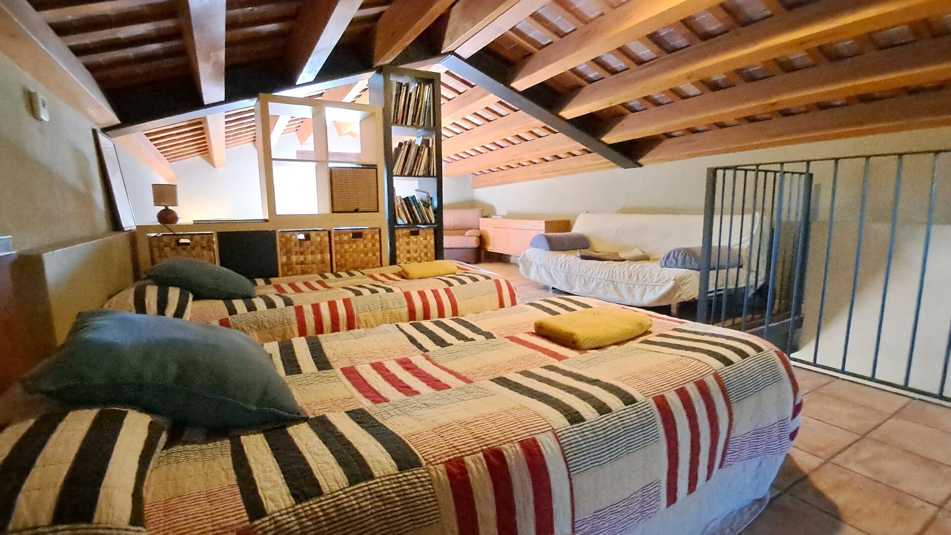Das Haus verfügt über 6 moderne Schlafzimmer. Ein Schlafzimmer befindet sich im Erdgeschoss mit angrenzendem Badezimmer, so dass es tagsüber auch vom Loft-Schlafzimmer im zweiten Stock genutzt werden kann. Im ersten Stock finden Sie 4 weitere Schlafzimmer, jeweils mit Badezimmer ensuite. Schließlich ist das Loft im zweiten Stock mit einem Doppelbett ausgestattet und dient somit als sechstes Schlafzimmer, das sich ein Badezimmer mit dem Schlafzimmer im Erdgeschoss teilt.