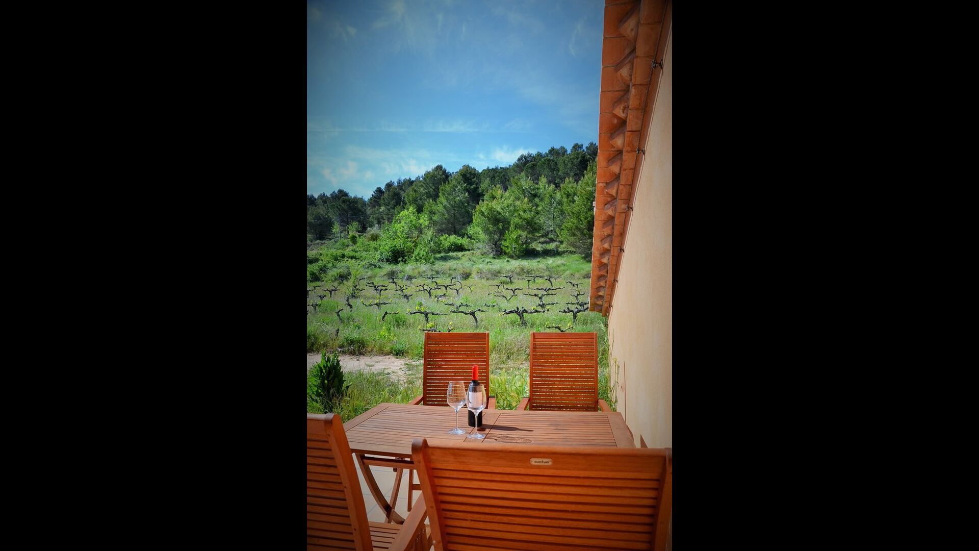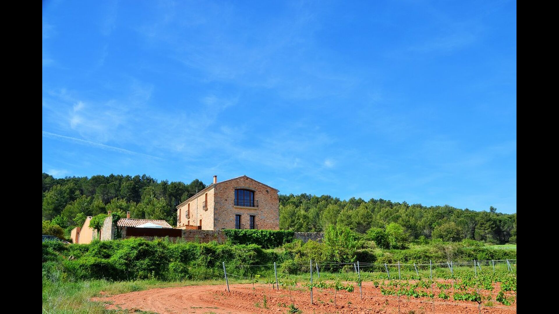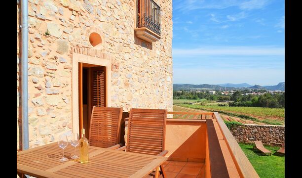 Bei der Ankunft im Casa Granmont fühlt man sich sofort in Katalonien. Sie verlassen die Hauptstraße, um die kleine Schotterstraße zu folgen, ein paar Häuser und ein Strom vorbei und Sie fahren dann zwischen den Weinbergen wo das Haus etwas über der Landschaft in der Ferne zu sehen ist.