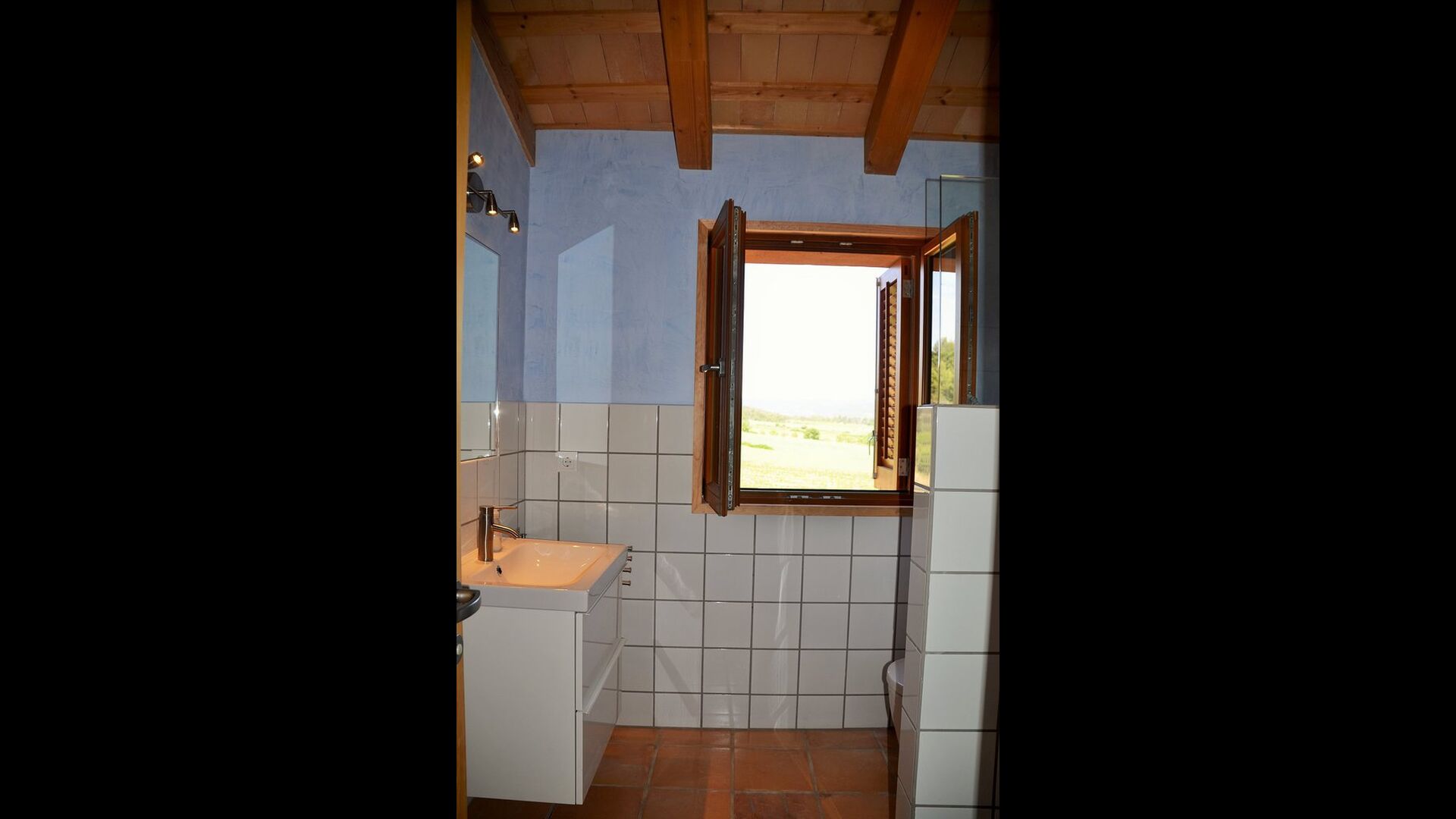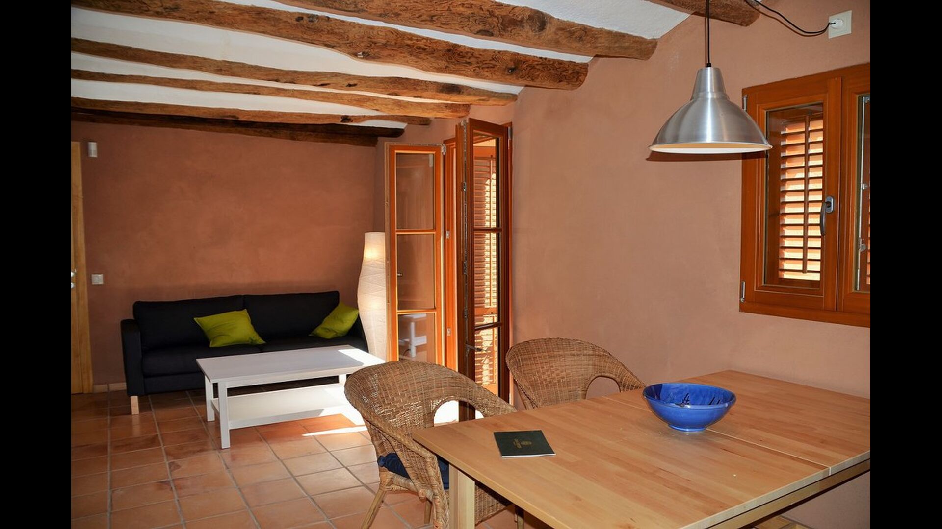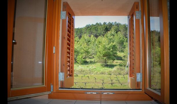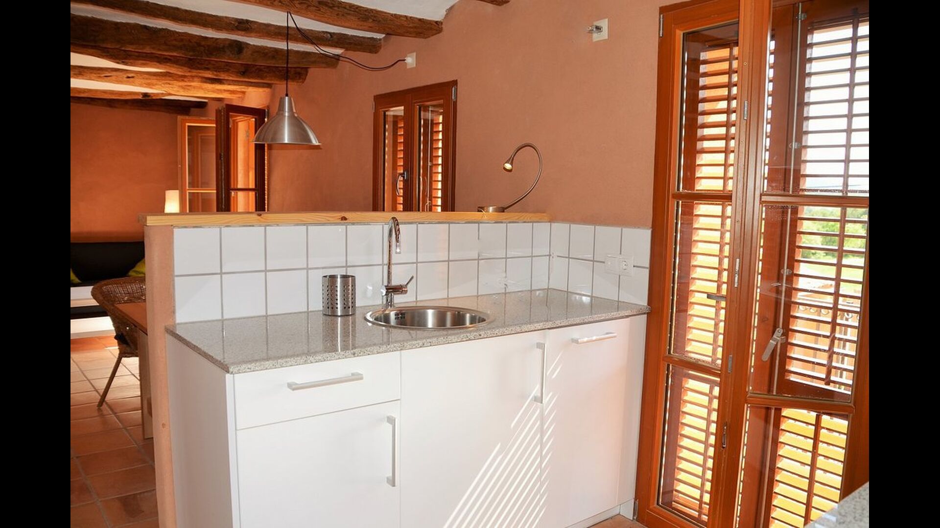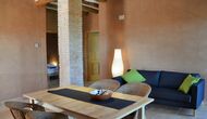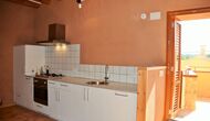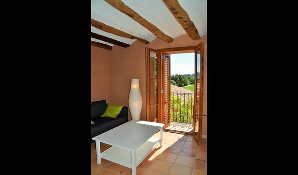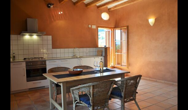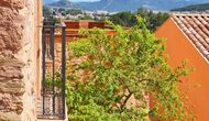 Die "Salvie" hat ein ähnliches Layout mit zwei Schlafzimmer, Badezimmer, ein Aufenthaltsraum mit Küche, Essbereich und Sofa-Ecke und Französischem Balkon mit Blick auf den Innenhof. Da das Haus auf einer gleitenden Hügel gelegen ist, ist die Terrasse dieser Einheit direkt auf den Felsen gelegen, mit Blick auf die Weinberge.