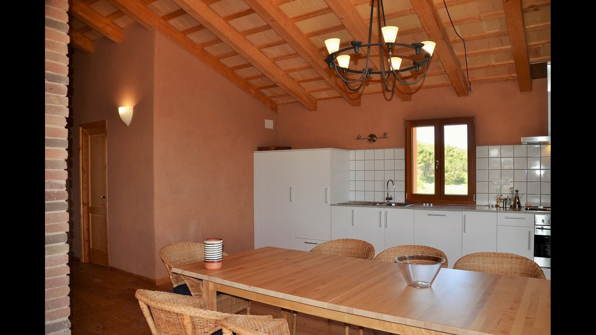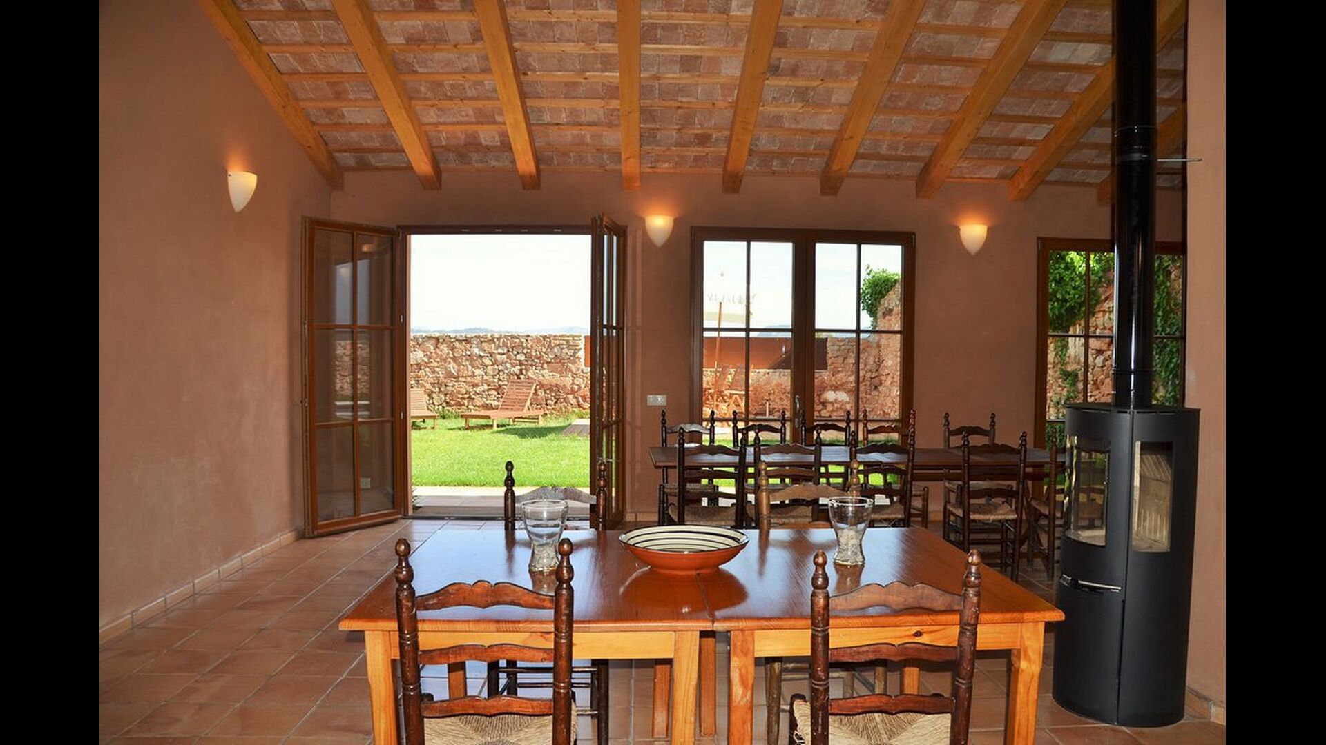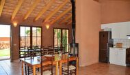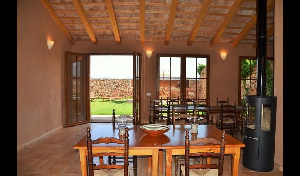 Das natürliche Zentrum für Ihren Urlaub ist der große Gemeinschaftsraum für Kochen und Essen neben dem Swimmingpool mit einem großen Esstisch, Küche und direktem Zugang zum Pool und der Terrasse.