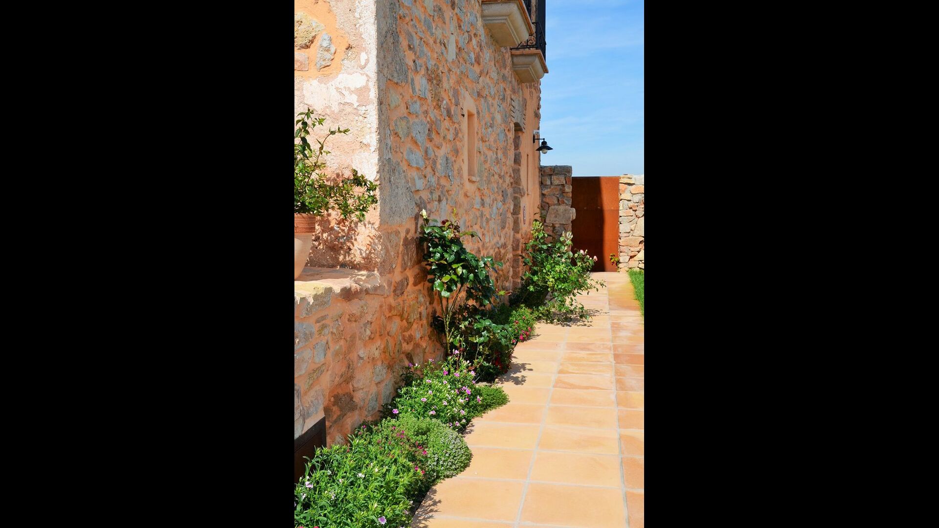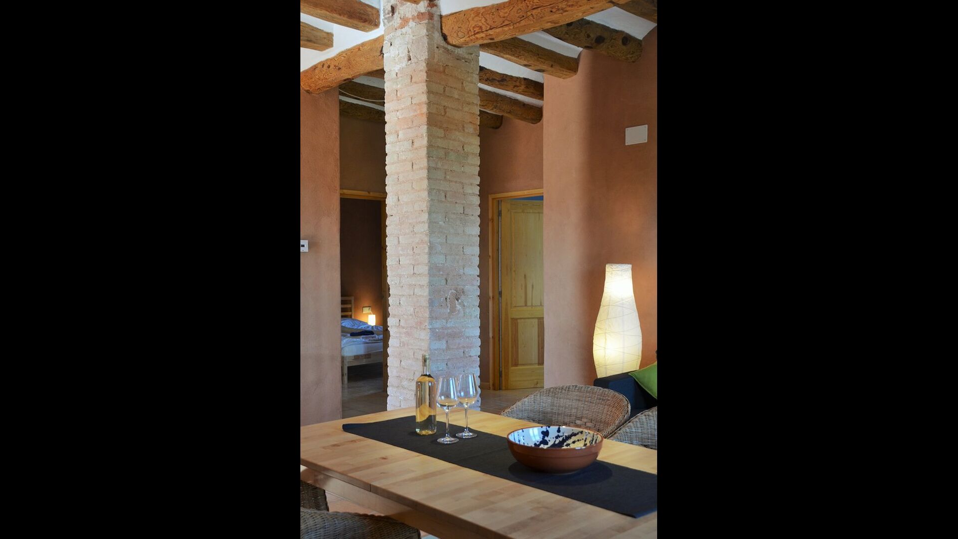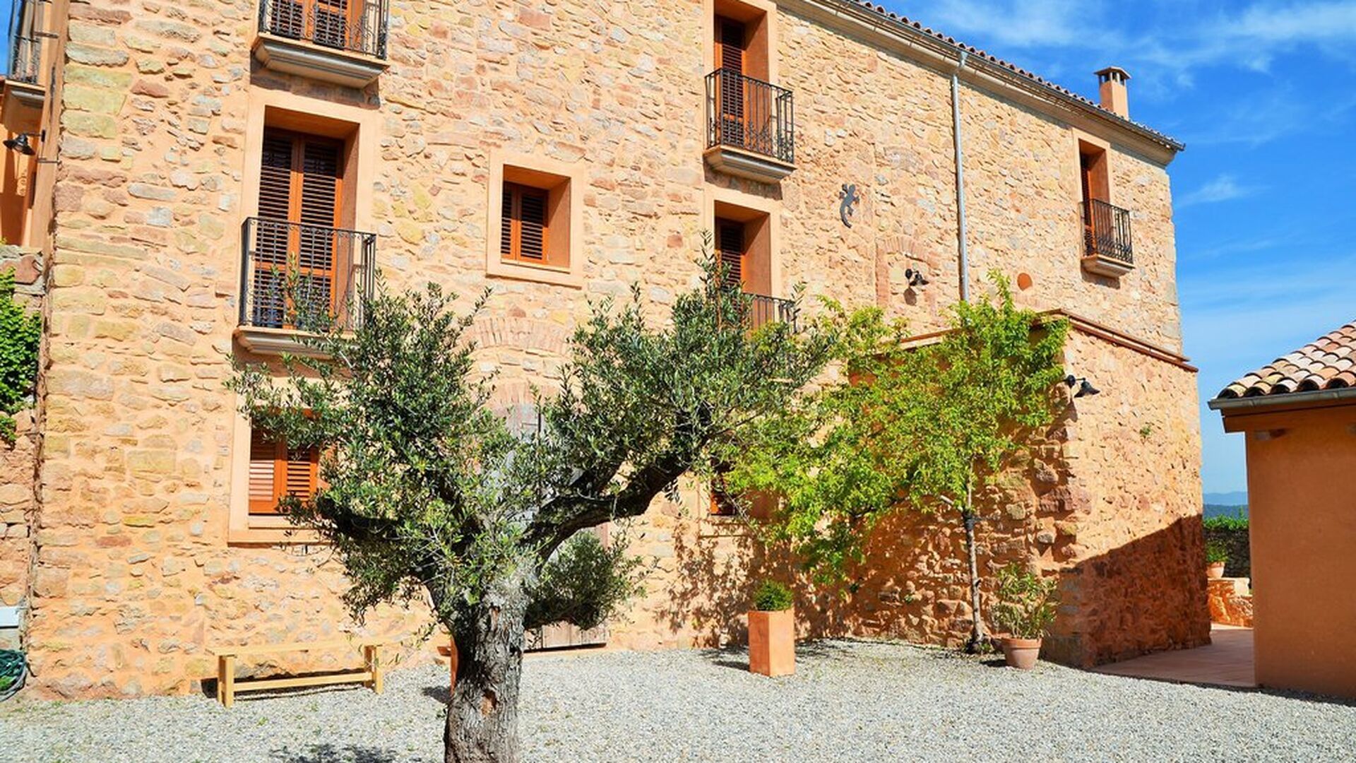 Bei der Ankunft im Casa Granmont fühlt man sich sofort in Katalonien. Sie verlassen die Hauptstraße, um die kleine Schotterstraße zu folgen, ein paar Häuser und ein Strom vorbei und Sie fahren dann zwischen den Weinbergen wo das Haus etwas über der Landschaft in der Ferne zu sehen ist.