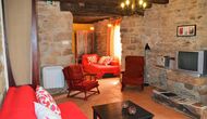 Zentral im Ferienhaus platziert, gibt es ein großes, geräumiges Wohnzimmer, wo die ganze Urlaubsgruppe zugleich zusammen sein kann. Hier gibt’s es, unter anderem, einen großen Esstisch, Sofaecke mit TV und DVD und Französische Türe mit Blick auf die schöne Landschaft. Darüber hinaus gibt es direkten Zugang zu einer Terrasse. Es gibt eine kleine Küche mit den notwendigen Utensilien - inklusiv Waschmaschine.