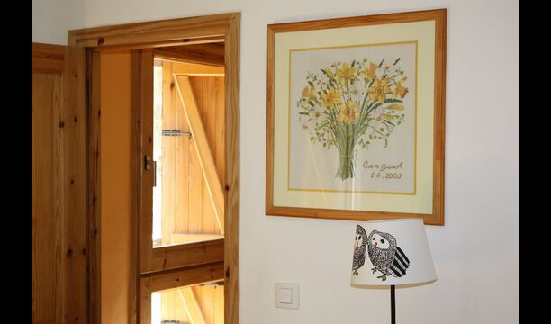 Es gibt acht Doppelzimmer im Ferienhaus. Sie sind alle in hellen, frischen Farben weiträumig eingerichtet - zum größten Teil mit schönen, charmanten Balkendecken. Es sind entweder Zimmer mit zwei Einzelbetten oder einem Doppelbett, so gibt es etwas für jeden in der Feriengruppe. Ebenso gibt es sieben Bäder in der Hütte.