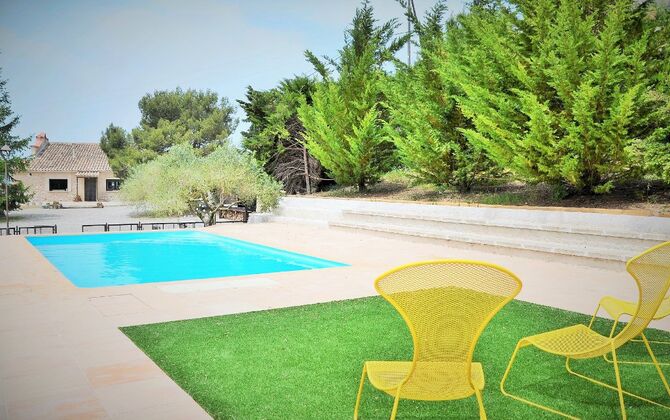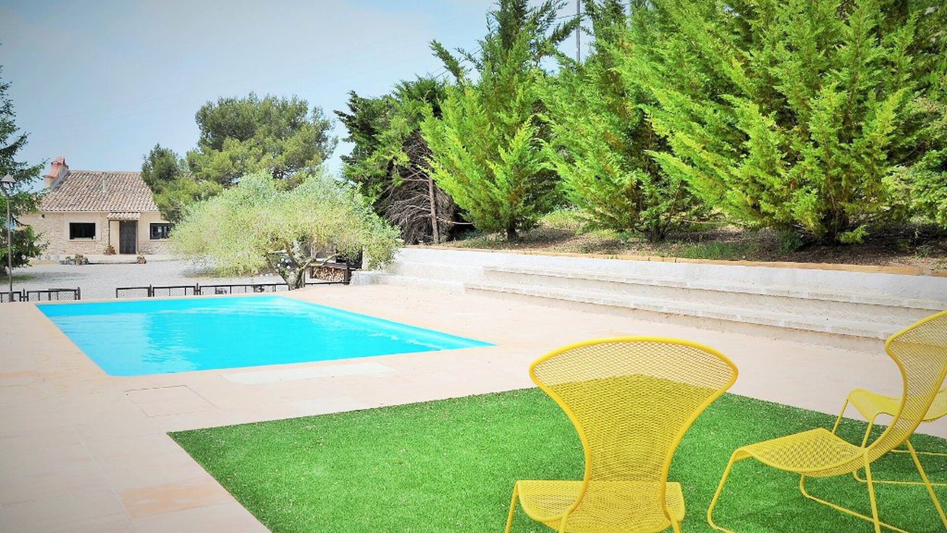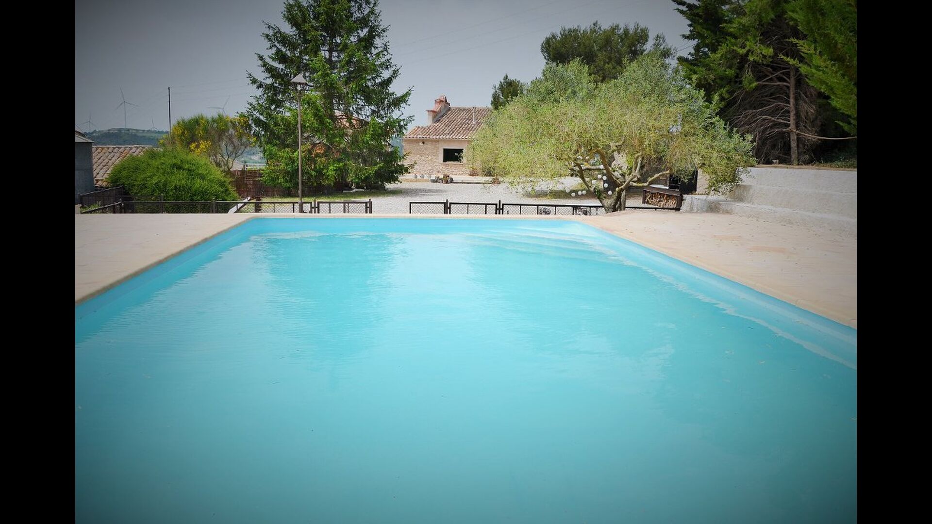 Vom Hof, gibt es nur ein paar Schritte bis zum Swimmingpool. Mit einer Größe von 45 m2, es ist ein großartiger Stelle den katalanischen Sommer zu geniessen. Es gibt auch eine römische Treppe in den Pool, so dass jeder in der Familie mitmachen kann, und es gibt Sitzgelegenheiten am Pool, so dass Sie abwechselnd die Sonne genießen und im Wasser abkühlen können. Der Poolbereich ist aus Sicherheitsgründen eingezäunt.
