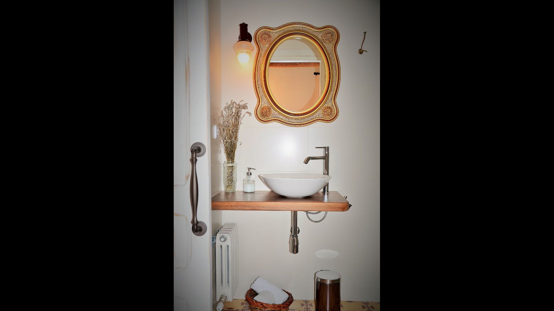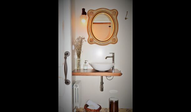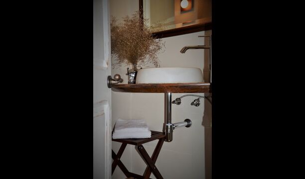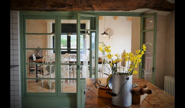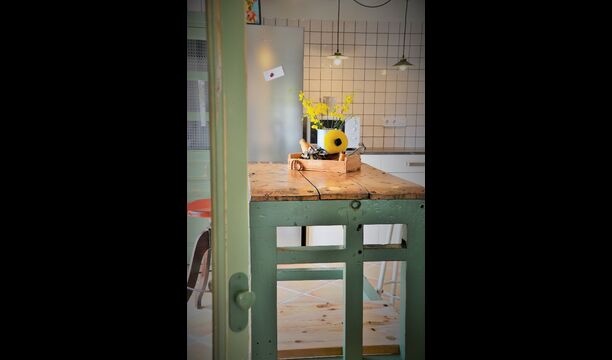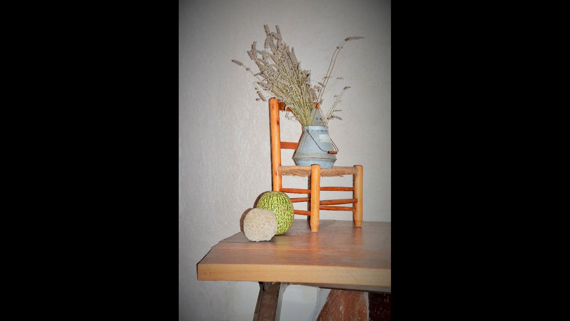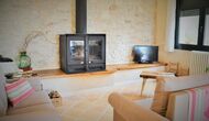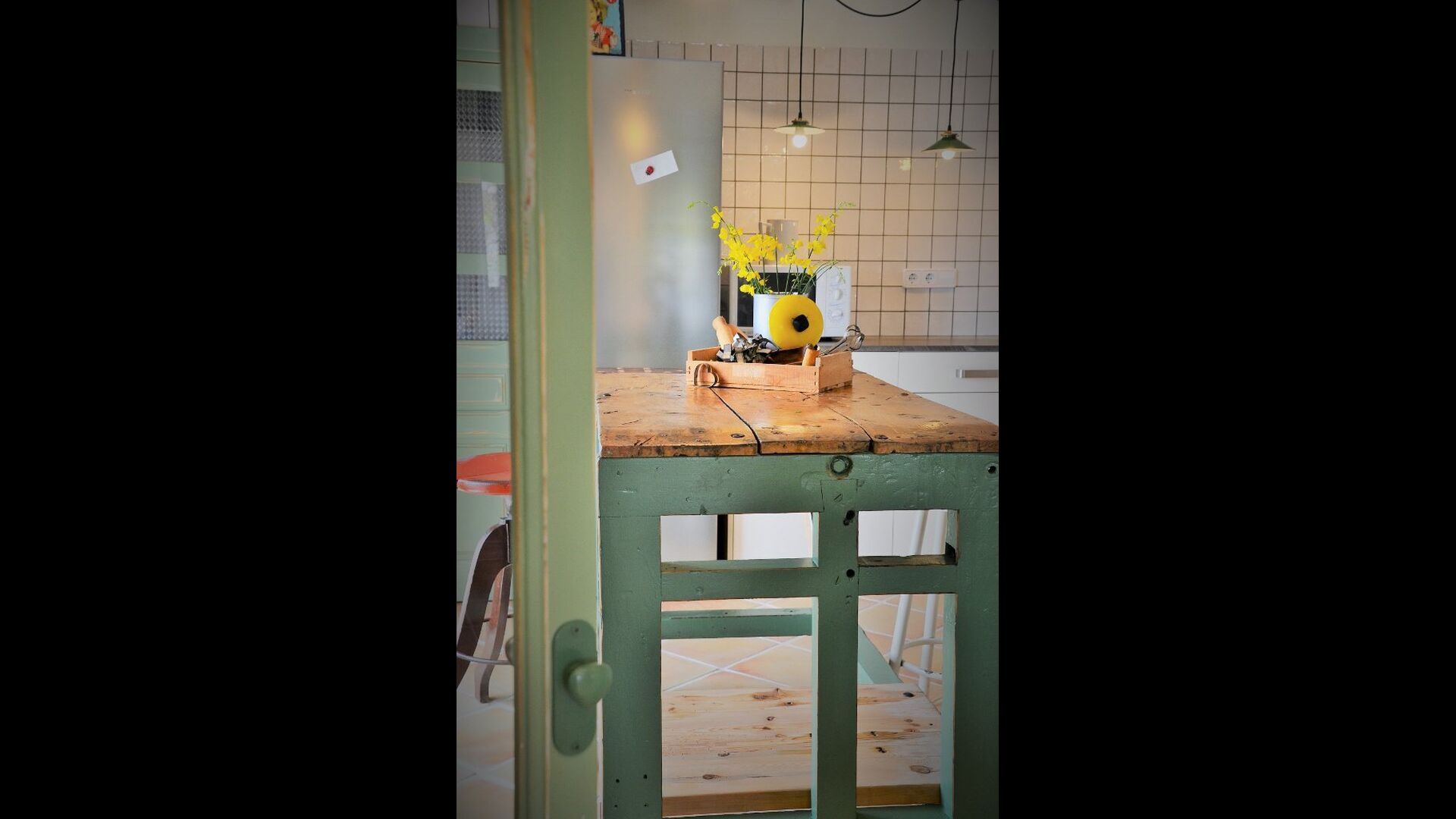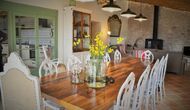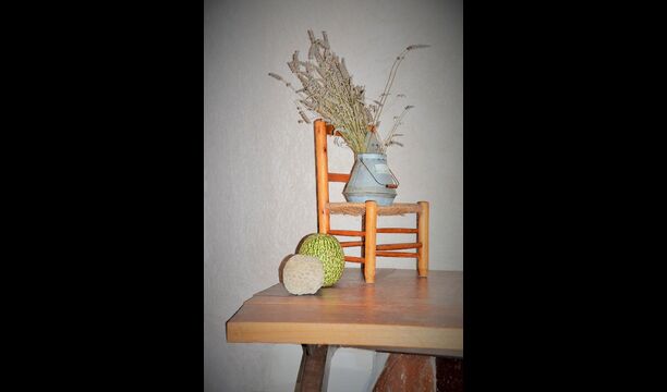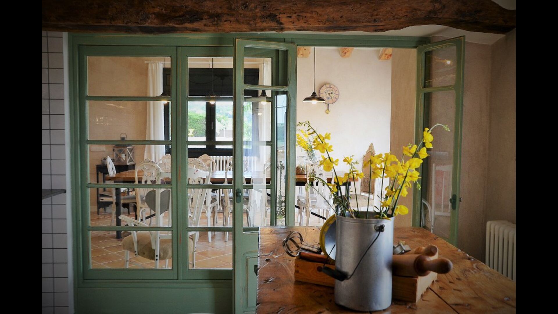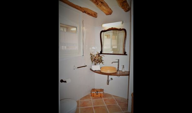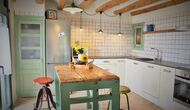 Die Küche ist im ersten Stock mit einem kleinen Balkon. Es ist sehr gut ausgestattet, so dass, wenn Sie es bevorzugen, einfach, Mahlzeiten zu Hause vorbereiten können. Darüber hinaus ist es sehr modern gestaltet - aber man kann noch den rustikalen, authentischen Look erkennen, mit Holzbalkendecken und Holztisch, einer alten Getreiderampe gemacht ist Nur von einigen Glastüren getrennt, gibt es ein sehr schönes Esszimmer mit der zuvor genannten Esstisch. Hier gibt es auch einen Sitzbereich mit TV, Kamin und bequemen Sofas.