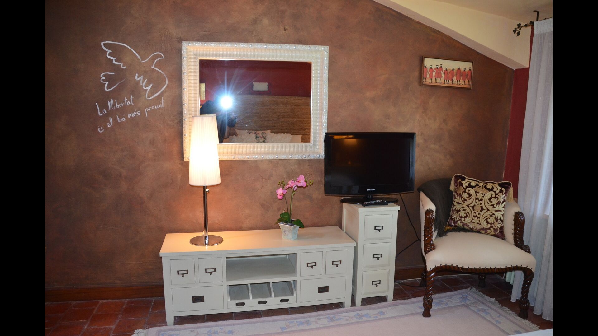 • 5 große, schöne Zimmer, die sorgfältig ausgestattet sind (3 Doppelzimmer und 2 Dreibettzimmer)