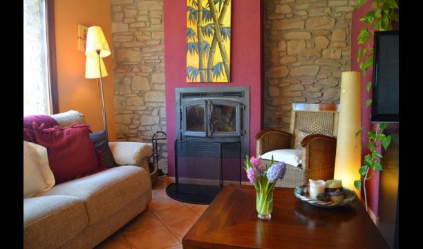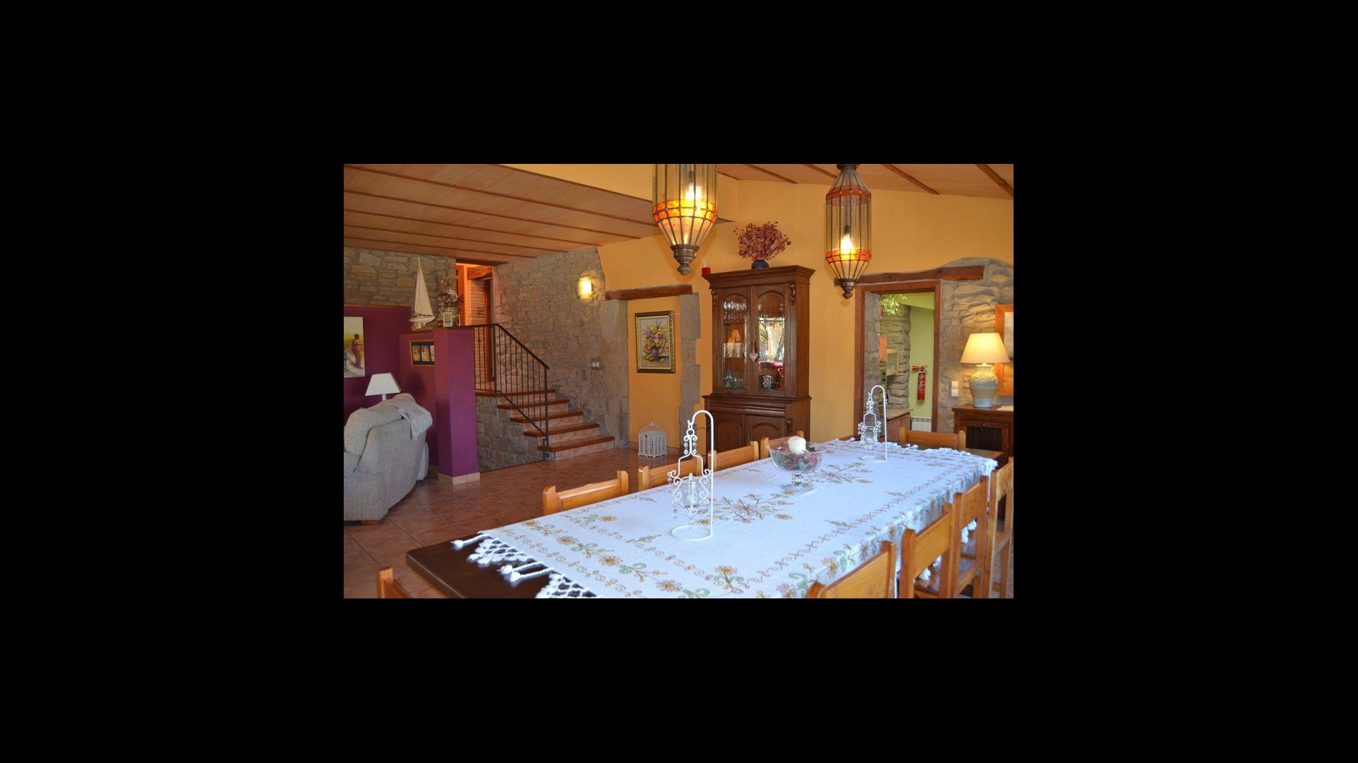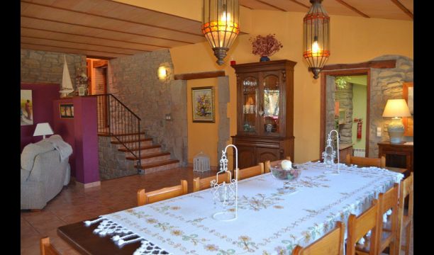Das schöne Wohnzimmer mit Sofas und einem Kamin ist eine Erweiterung des Essbereiches, den mit einem guten traditionellen spanischen Esstisch dekoriert ist. Die Küche ist groß und bietet viel Platz für die große Ferien-Gruppe. In der Küche gibt es alle modernen Annehmlichkeiten. Dazu gehören Kühlschrank, Gefrierschrank, großer Backofen, Mikrowelle, Geschirrspüler, Espresso-und Gasherd. Das Haus verfügt über schnelle Wi-Fi, DVD und Musikanlage.