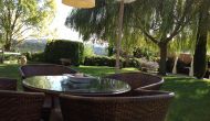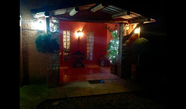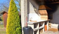 Im Garten gibt es einen eingezäunten, privaten Schwimmbad (jeder der beiden Häuser hat eigenen Pool) und am Ende des Schwimmbades gibt es eine überdachte Terrasse mit BBQ und Sommerküche. Es gibt auch eine kleine Terrasse vor dem Haus und auf dem Rasen ist ein kleiner Pavillon, wo man auch Schatten an heißen Sommertagen finden können.
