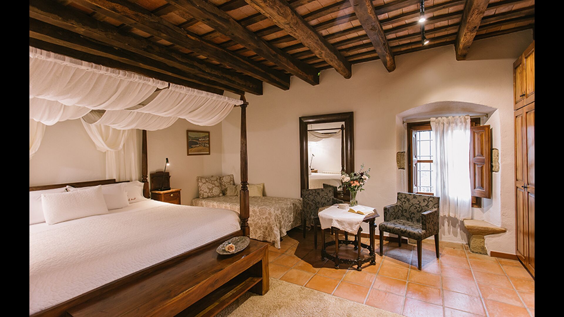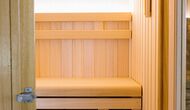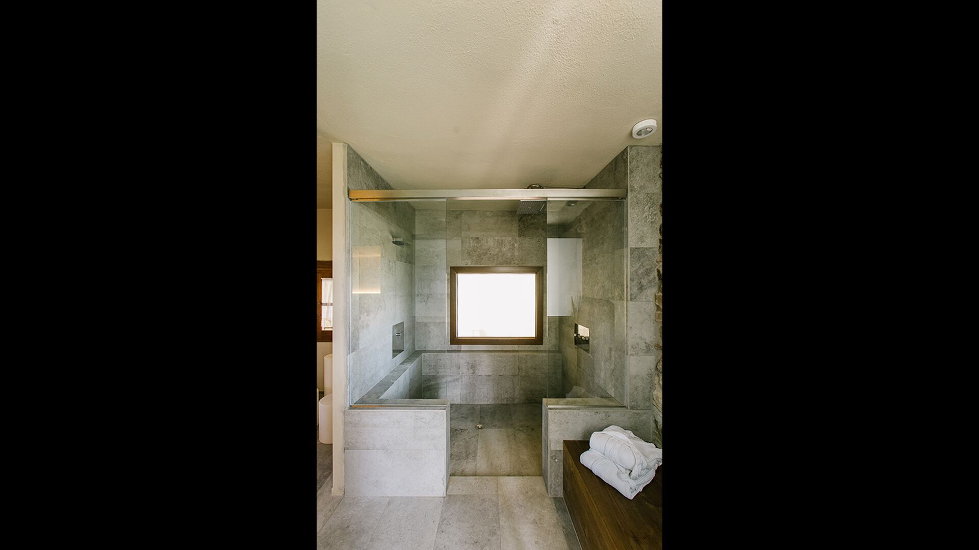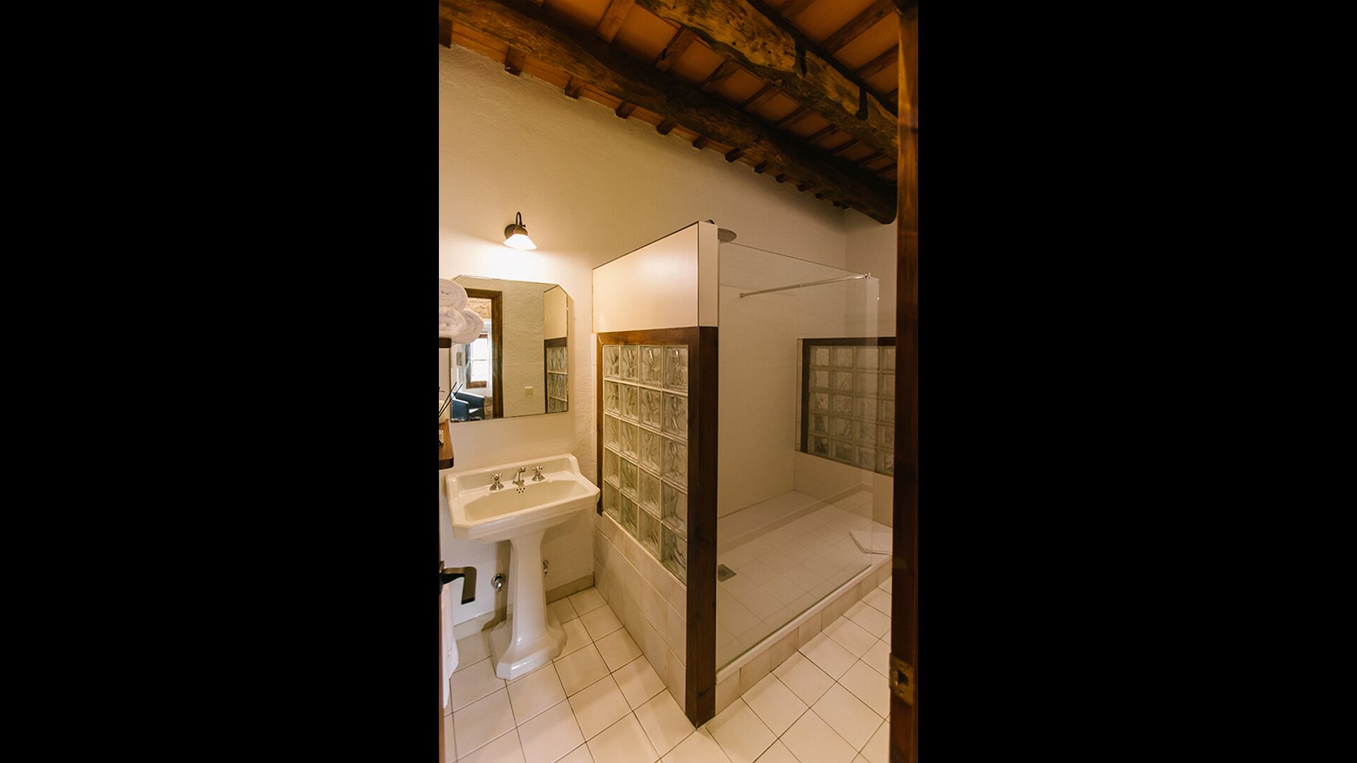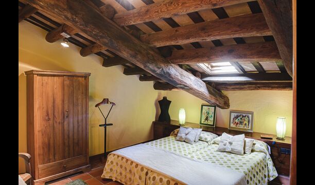 Der erste Stock enthält einen großen Aufenthaltsraum mit offenem Kamin, TV, DVD und Stereoanlage. Vier Doppelzimmer mit Bad (3 mit Doppelbetten, 1 mit 2 Einzelbetten) und eine 65m2 Master Suite mit offenem Kamin, TV, Bad und Spa-Bad. Von der Master Suite kommt man durch eine private Treppe direkt in den Hallenbad-Bereich hinein.