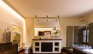 Im Erdgeschoss befindet sich eine riesige Esszimmer-Küche mit offenem Kamin, eine umfangreiche Wohnbereich, separates Esszimmer, ein Bar und ein Badezimmer. Außerdem gibt es ein beheiztes 3,5 x 7 Meter