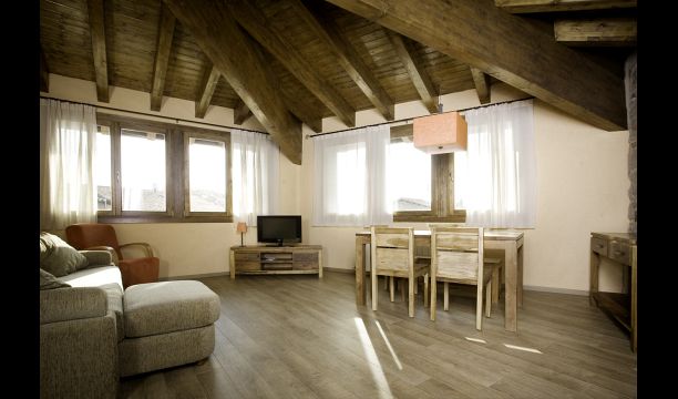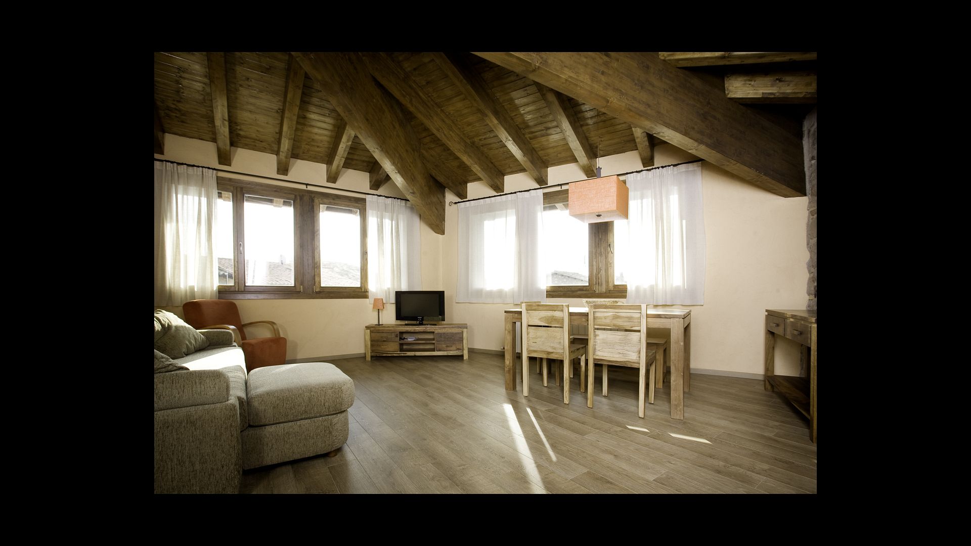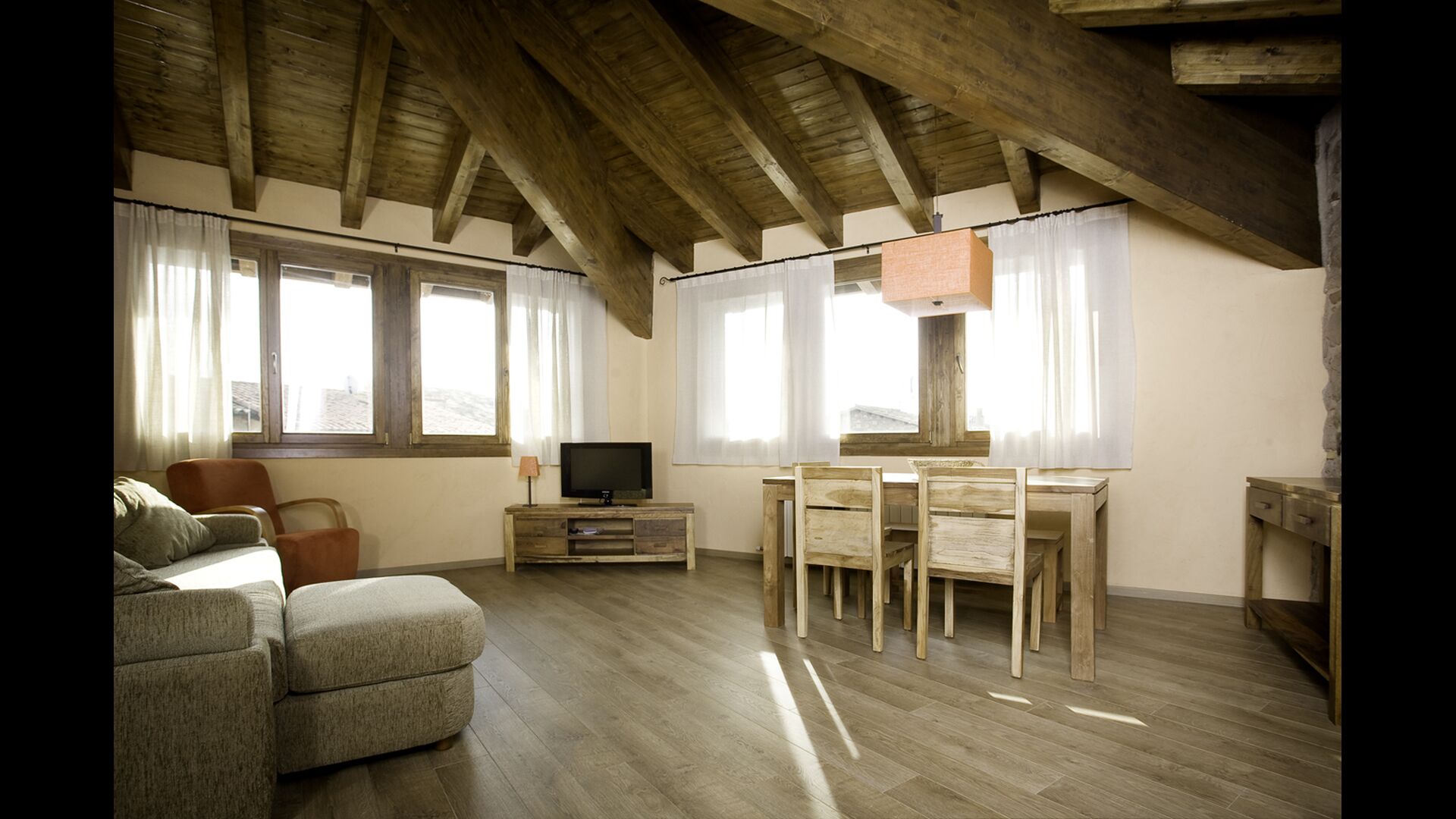 Llucanes ist das Zwillingsapartment zum Apartment Margarita, daher haben sie mehr oder weniger den gleichen Grundriss. Diese Wohnung im zweiten Stock ist ein gemütlicher Ausgangspunkt mit Blick auf die Dorfstraße.