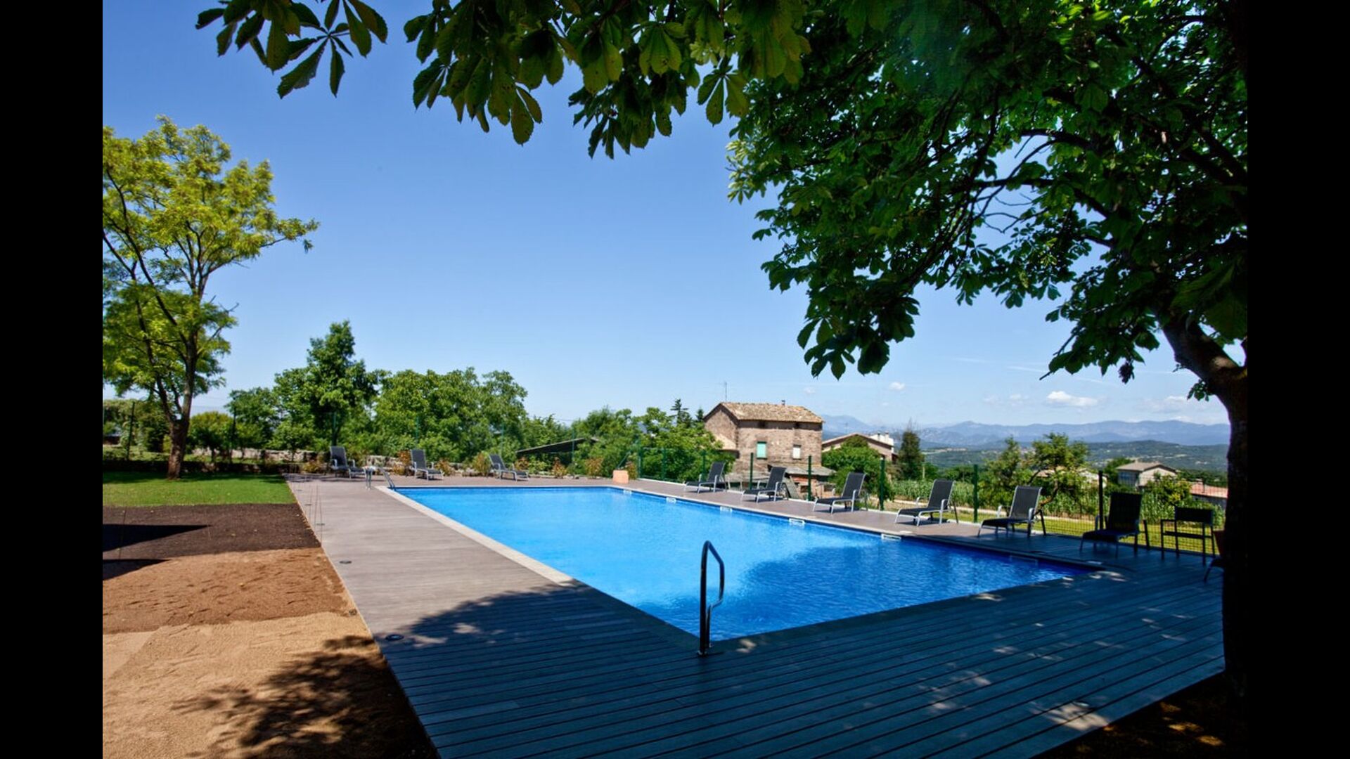 Darüber hinaus wurde die Rückseite des Hauses in den fantastischen Swimmingpoolbereich mit dem großen Swimmingpool (17 x 5 Meter), Café Tische, Toiletten und Umkleidekabinen sowie schattige Ecken und sonnige Plätze. Die Aussicht ist atemberaubend, direkt auf die Pyrenäen.