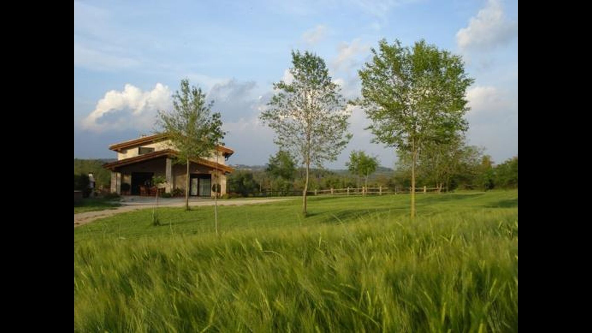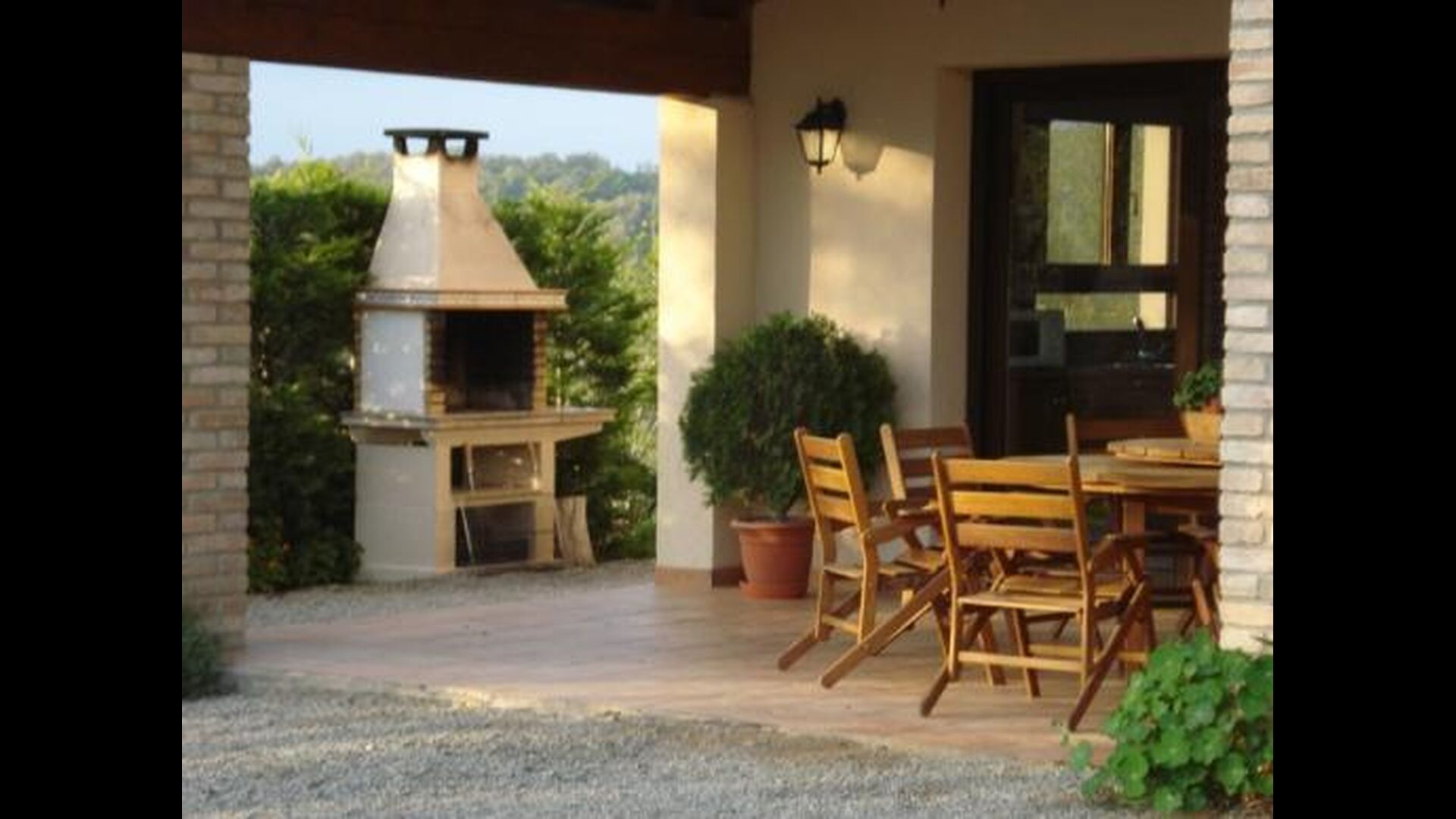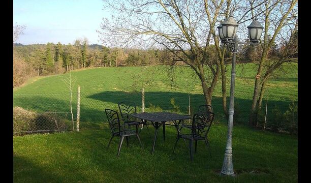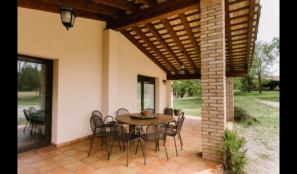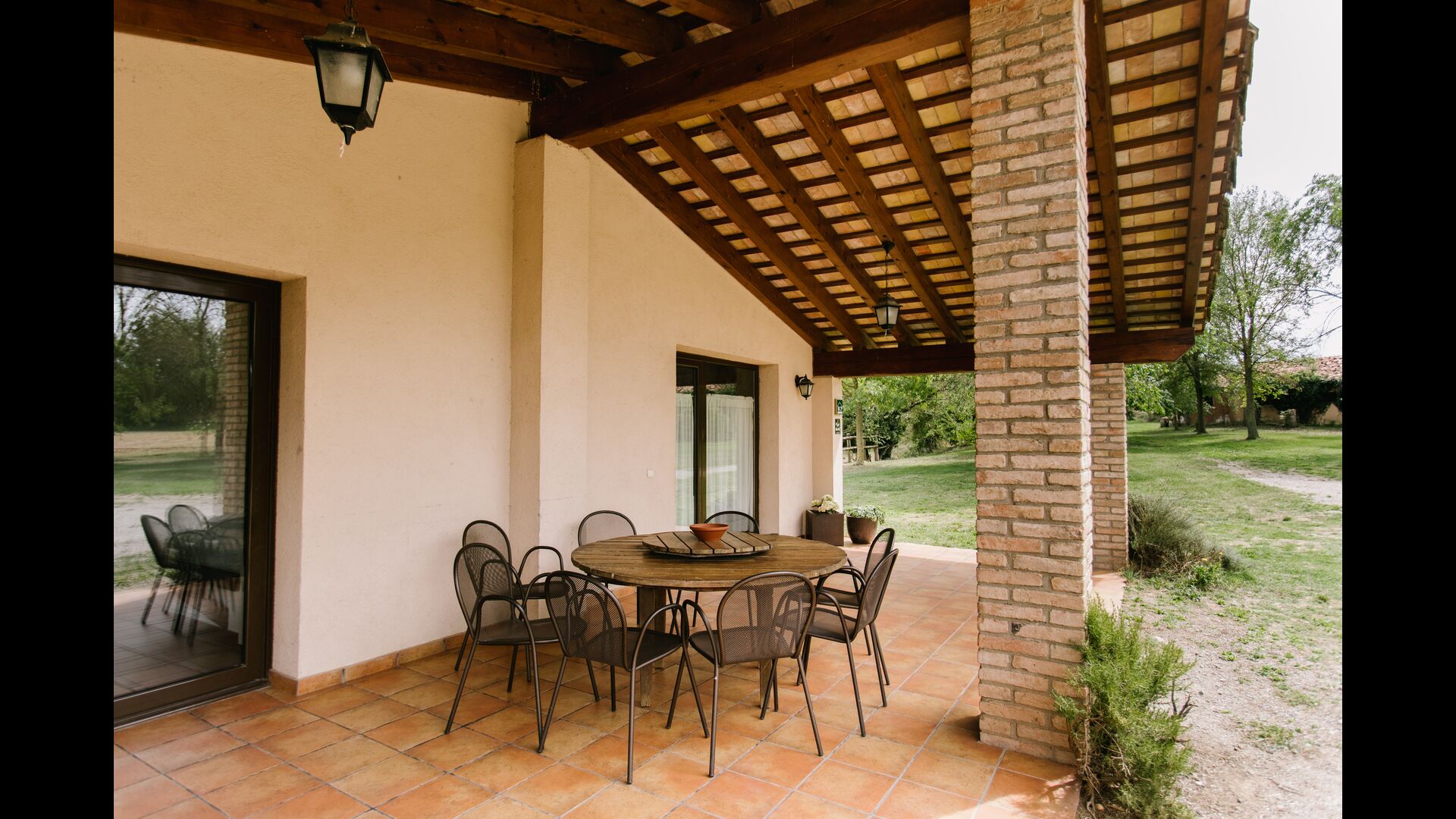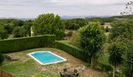 Unterhalb des Hauses, liegt ein eingezäunter Garten mit Swimmingpool und Liegen. Von hier hat man eine atemberaubende Aussicht über die unten liegenden Felder und in den Horizont der Pyrenäen. Das Haus ist von Natur umgeben, weit von den nächsten Nachbarn.