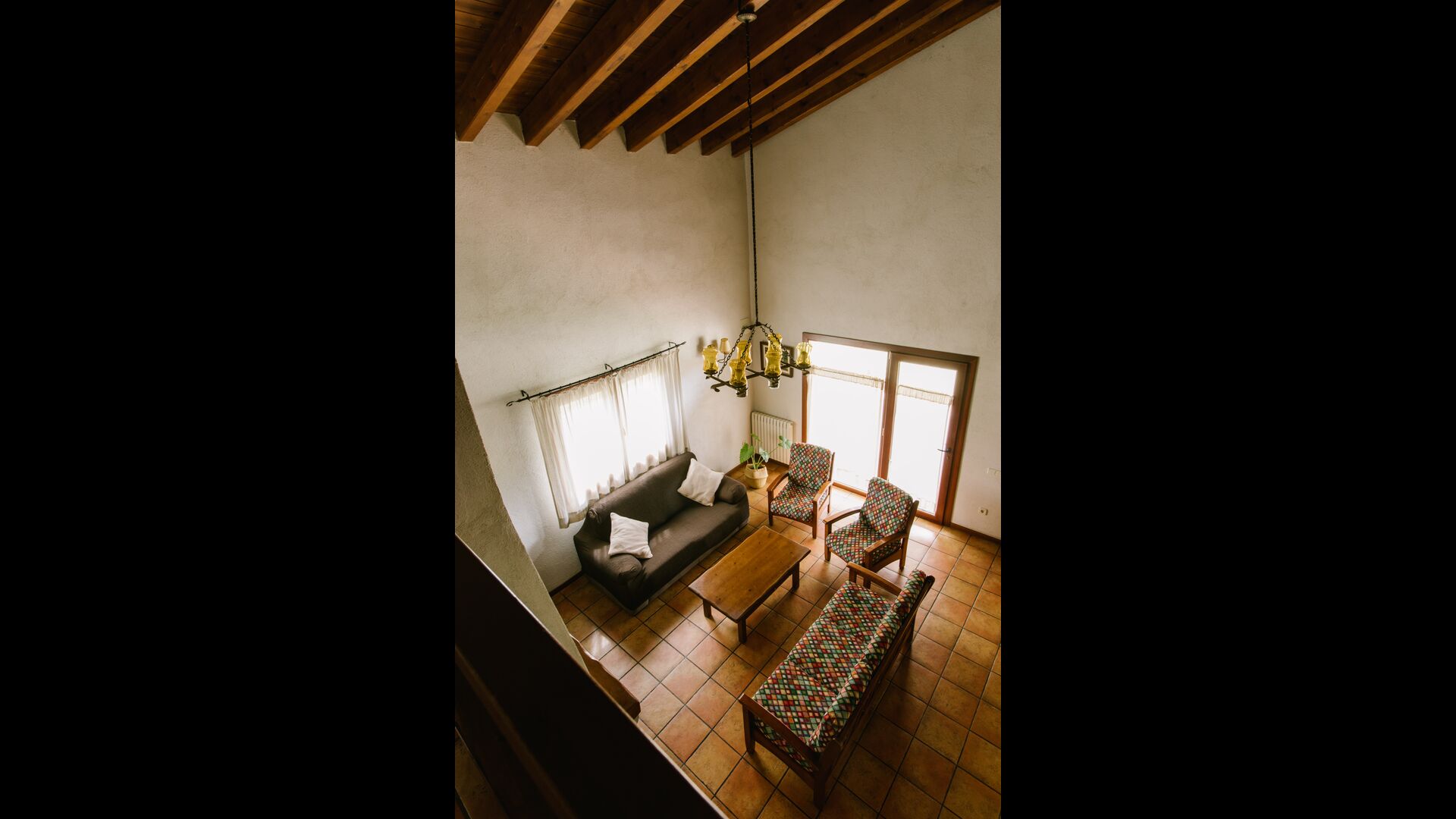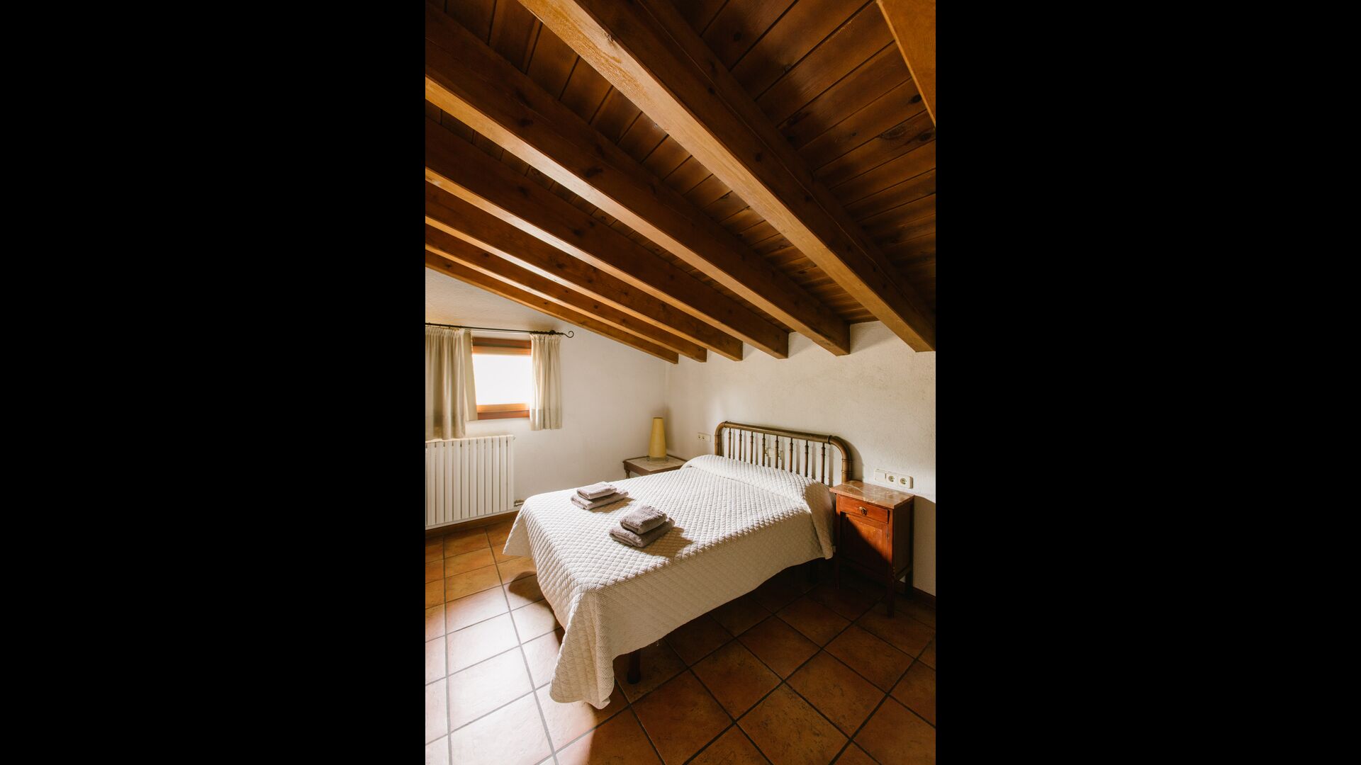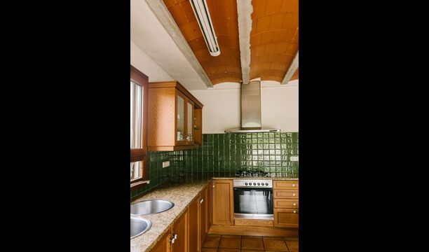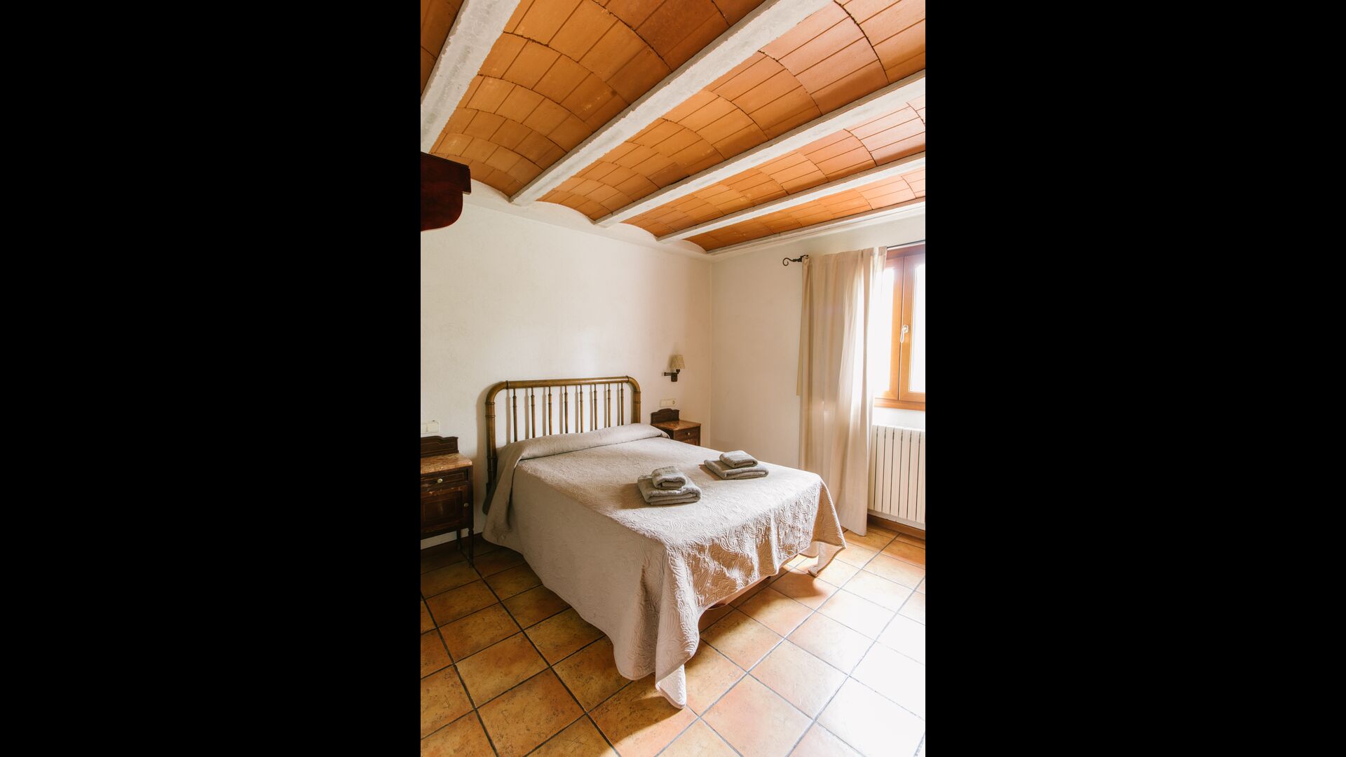 Das Haus ist ideal für eine Gruppe oder große Familie, als das Haus über 5 Doppelzimmer und zwei Bäder verfügt, die auf zwei Stockwerken verteilt sind. In der unteren Etage gibt es ein Wohnzimmer mit Essbereich und Zugang zur Küche. In den warmen Katalanischen Sommern, ist es oft vorzuziehen, die Mahlzeiten auf der Terrasse zu haben. Von der Terrasse, die mit schönen Möbeln von dunklem Holz ausgestattet ist, gibt es direkten Zugang zur Küche.