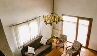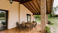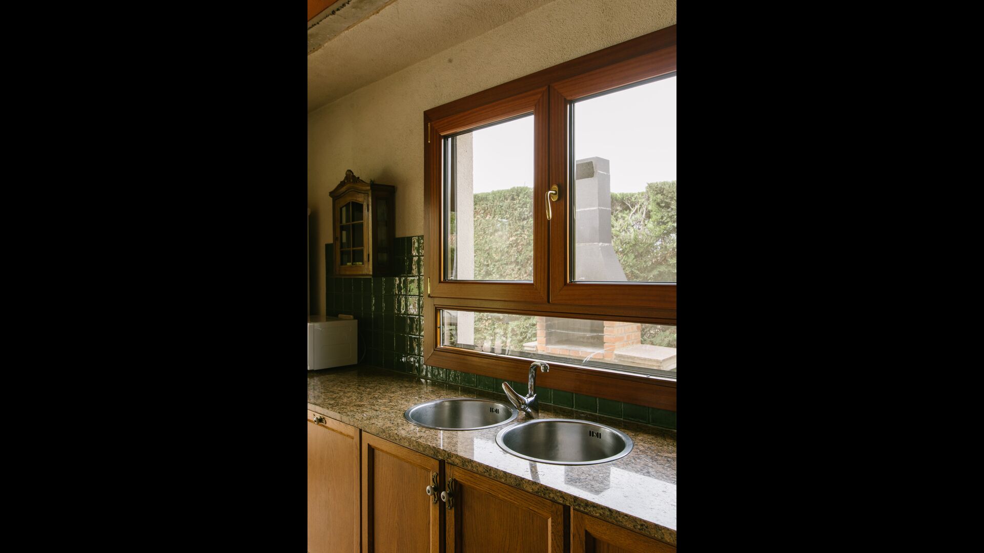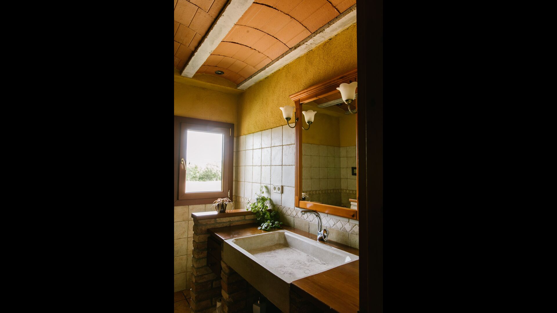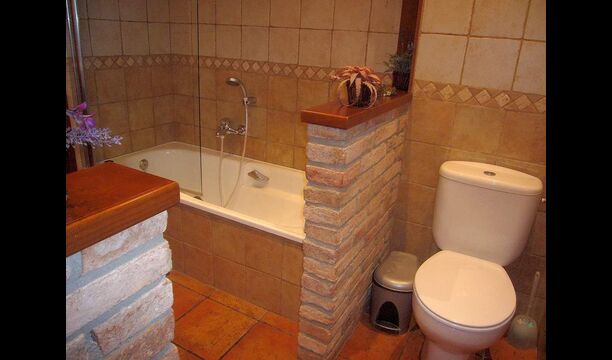 Das Haus ist ideal für eine Gruppe oder große Familie, als das Haus über 5 Doppelzimmer und zwei Bäder verfügt, die auf zwei Stockwerken verteilt sind. In der unteren Etage gibt es ein Wohnzimmer mit Essbereich und Zugang zur Küche. In den warmen Katalanischen Sommern, ist es oft vorzuziehen, die Mahlzeiten auf der Terrasse zu haben. Von der Terrasse, die mit schönen Möbeln von dunklem Holz ausgestattet ist, gibt es direkten Zugang zur Küche.