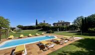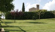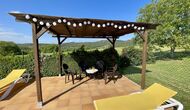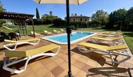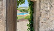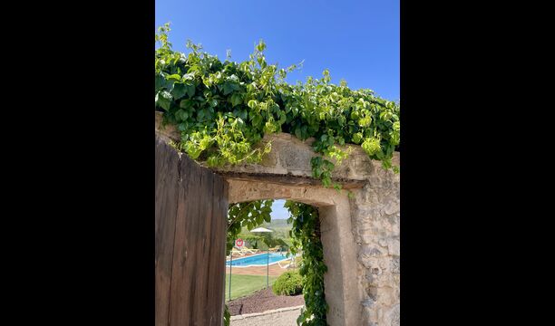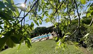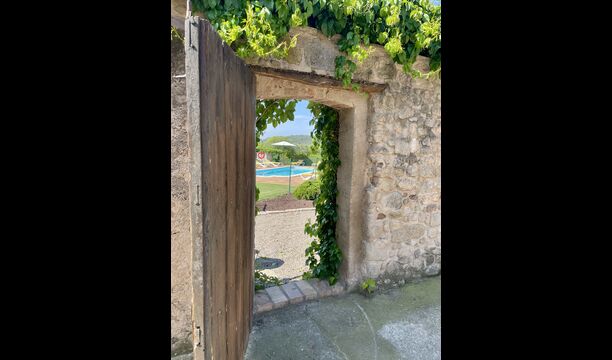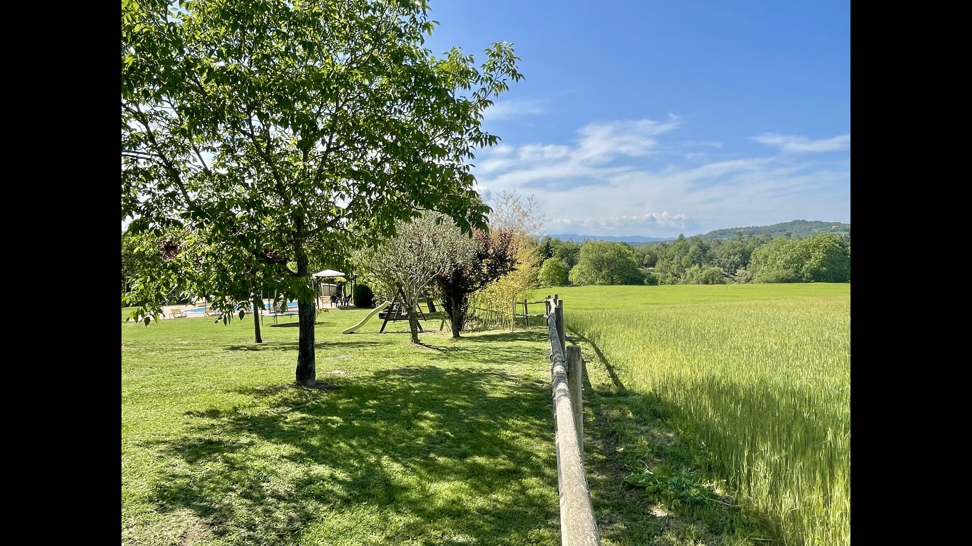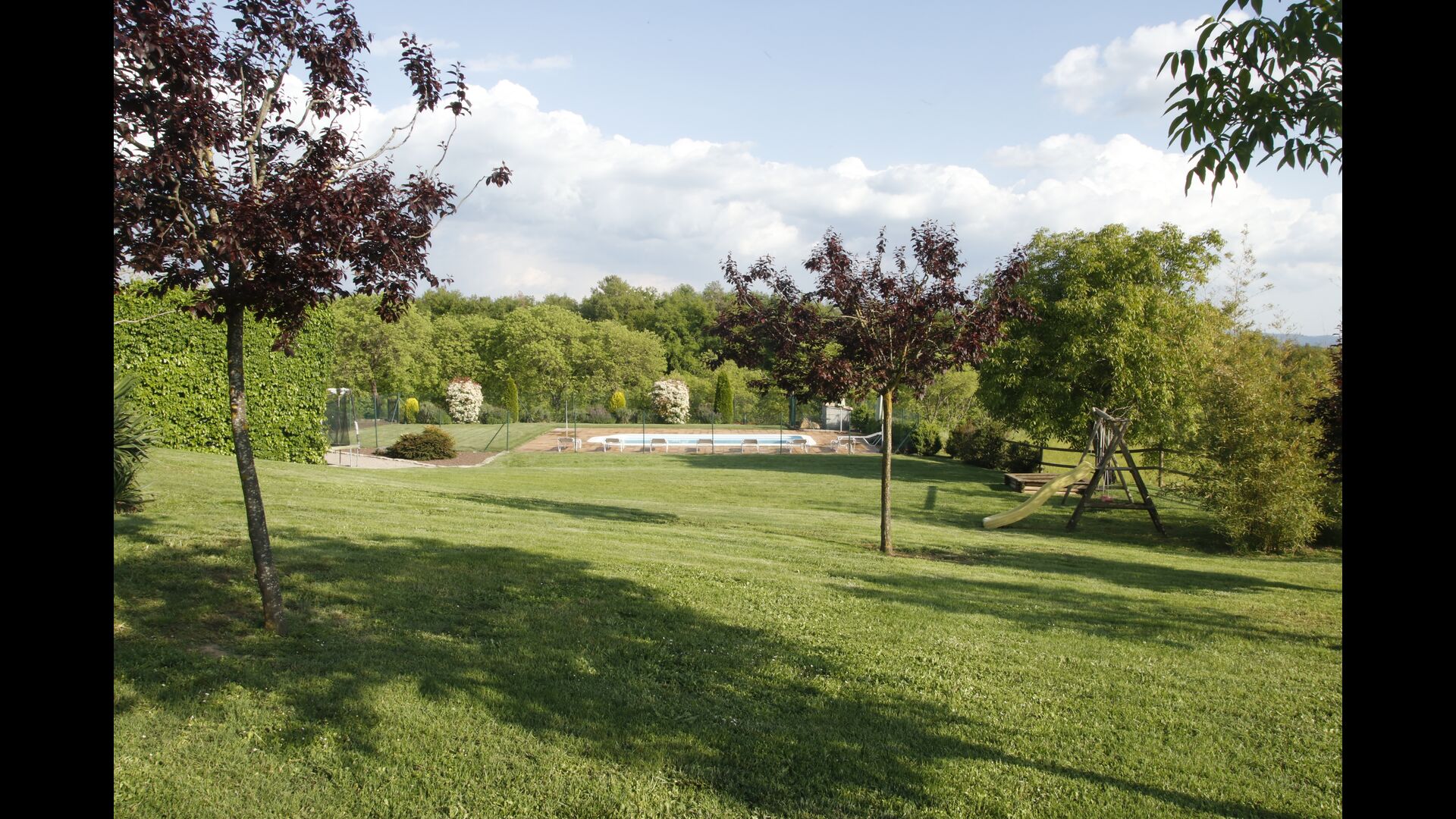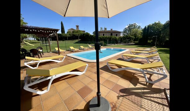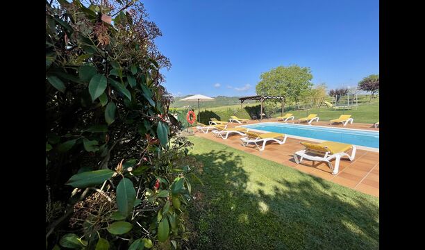 Das beeindruckende Tor, das früher groß genug war, um die Pferdekutschen durchzulassen, bietet Zugang zum wunderschönen Garten- und Poolbereich. An einem Ende spendet der Rasen mit einigen Bäumen Schatten. Außerdem gibt es einen Sandkasten und Schaukeln für die Kleinsten sowie einige Tische für leichte Mahlzeiten. Am anderen Ende befindet sich das Schwimmbad mit römischer Treppe, das ist eigentlich sehr schön, wenn Sie kleine Kinder in Ihrer Gruppe haben. Bei einem kühlen Getränk und einem Buch und dem wunderschönen Ausblick über die hügelige Landschaft mit Feldern und Wäldern lassen die Ruhe und Geräusche die letzten Reste des stressigen Alltags verschwinden.