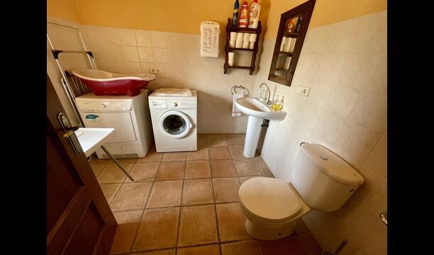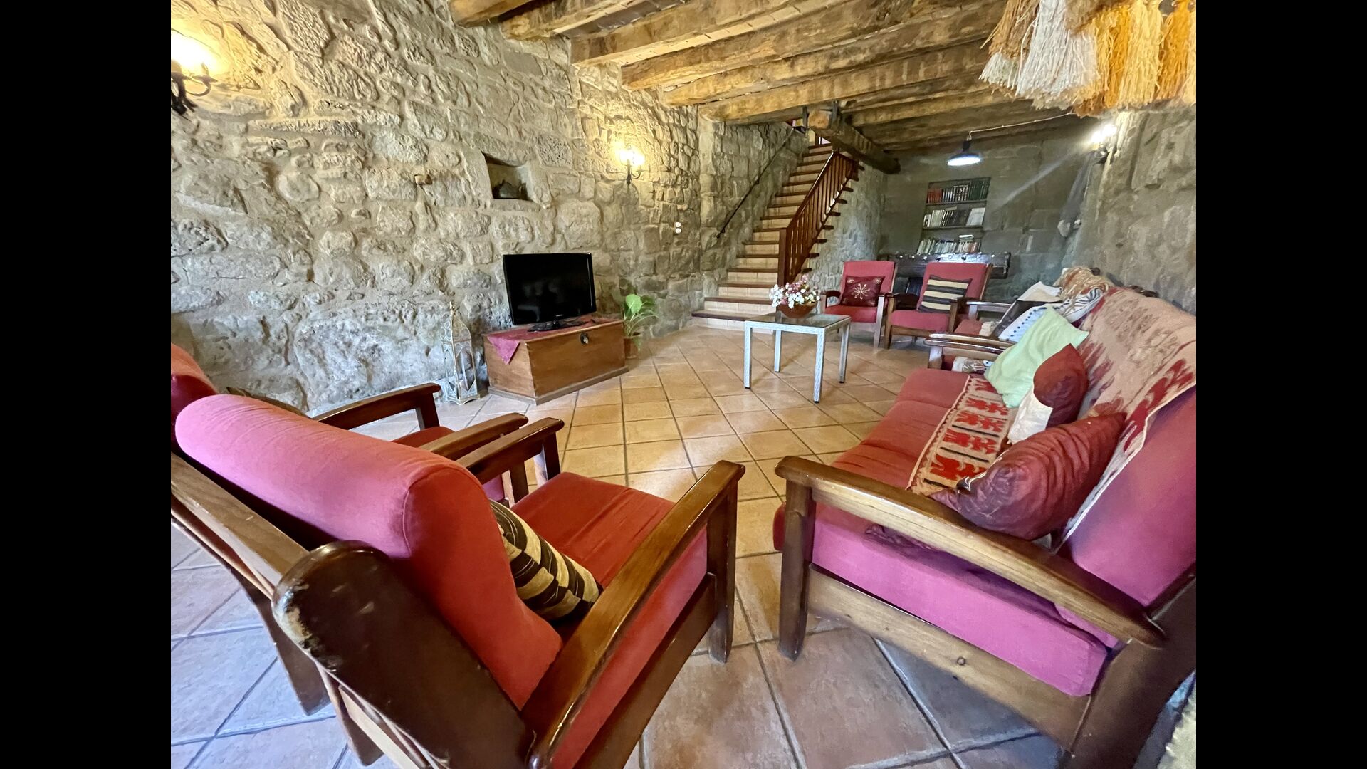 Heute wurde das Haus unter Beibehaltung seiner ursprünglichen Struktur vollständig restauriert. Der auf einem gleitenden Felsen erbaute Eingang vom Parkplatz führt Sie direkt in die erste Etage. Hier gibt es eine Küche mit allen Annehmlichkeiten (Herd, Mikrowelle, Geschirrspüler, Küchenutensilien etc.), ein sehr großes Wohn-/Esszimmer mit einem riesigen Esstisch aus Holz, der auch als Verteilungsraum für alle dient die Schlafzimmer. Das Haus verfügt über insgesamt 6 Schlafzimmer, davon 2 Dreibettzimmer. Jedes der Schlafzimmer verfügt über ein eigenes Badezimmer. Darüber hinaus gibt es im Erdgeschoss eine Toilette, die nützlich ist, wenn Sie draußen bleiben. Das Haus verfügt außerdem über TV, DVD und WIFI-Internet.