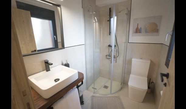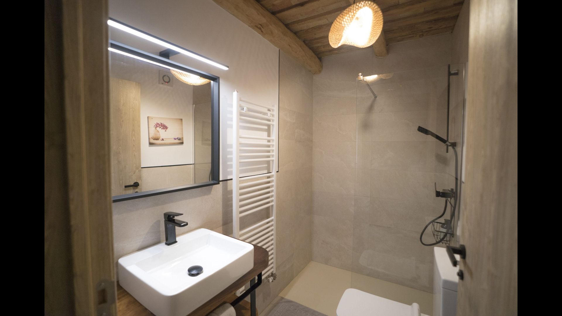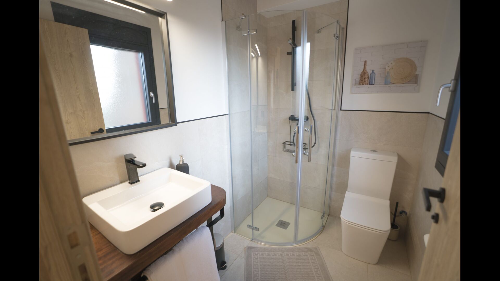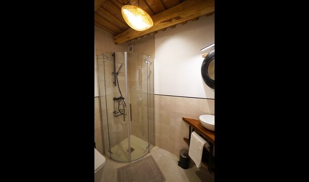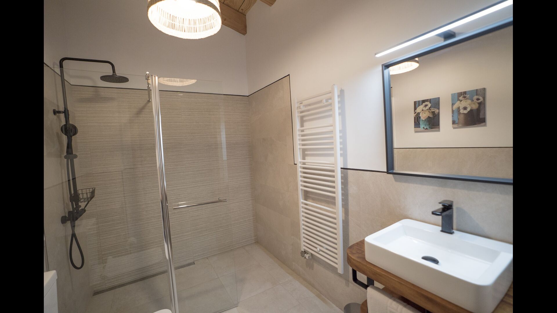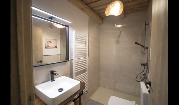 Mit insgesamt 6 Schlafzimmern, davon 2 Doppel- und 4 Dreibettzimmer, wurde jeder Raum so gestaltet, dass er Komfort bietet und einen unvergesslichen Aufenthalt garantiert. Drei dieser Schlafzimmer verfügen über eigene Badezimmer, um Ihre Privatsphäre zu gewährleisten. Zusätzlich verfügen wir über ein Gästebad im Spa-Bereich, sowie ein Badezimmer im zweiten Stock und ein drittes Badezimmer im Obergeschoss.