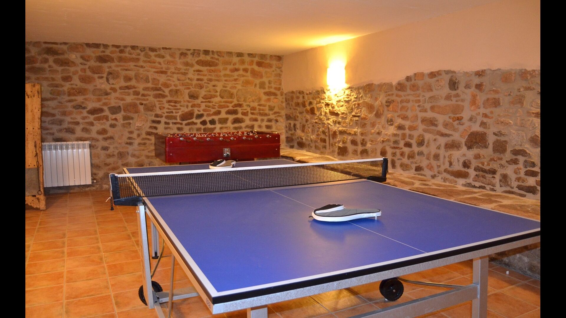 Die Häuser sind von mehreren schöne Umgebungen in verschiedenen Ebenen gelegen. Der Aussen Entspannungsbereich, Grill und Sitzgelegenheiten zum Essen im Freien auf der überdachten Terrasse am Hof der Küche, ist die aufgelegte Stelle für die Abendstunden. Unterhalb des Hauses findet man den großen Poolbereich mit Liegewiese und Swimmingpool und mit einem besonderen Bereich für kleine Kinder. Hier kann man wirklich die sonnigen Tage in Katalonien genießen. Weiter gibt es auch einen kleinen Fußballplatz und im Inneren, eine Halle mit Billard, Tischtennis und Tischfußball.