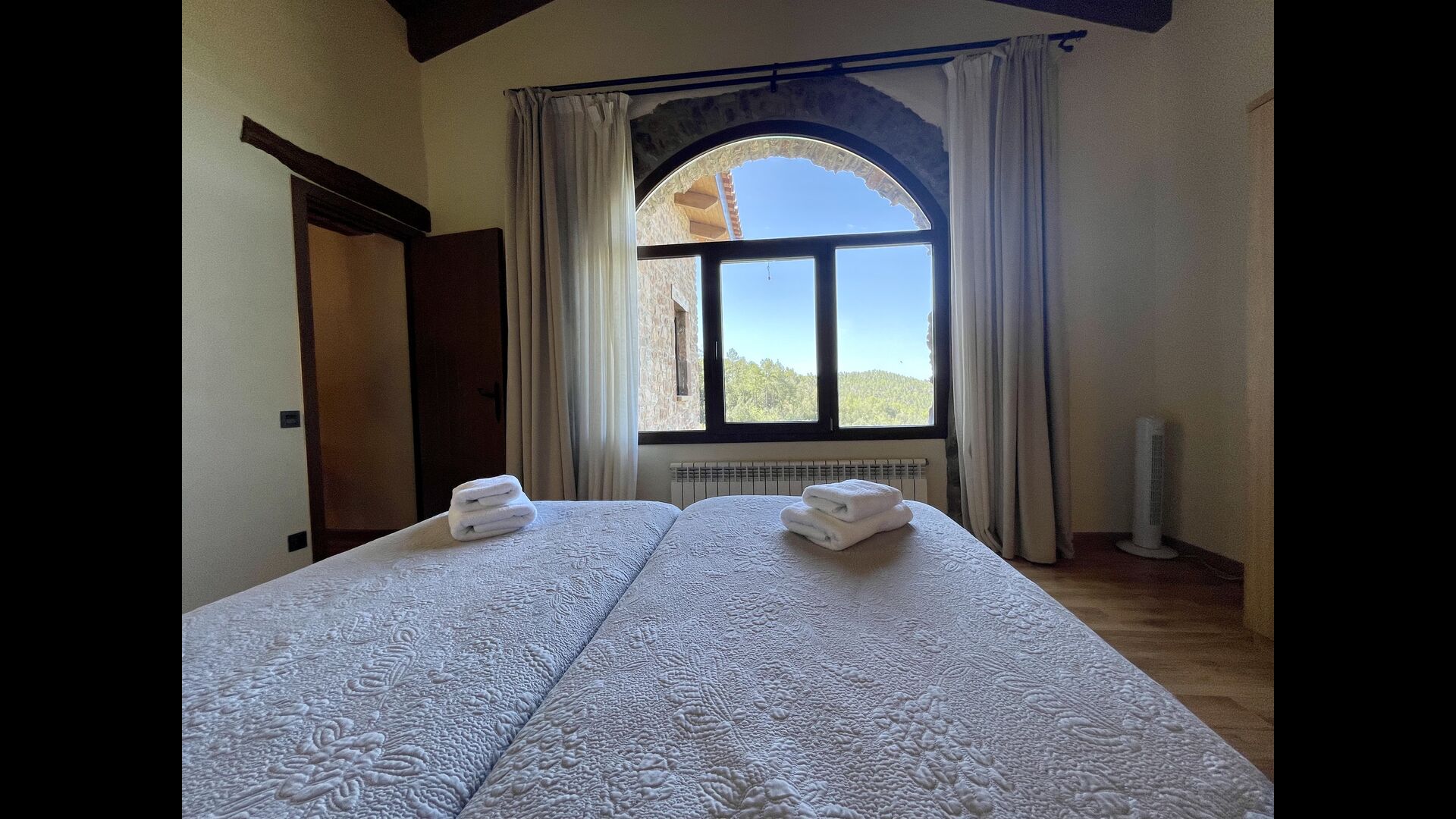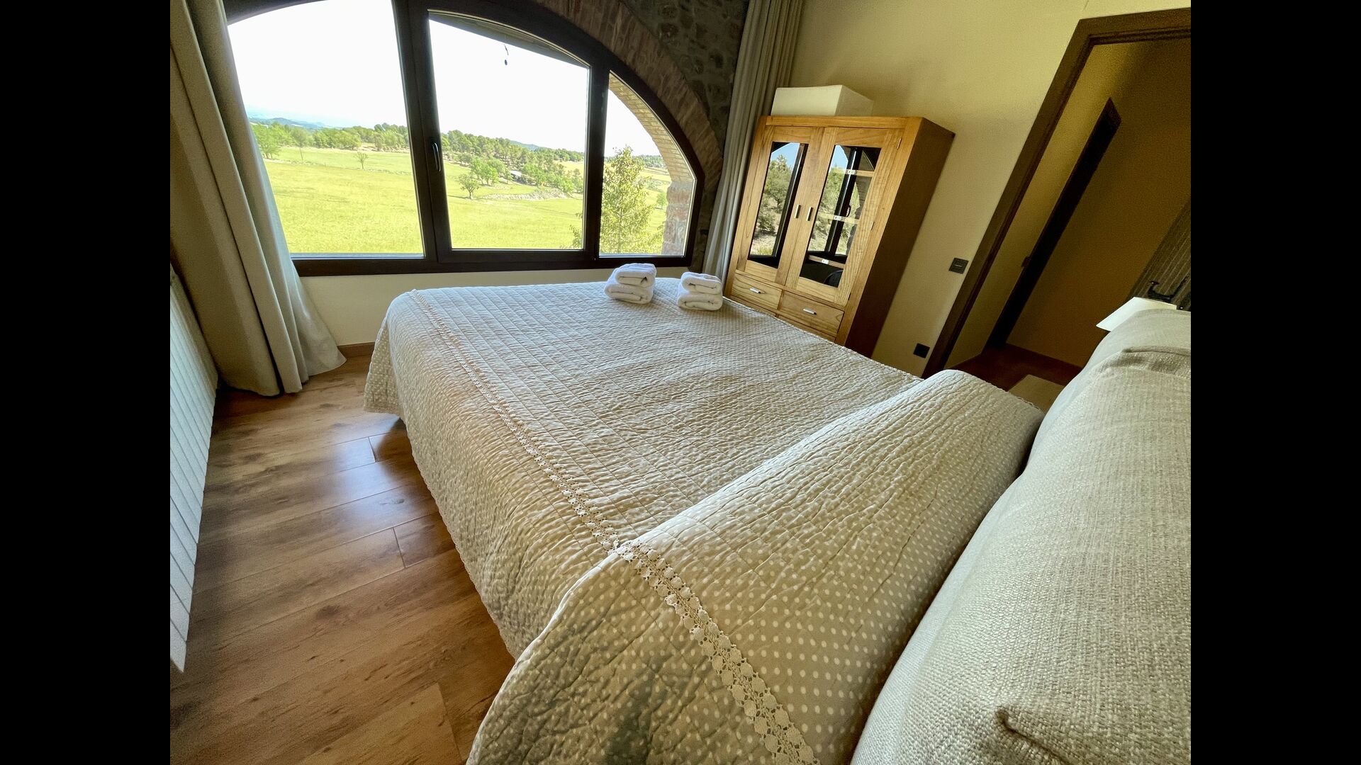 Die Schlafzimmer sind im ersten und zweiten Stock verteilt und alle Zimmer haben einen spektakulären Blick. Auf der ersten Etage befinden sich 3 schön eingerichtete Doppelzimmer und eine Lounge zum Entspannen. Es gibt auch eine große Terrasse mit Blick auf Montserrat. Ein Schlafzimmer hat eigenes Badezimmer und direktem Zugang zur Terrasse und in dem anderen Ende teilen sich zwei Doppelzimmer ein Bad.