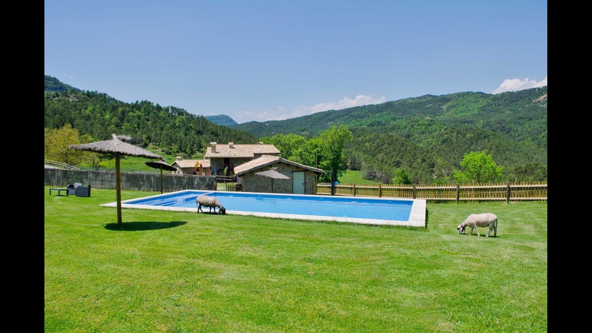 Can de Pirineus besteht aus vier Häusern und Wohnungen, die alle sich den Swimmingpool von 57,5 m2 und den großen Garten teilen. Sie sind meistens separat vermietet, aber es ist möglich, Alles für sich selbst zu haben - Privatpool und eigenem Garten in der schönen Umgebung.