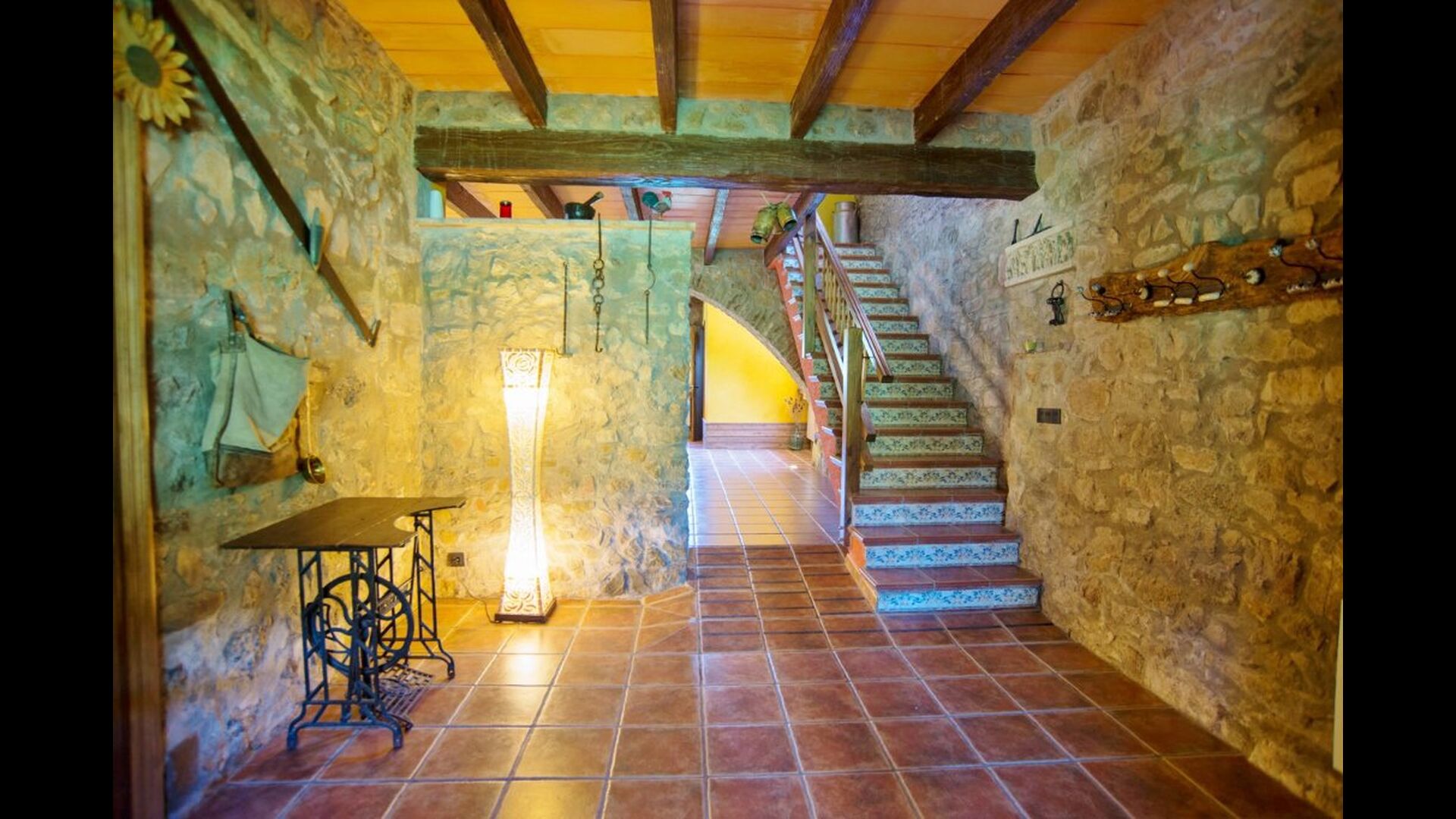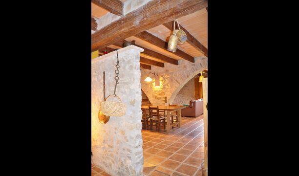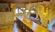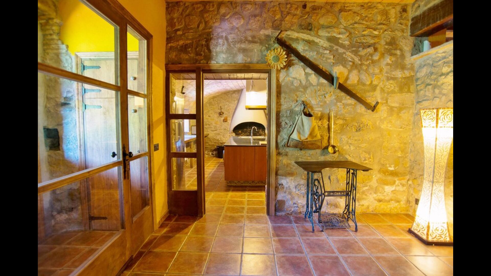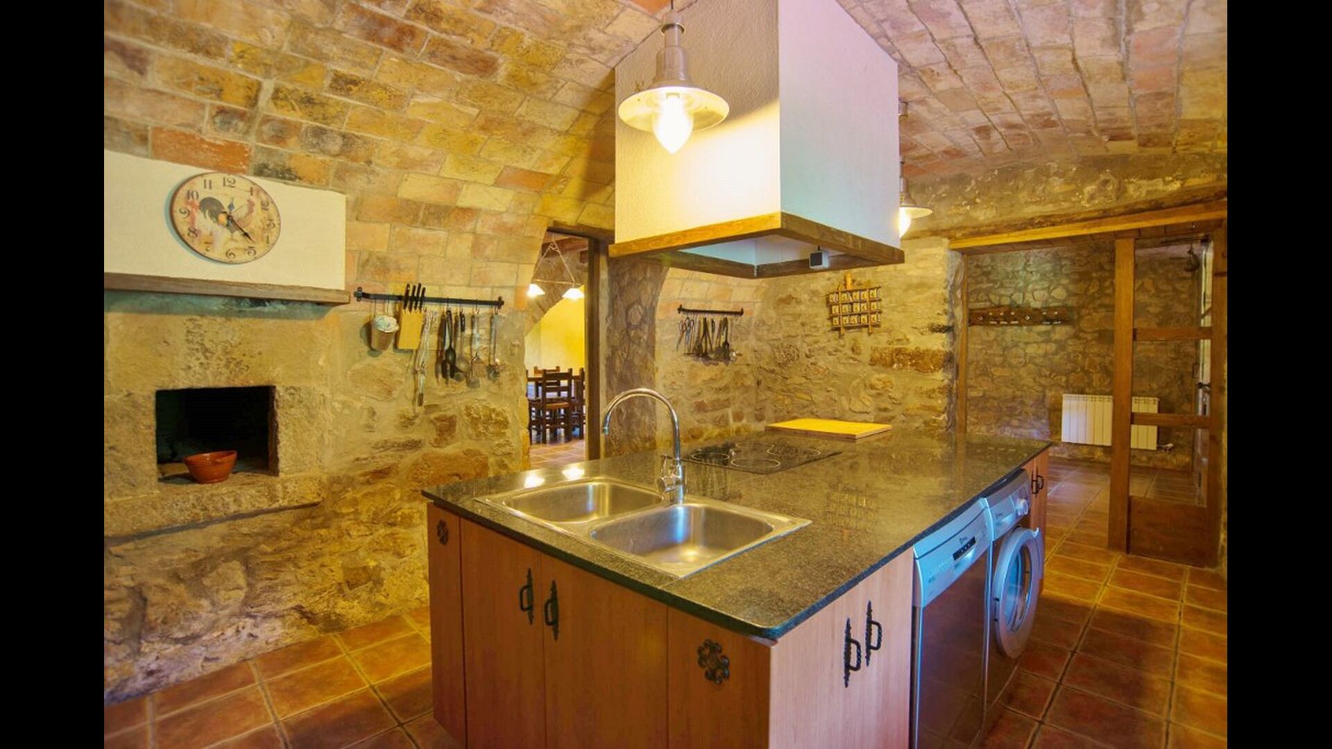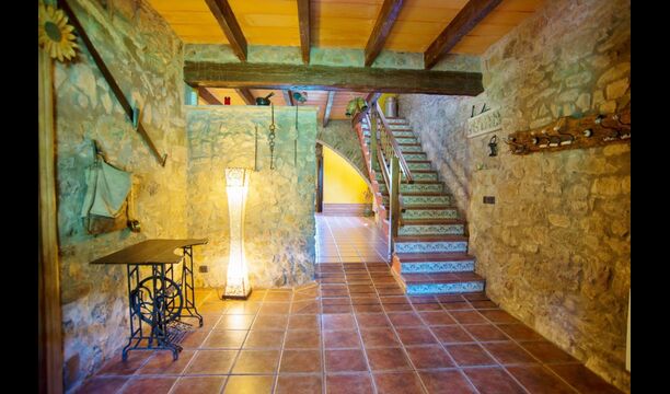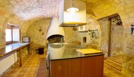 Im Erdgeschossgibtes auch eine schöneund spezielleKüche: Die Deckehierist gekrümmt undaus Stein.Es gibt eine Vielzahlvon modernen Bequemlichkeitenwie Spülmaschine, Waschmaschine, Mikrowelle und Backofen, aber die Besitzer haben esimmer noch geschafft dieauthentische undrustikale AtmosphäremitHilfe von denDeckenund Steinmauern zu behalten.