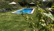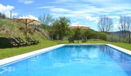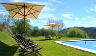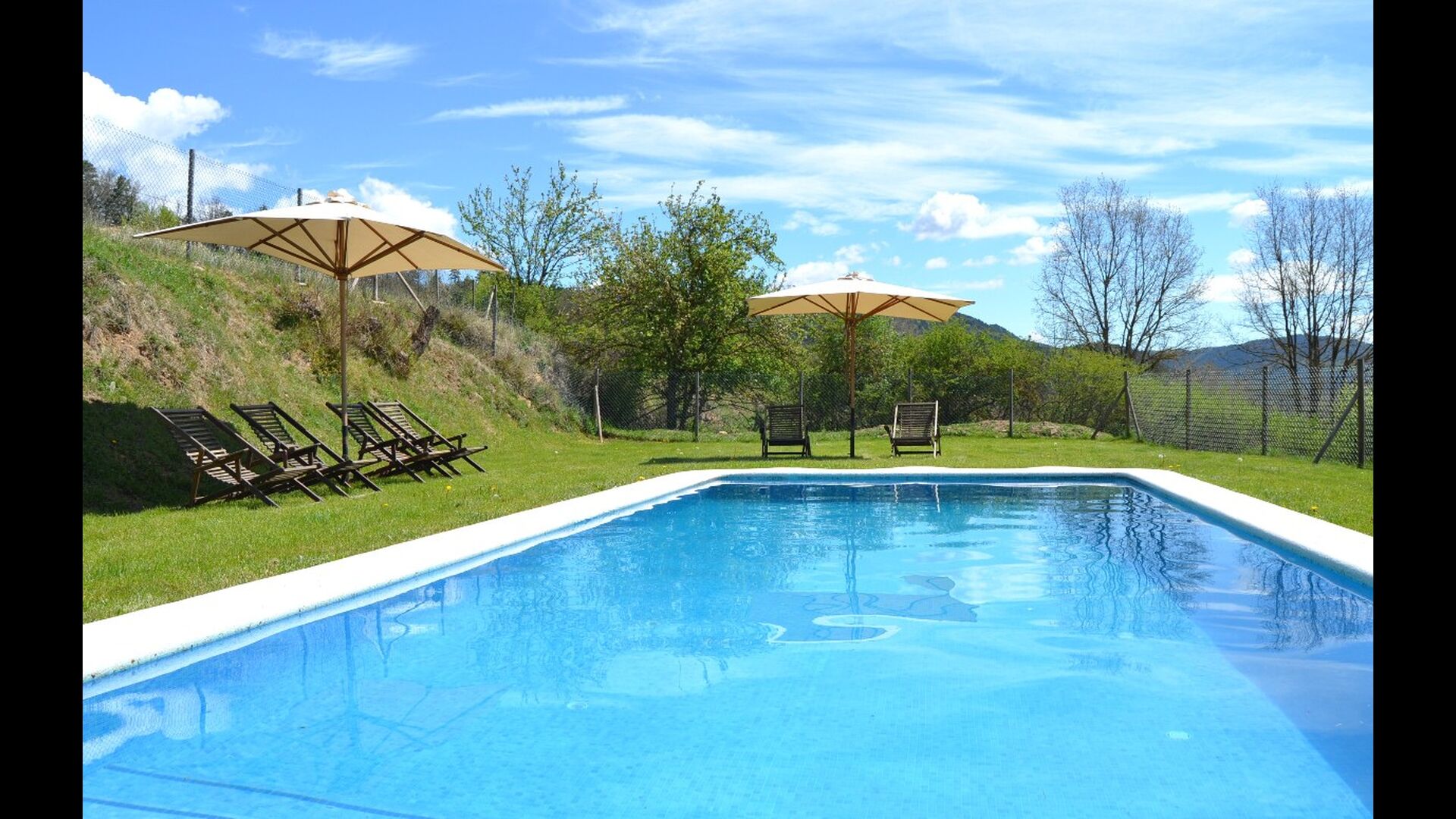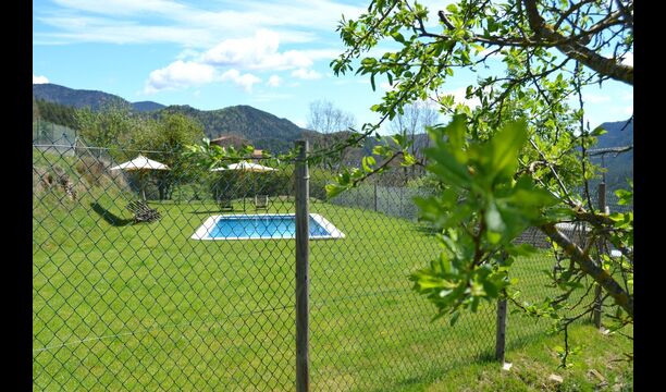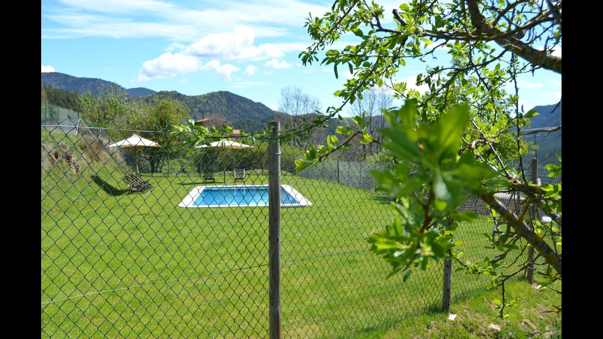 Der Swimming-Pool (43 m²) ist sehr kinderfreundlich, weil es Treppen hat, damit die Kinder können leicht in das Wasser kommen können. Es gibt Sonnenliegen und Sonnenschirmen und einen schönen und herrlichen Bergblick. Der Poolbereich ist eingezäunt, damit kleine Kinder nicht ohne Aufsicht hineinkommen können.