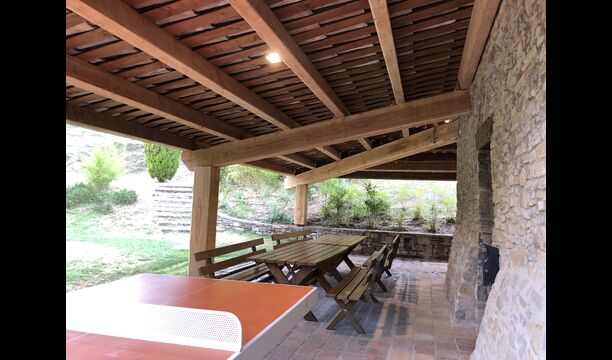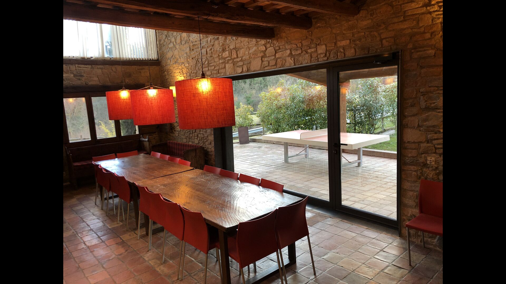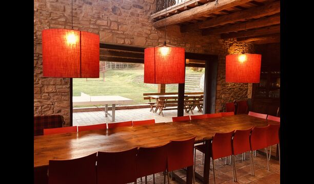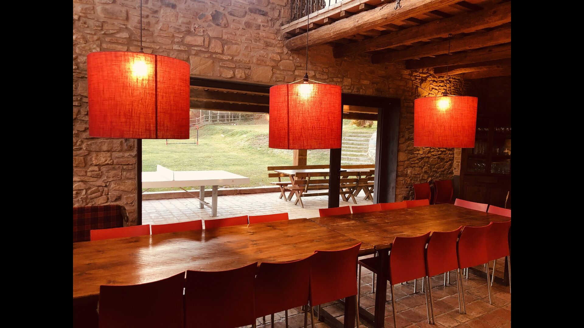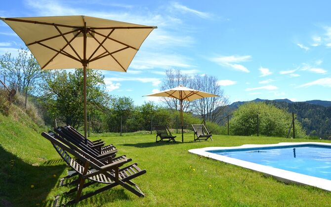 Casa Barnada liegt am Anfang der Pyrenäen - ein schönes, großes und familienfreundliches Ferienhaus von sehr hoher Qualität. Das Haus liegt leicht erhöht über dem wenig befahrten Bergstraße, die Berga und Ripoll verbindet. Hier leben Sie in Frieden mit den Bergen im Hintergrund - eine Sicht, die eine einzigartige und entspannte Atmosphäre verleiht. Bernador hat einen großen Garten mit einer eleganten Abschirmung. Mit seinen Zäunen und Bäumen ist das Ferienhaus sehr privat. Es gibt eine große Liegewiese mit Platz für Ballspiele in einem Ende. In dem anderen Ende gibt es eine große Terrasse - perfekt mit der Küche im Inneren des Hauses verbunden.
