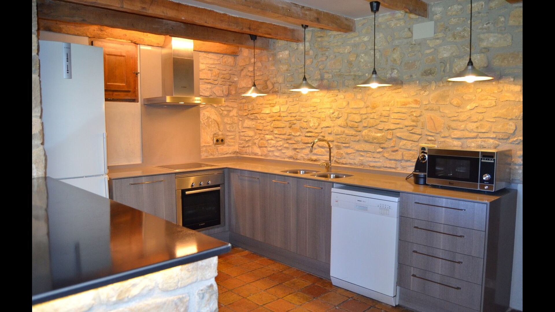 Wenn Sie das Haus betreten, gibt es auf der rechten Seite ein großes Schlafzimmer mit einem Doppelbett und einem angeschlossenen Badezimmer. In der Mitte des Hauses befindet sich ein großes Wohnzimmer, wo es eine Sitzecke mit einem riesigen Flachbildschirm gibt. Im selben Raum gibt es einen großen langen Tisch mit roten Stühlen und viel Platz für alle. Im Anschluss liegt eine moderne Küche mit Mikrowelle, Kühlschrank, Gefrierschrank, Spülmaschine und viele andere Sachen. Im nächsten, ziemlich großen, Raum gibt es Waschmaschine und extra Kühlschrank. Es gibt auch eine sehr große Paella-Pfanne mit Gas-Kochfeld, damit Sie diese lokale Gericht vorbereiten können. Von der Küche aus gibt es Zugang zur Terrasse. Dies ist sehr praktisch, wenn Sie, zum Beispiel, Ihre hausgemachten Mahlzeiten draußen in der warmen Abend genießen wollen.