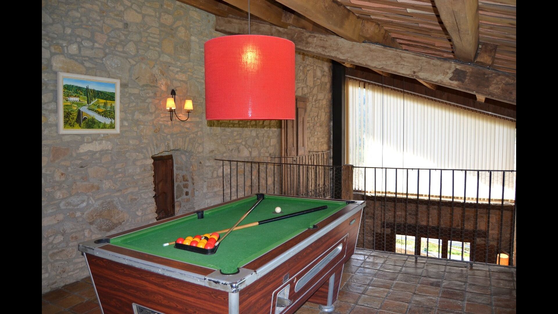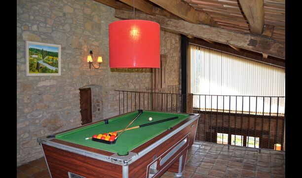 Von der Küche geht eine Treppe zum ersten Stock, wo es einen Billardtisch gibt. Hier haben Sie irgendeine Art von Innen-Balkon mit Überblick über das Wohnzimmer. Die erste Etage verfügt über 5 Doppelzimmer. Diese sind sehr geräumig und von sehr hoher Qualität. Alle von ihnen haben eigene Bäder (en suite).