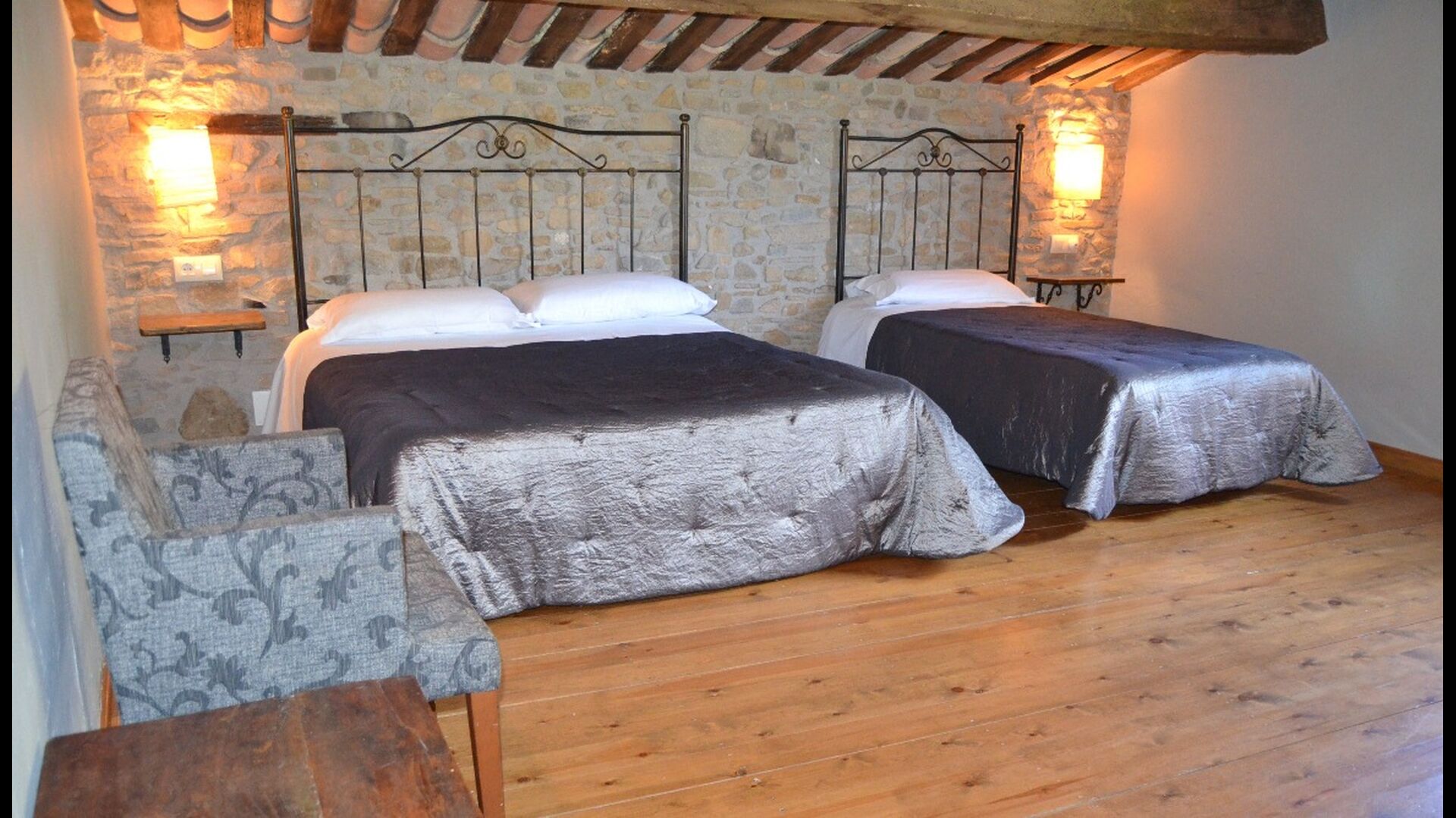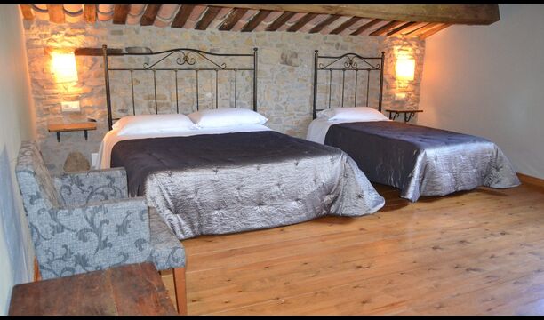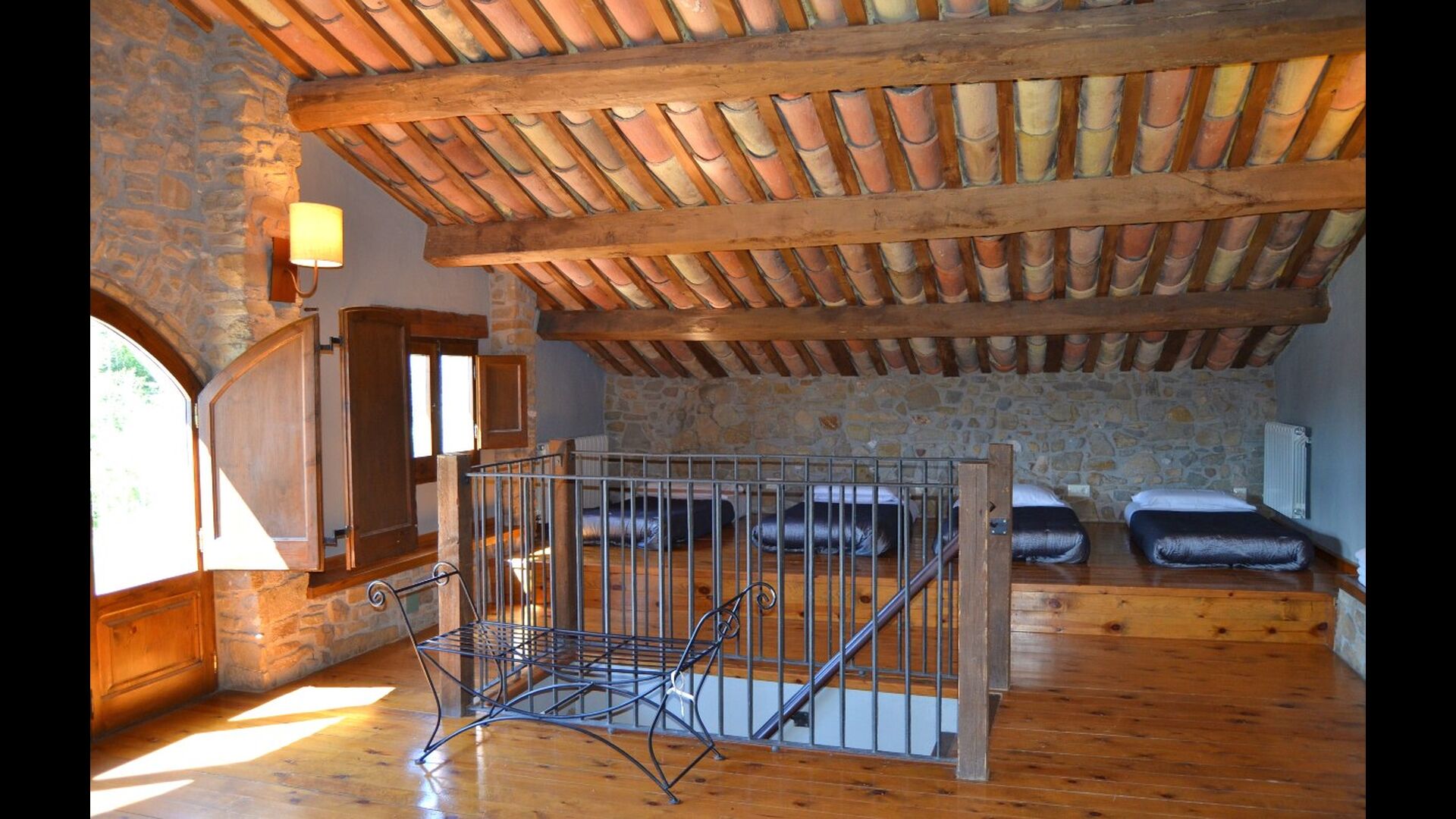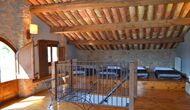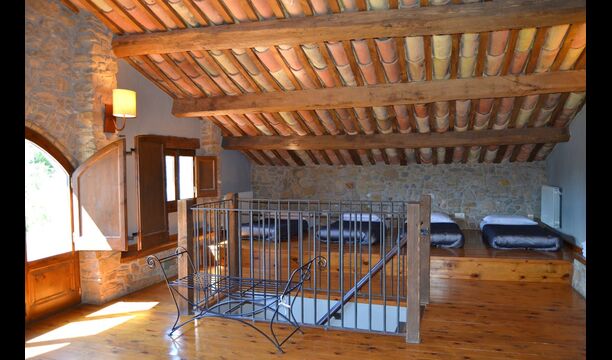 Im zweiten Stock gibt es eine große Halle mit Matratzen, die gut für Kinder geeignet ist. Das passt gut zu einer Gruppe von Kindern, die hier schlafen und viel Spaß machen können. Auf dieser Etage gibt es ein sehr großes Badezimmer. Darüber hinaus gibt es ein großes Dreibettzimmer mit einem Doppelbett und einem Einzelbett, natürlich auch mit eigenem Bad.
