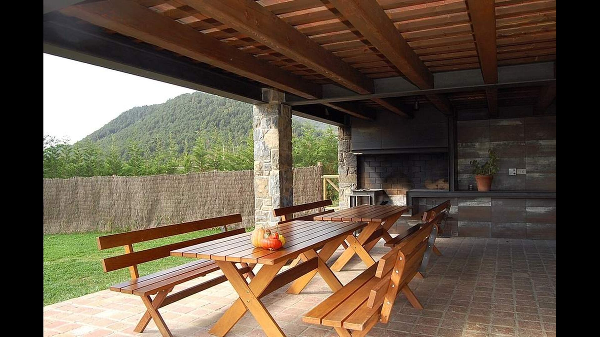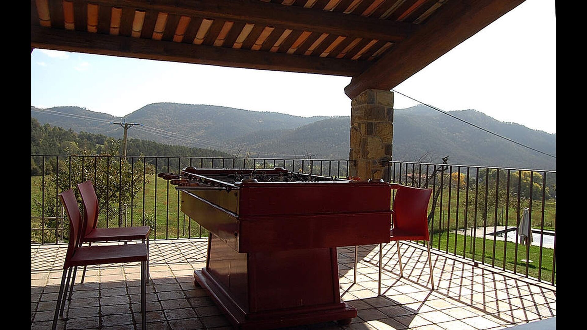 Im Außenbereich verfügt Casa Ferrera über eine überdachte Terrasse mit Essbereich, die auf weitläufige Rasenflächen hinausführt und zu einem privaten, umzäunten Swimmingpool führt. Umgeben von Natur und mit freiem Blick auf die Landschaft und die Berge sind die Außenbereiche ideal zum Entspannen, für Mahlzeiten im Freien oder zum sicheren Spielen der Kinder.