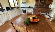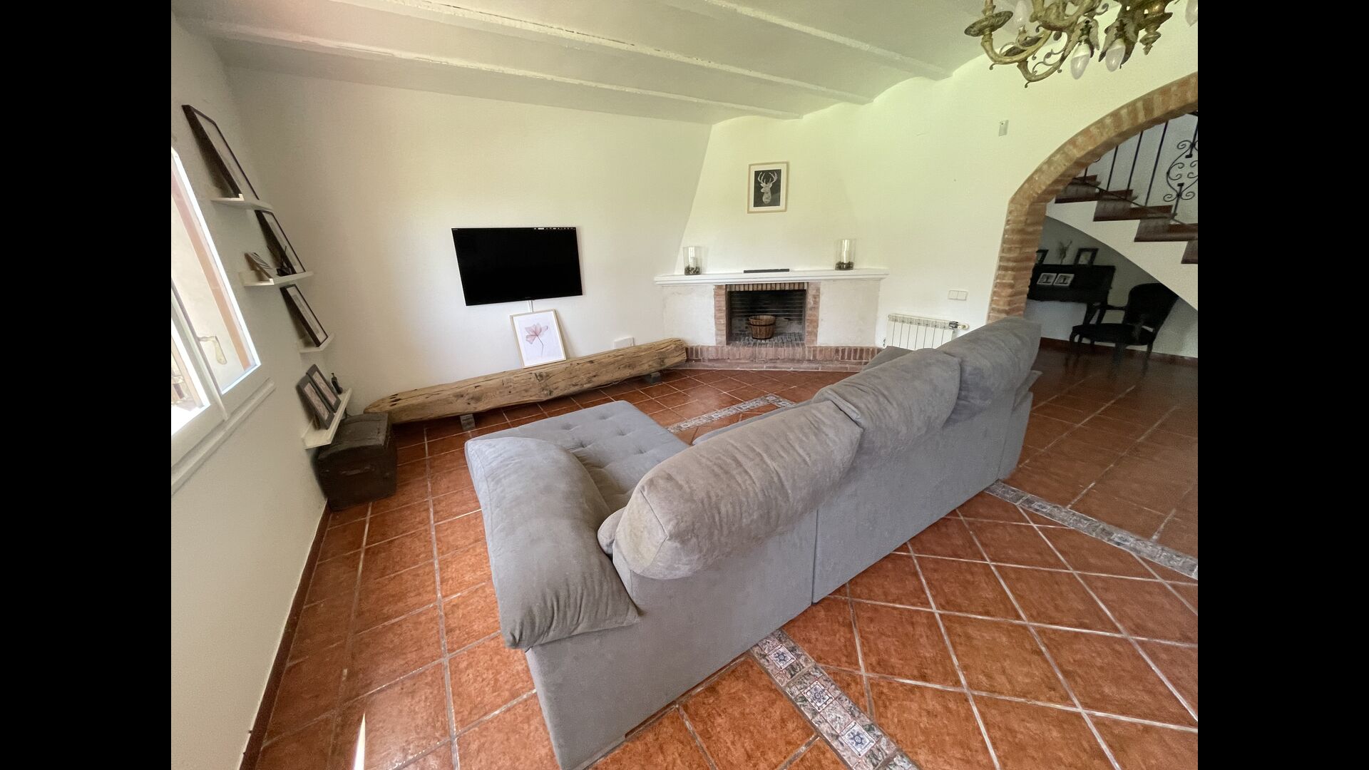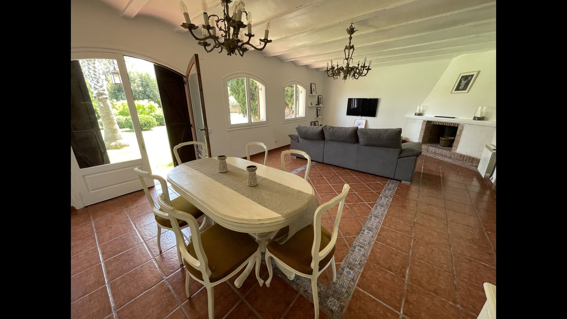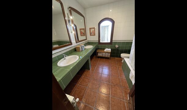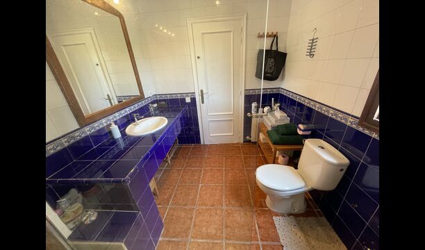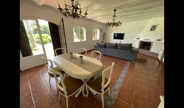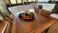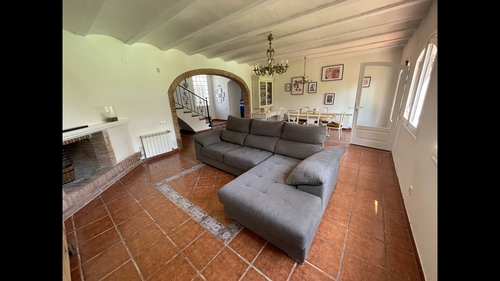 Es gibt auch ein Wohnzimmer mitSofas und TV-Ecke sowie einen größeren Essbereich. Ebenfalls im Erdgeschoss finden Sie ein Schlafzimmer und das erste der beiden großen rustikalen Badezimmer.