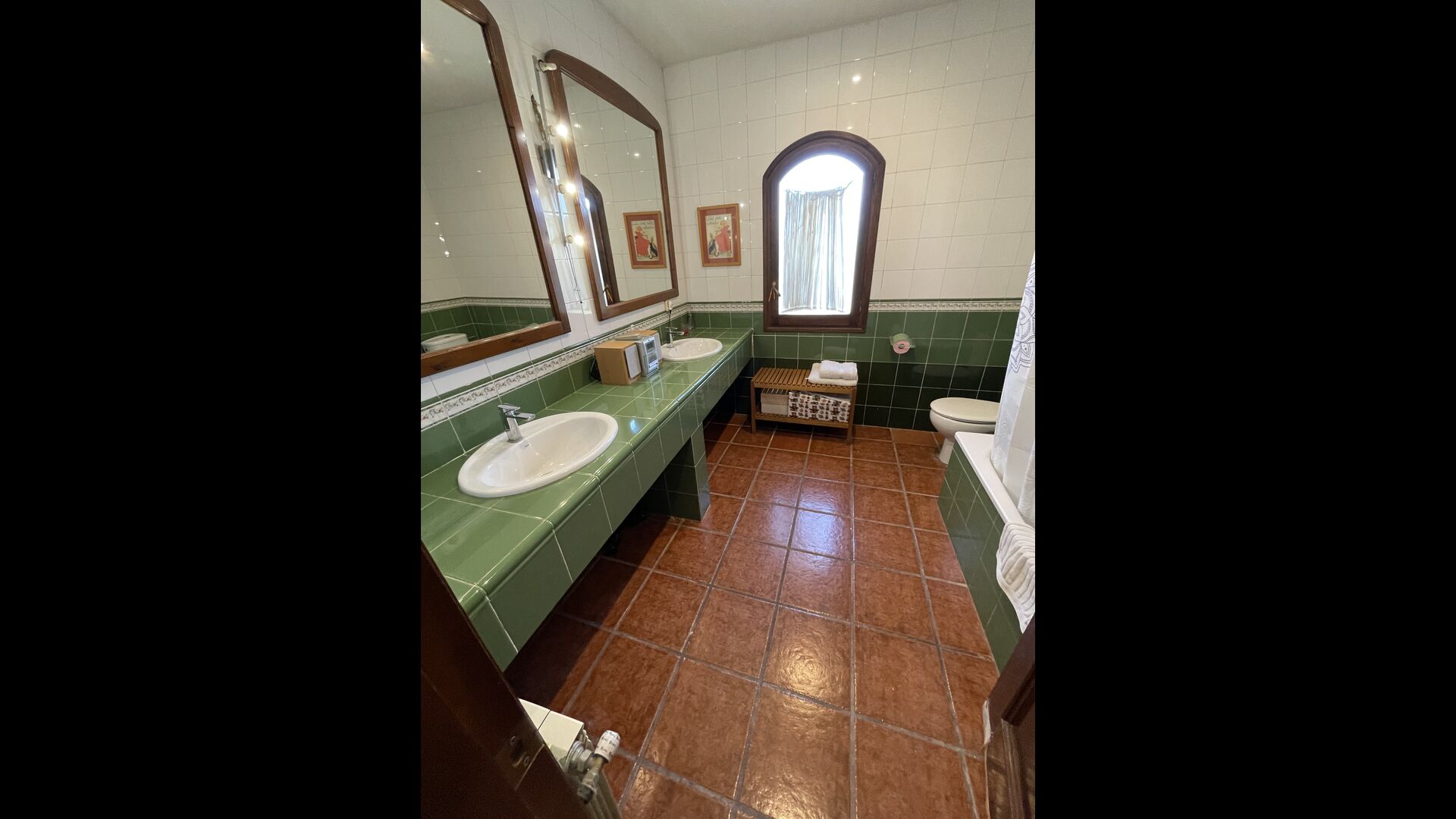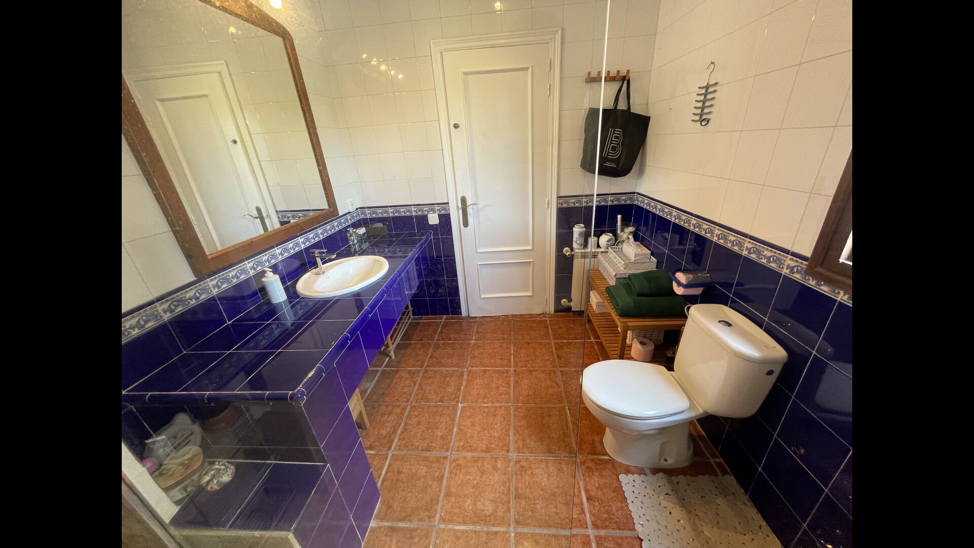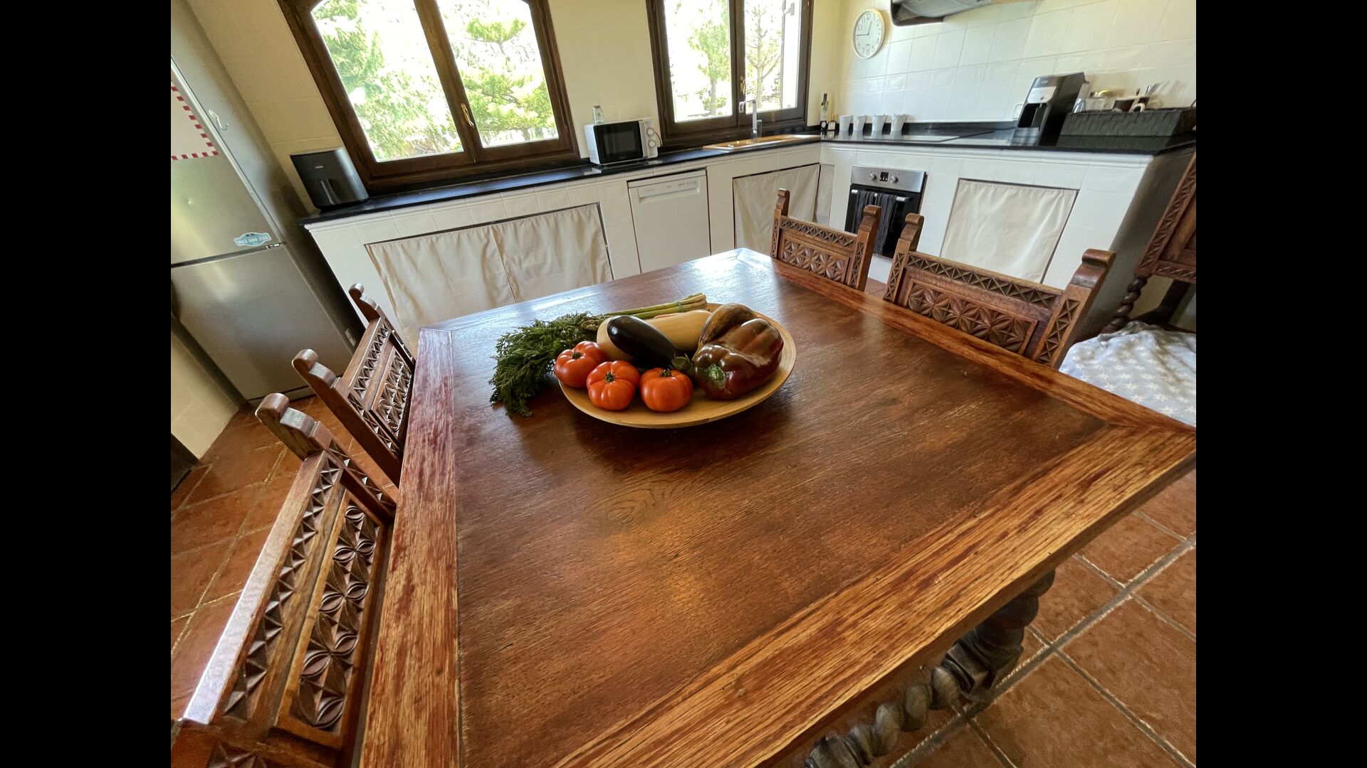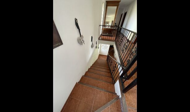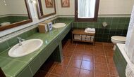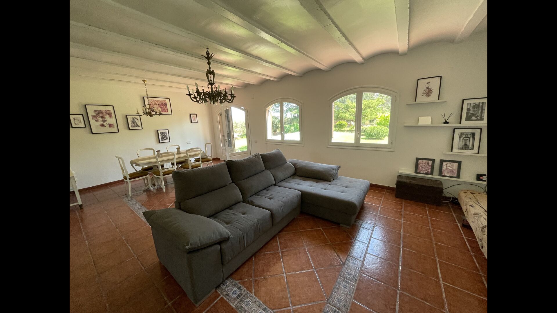 Es gibt auch ein Wohnzimmer mitSofas und TV-Ecke sowie einen größeren Essbereich. Ebenfalls im Erdgeschoss finden Sie ein Schlafzimmer und das erste der beiden großen rustikalen Badezimmer.