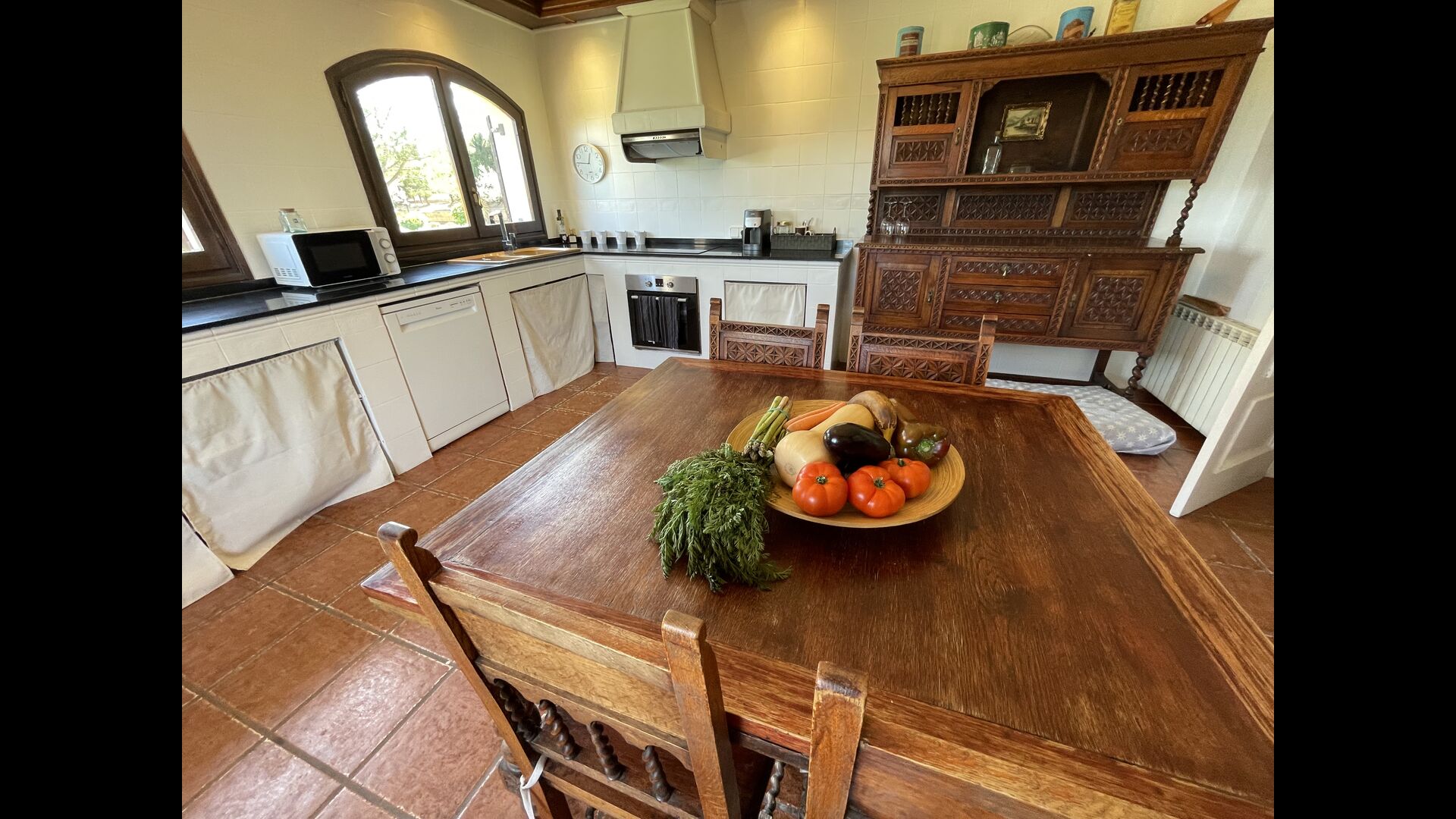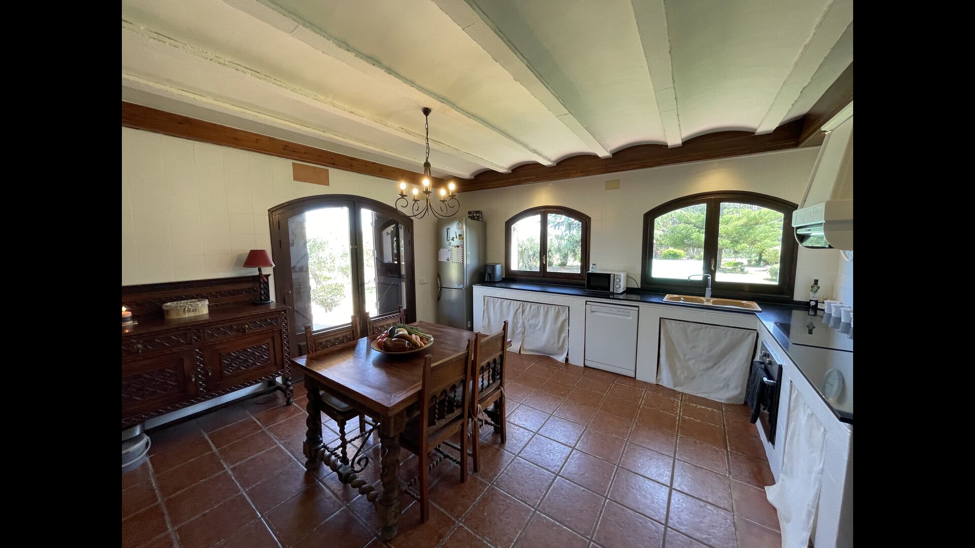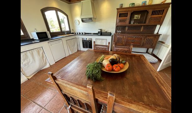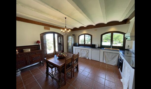Dieses klassische katalanische Kalksteinhaus ist wunderschön dekoriert, wobei die Geschichte des Hauses erhalten bleibt, aber auch ein moderner Touch vorhanden ist. Im Erdgeschoss finden Sie alle Gemeinschaftseinrichtungen. Es verfügt über eine große, verkehrsgünstig gelegene Küche im Landhausstil mit direktem Zugang zur überdachten Terrasse, von der aus Sie einen Blick auf den Swimmingpool haben.