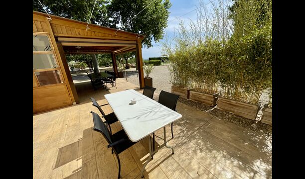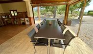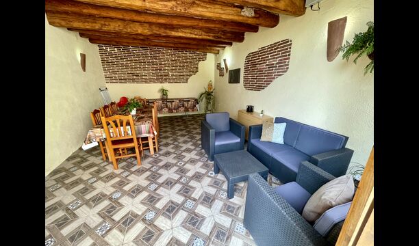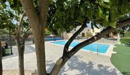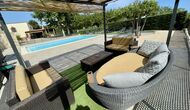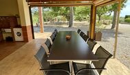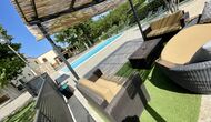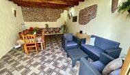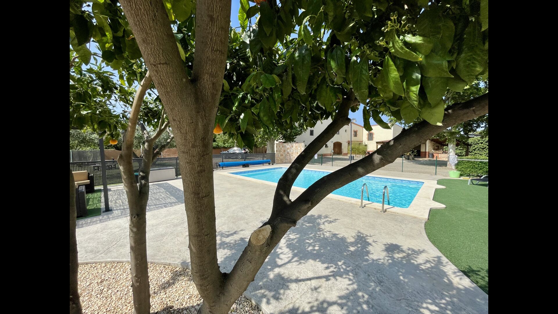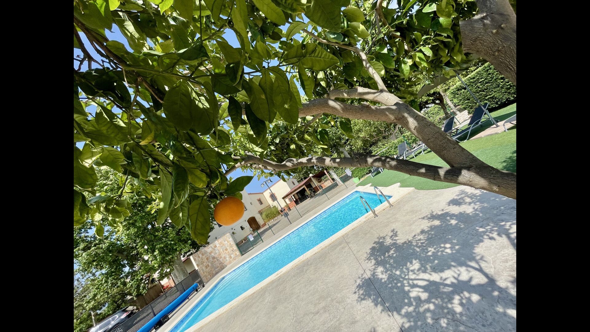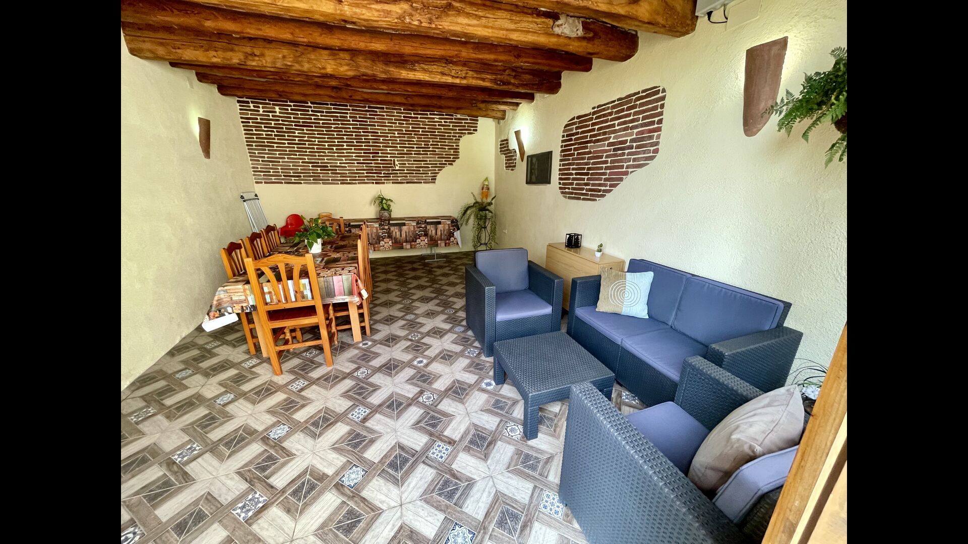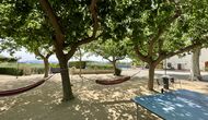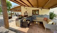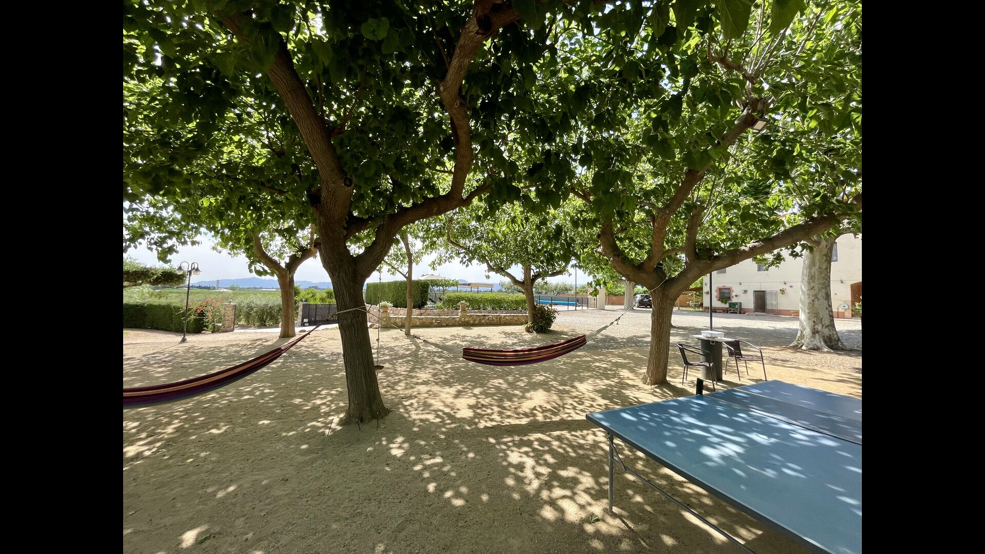Auf der anderen Seite gibt es zwei verschiedene Terrassen; Eines davon ist mit der hervorragenden Außenküche verbunden, die mit einem geschlossenen Grill, einem Kühlschrank, einer Mikrowelle und einer Spüle ausgestattet ist. Auch die Waschmaschine ist hier installiert. Es gibt auch eine Toilette, was praktisch ist, wenn Sie im Garten sind. Ebenfalls angeschlossen ist ein zweiter Sofabereich im Freien mit Blick auf den Spielplatz.